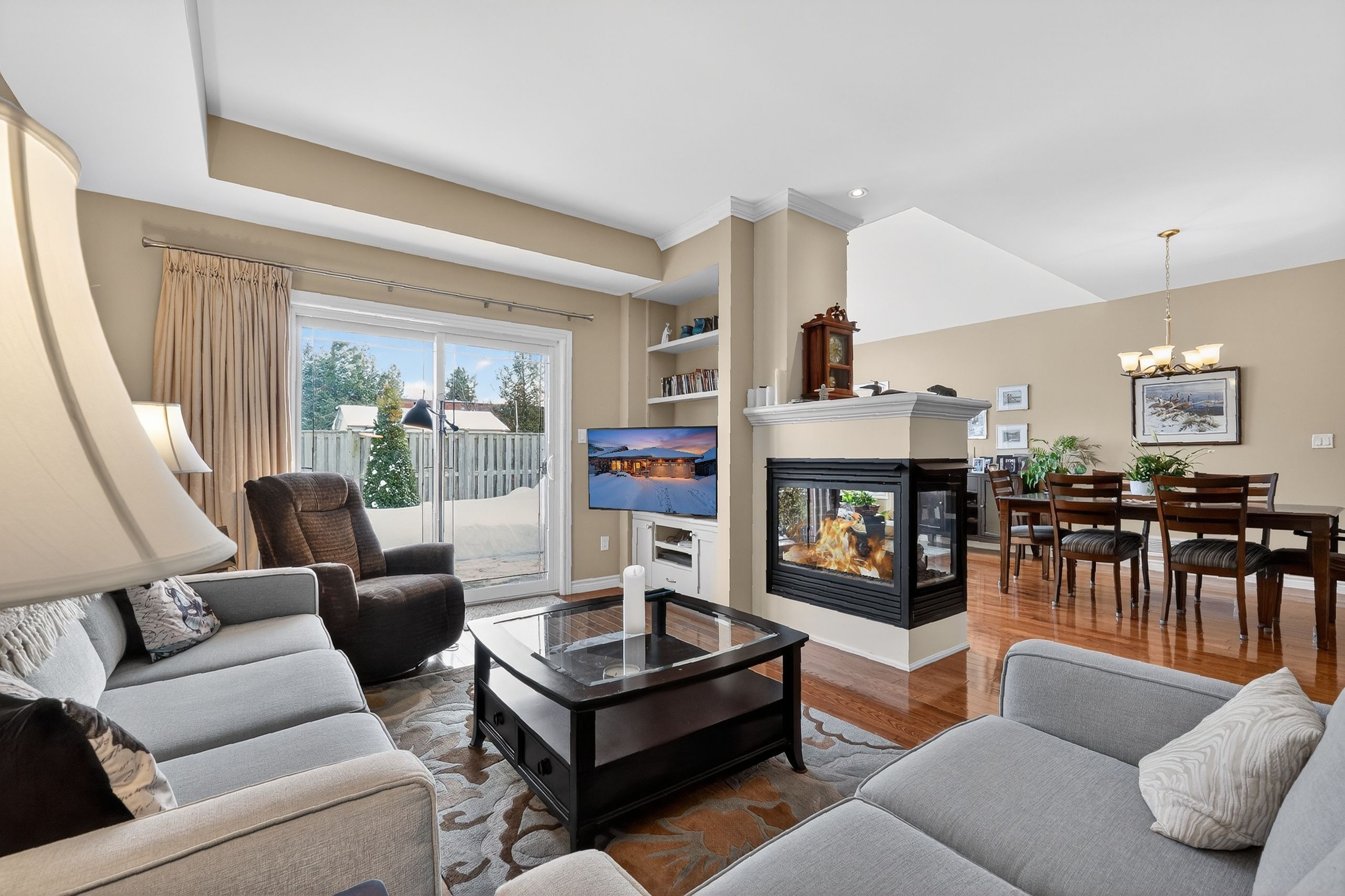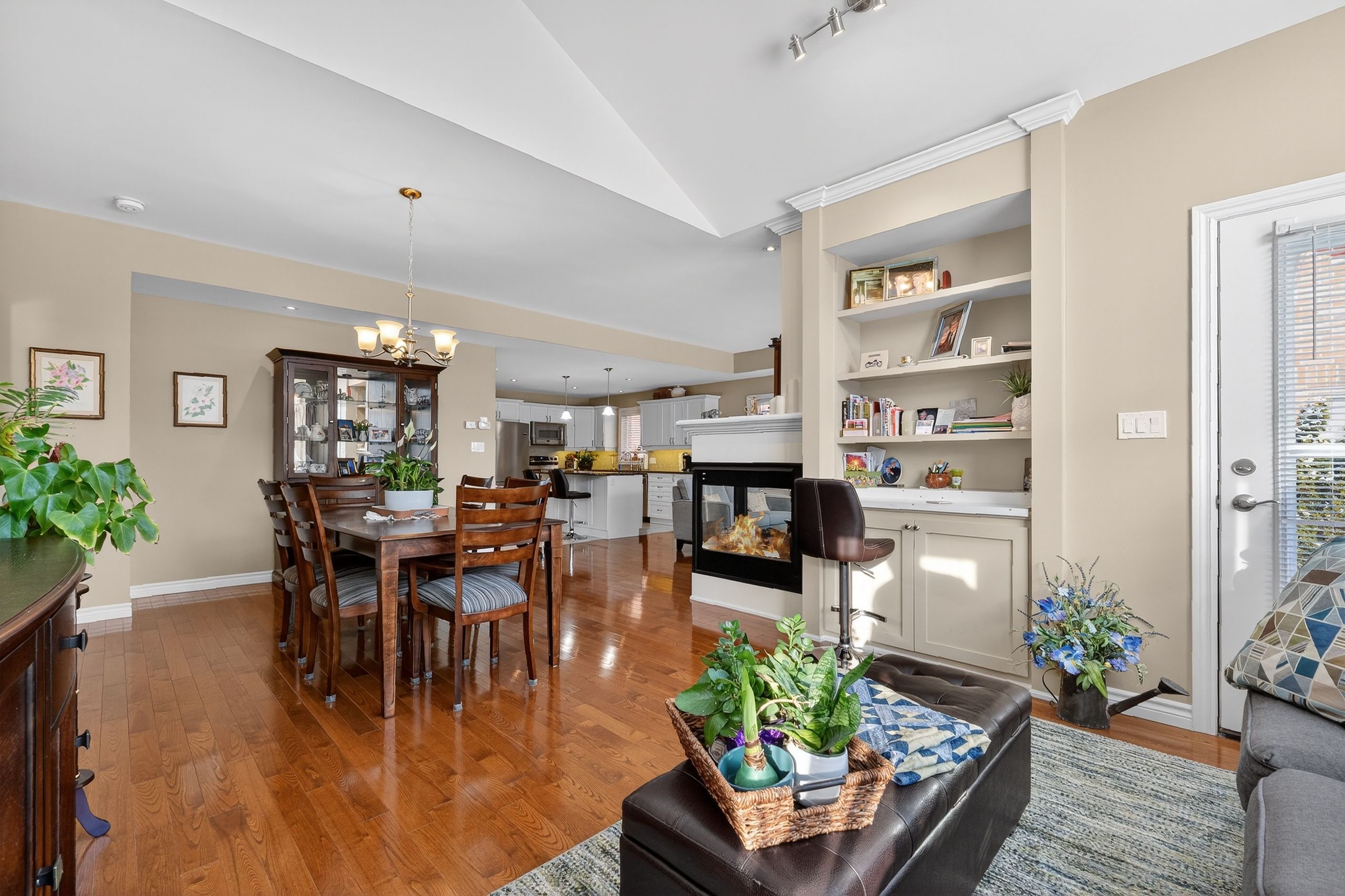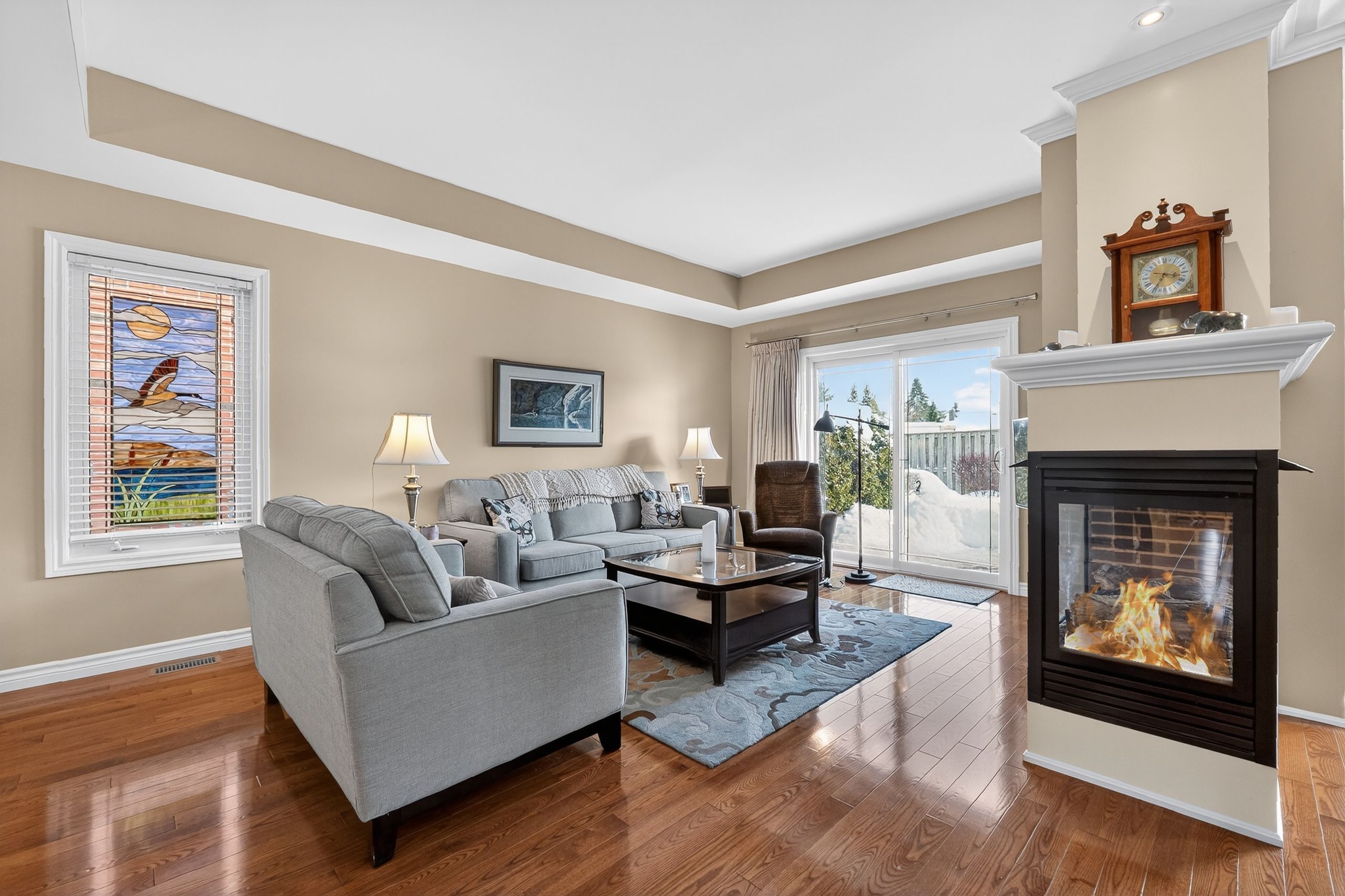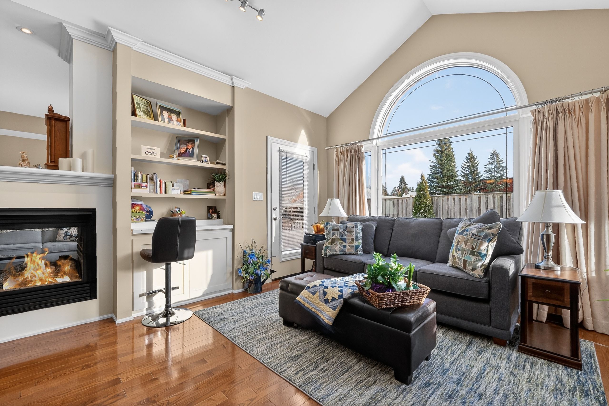 Step into a masterclass of visual harmony! Nestled in an exclusive, architecturally controlled enclave, this 1,600+ sq. Ft. Bungalow is far more than a home, it is a distinctive statement of quality & captivating design. Imagine the "wow" factor as you enter an open-concept sanctuary defined by the artistic flair of raised & tray-style ceilings & a spectacular 3-sided gas fireplace, cleverly positioned to cast a warm glow across both the great room & adjoining versatile living space. Natural light is a permanent guest here, invited in by the graceful curve of a sunny, south-facing round-top picture window. Designed for the home chef, the integrated kitchen is an organizational dream featuring a large center island, pantry & beautiful countertops. The principal suite is your private escape, complete with 5pc en-suite & a king-sized walk-in closet. With beautiful hardwood floors, custom built-ins, & a layout that breathes, every inch of this home feels intentional. Space for guests- with 2+2 bedrooms & 3 baths, there is room for everyone... A future dream rec room is already drywalled. Step through one of two bright entrances to your fully fenced backyard brick patio including privacy hedge & electric awning. Bonus: extra large basement windows, mf laundry & oversized 2 car garage. Centrally located, & just a short walk to the recreation complex. For those who appreciate uncompromising quality & a sparkling clean, turn-key home, this is your exclusive chance.