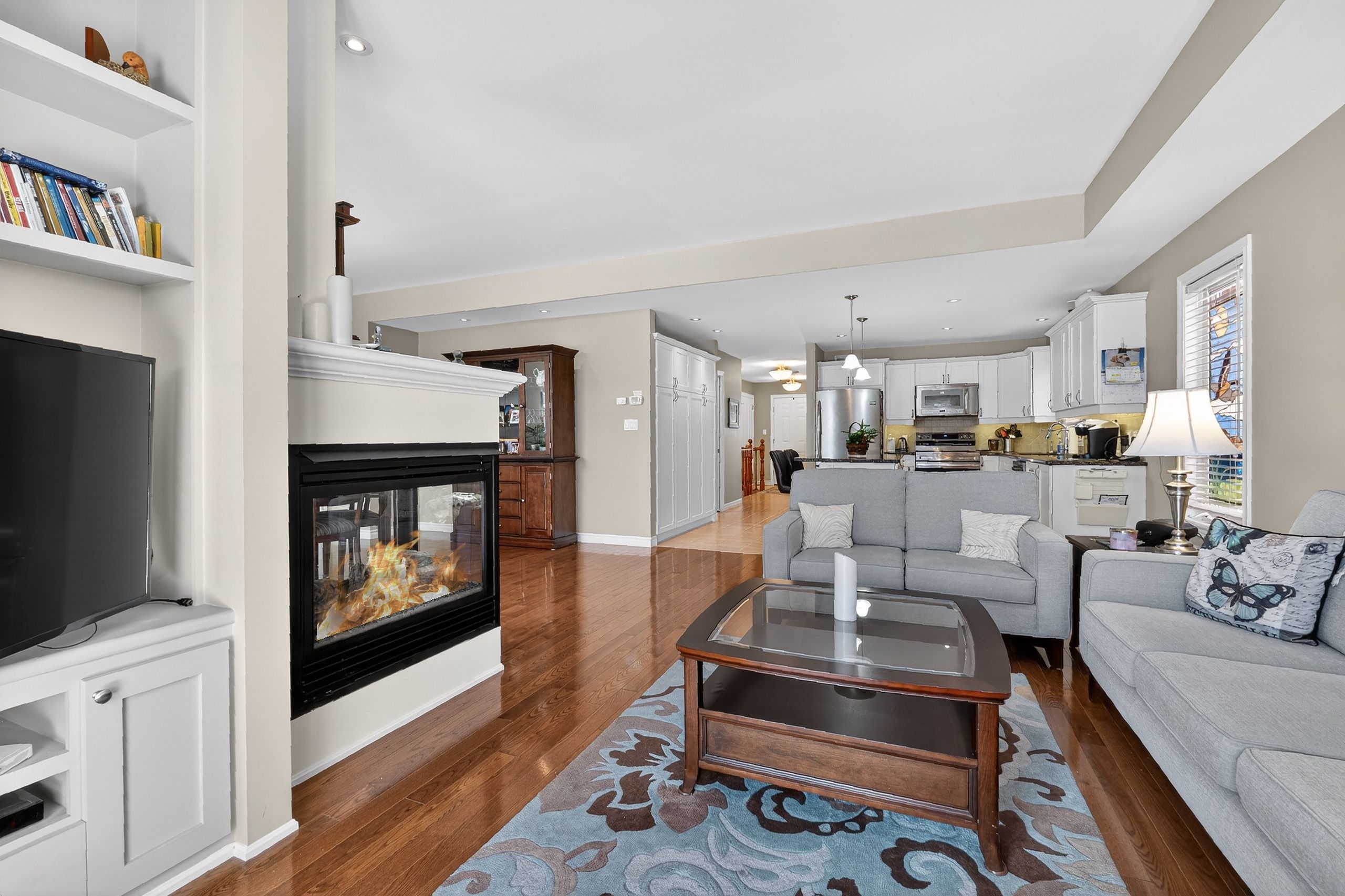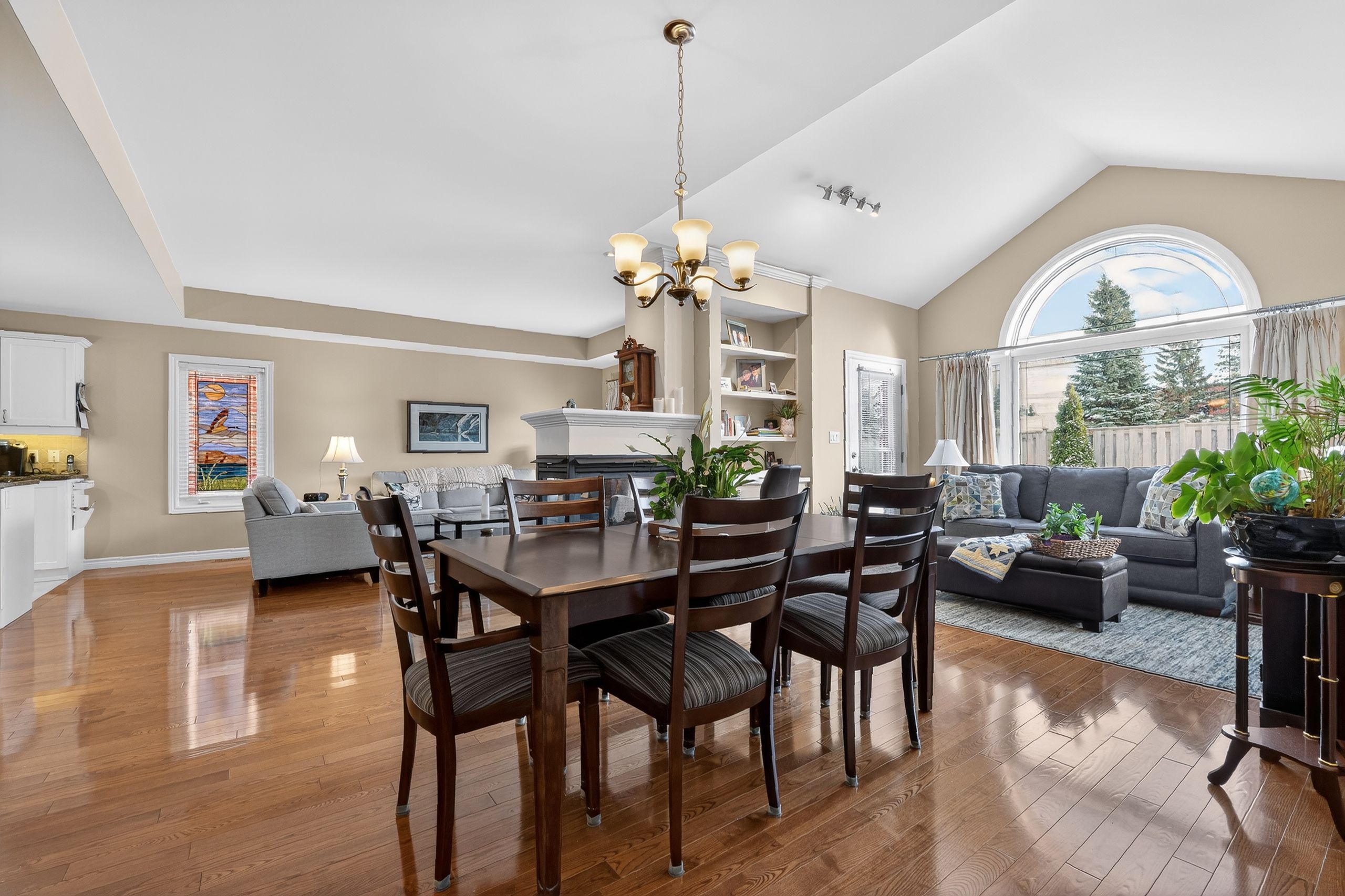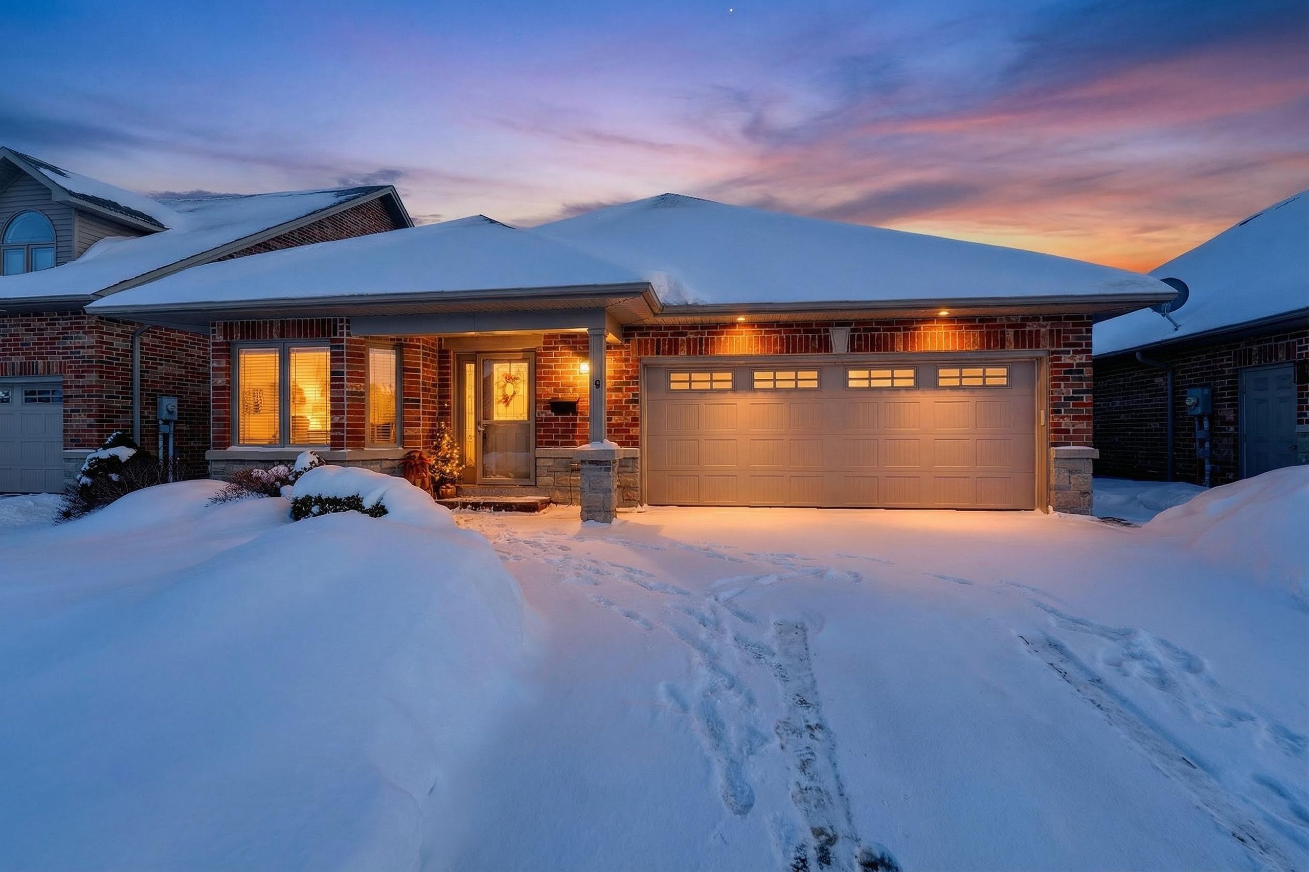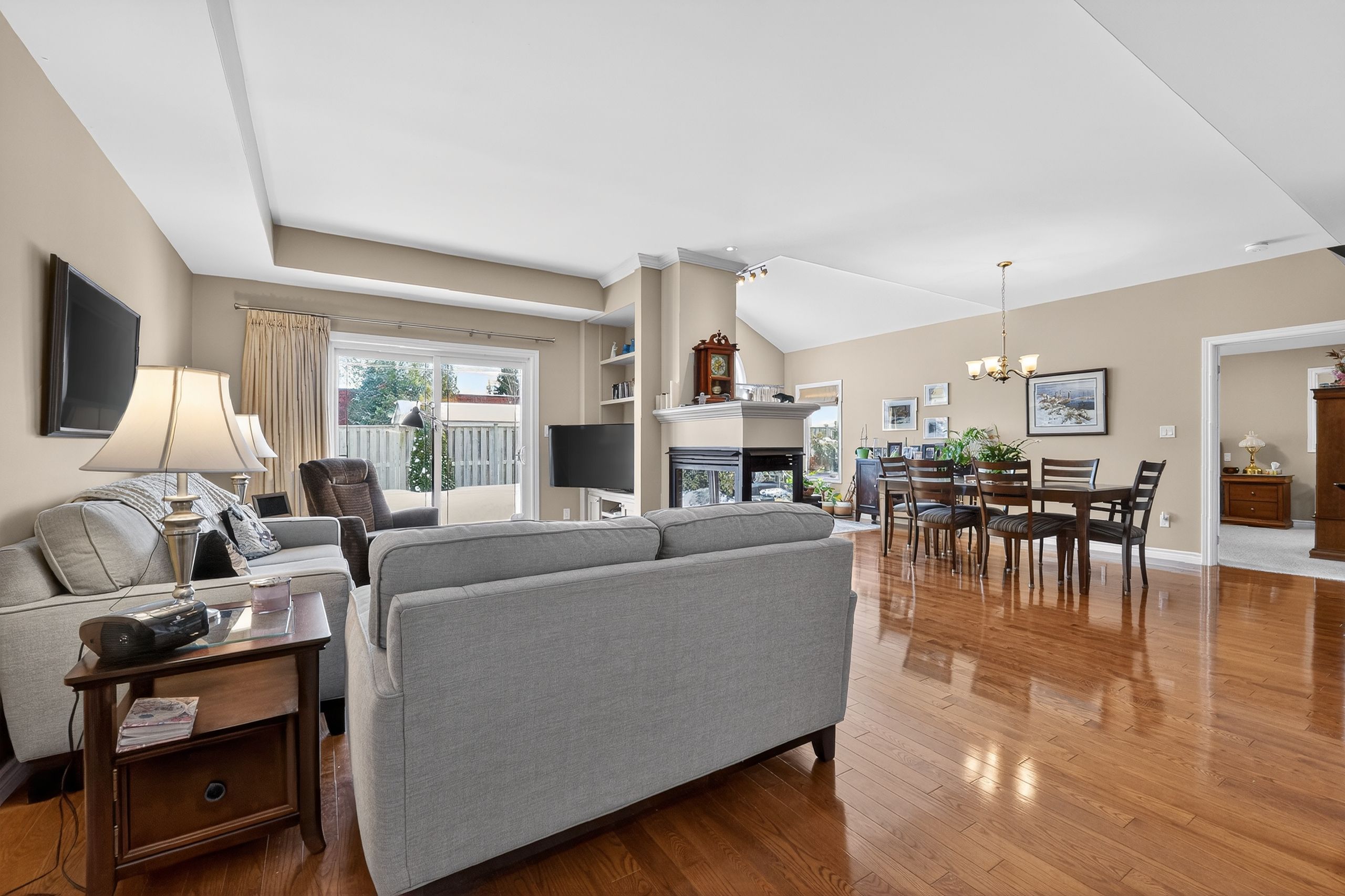 Step into a masterclass of visual harmony! Nestled in an exclusive, architecturally controlled enclave, this 1,600+ sq. Ft. Bungalow is far more than a home, it is a distinctive statement of quality & captivating design. Imagine the "wow" factor as you enter an open-concept sanctuary defined by the artistic flair of raised & tray-style ceilings & a spectacular 3-sided gas fireplace, cleverly positioned to cast a warm glow across both the great room & adjoining versatile living space. Natural light is a permanent guest here, invited in by the graceful curve of a sunny, south-facing round-top picture window. Designed for the home chef, the integrated kitchen is an organizational dream featuring a large center island, pantry & beautiful countertops. The principal suite is your private escape, complete with 5pc en-suite & a king-sized walk-in closet. With beautiful hardwood floors, custom built-ins, & a layout that breathes, every inch of this home feels intentional. Space for guests- with 2+2 bedrooms & 3 baths, there is room for everyone... A future dream rec room is already drywalled. Step through one of two bright entrances to your fully fenced backyard brick patio including privacy hedge & electric awning. Bonus: extra large basement windows, mf laundry & oversized 2 car garage. Centrally located, & just a short walk to the recreation complex. For those who appreciate uncompromising quality & a sparkling clean, turn-key home, this is your exclusive chance.