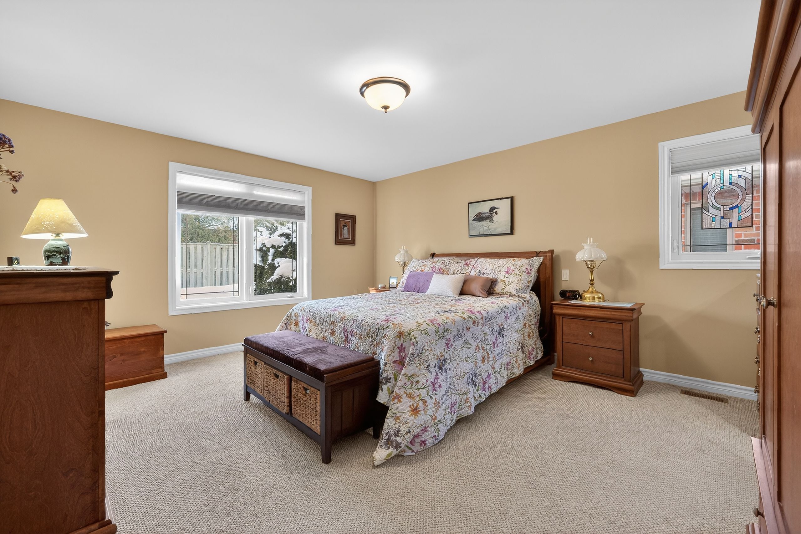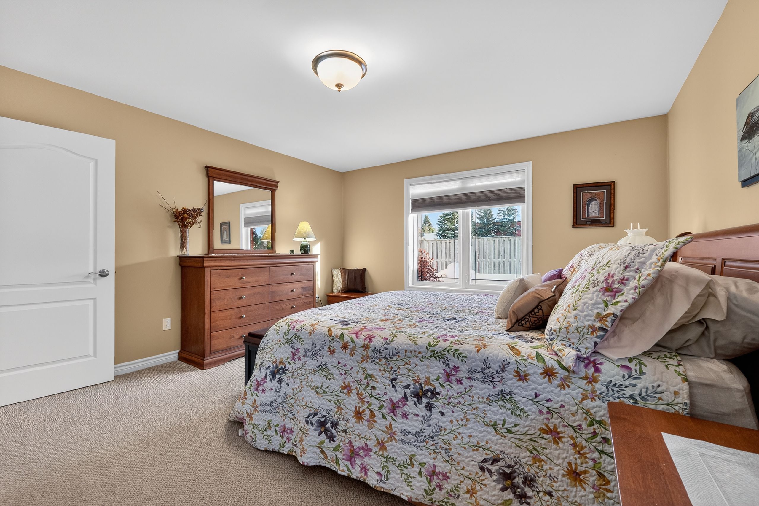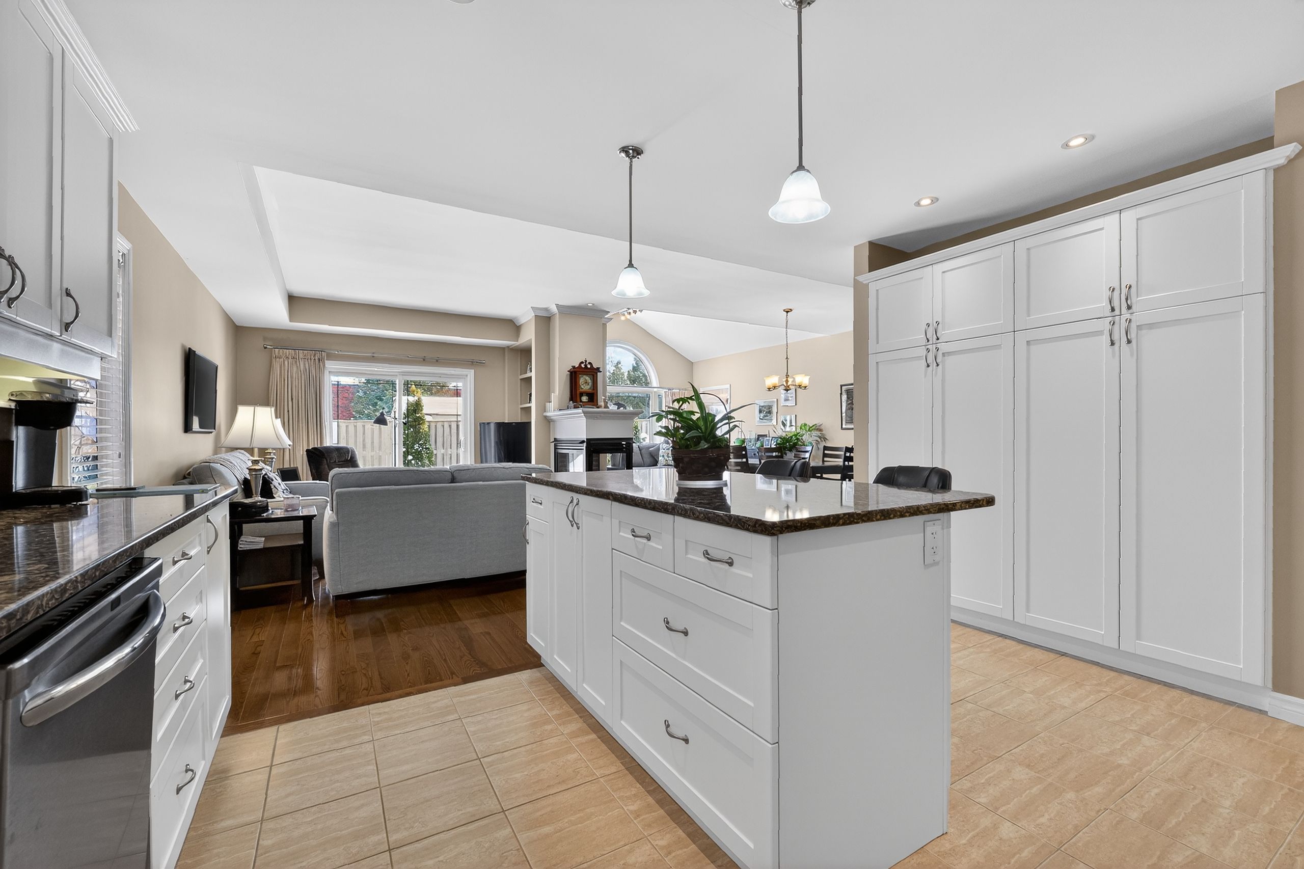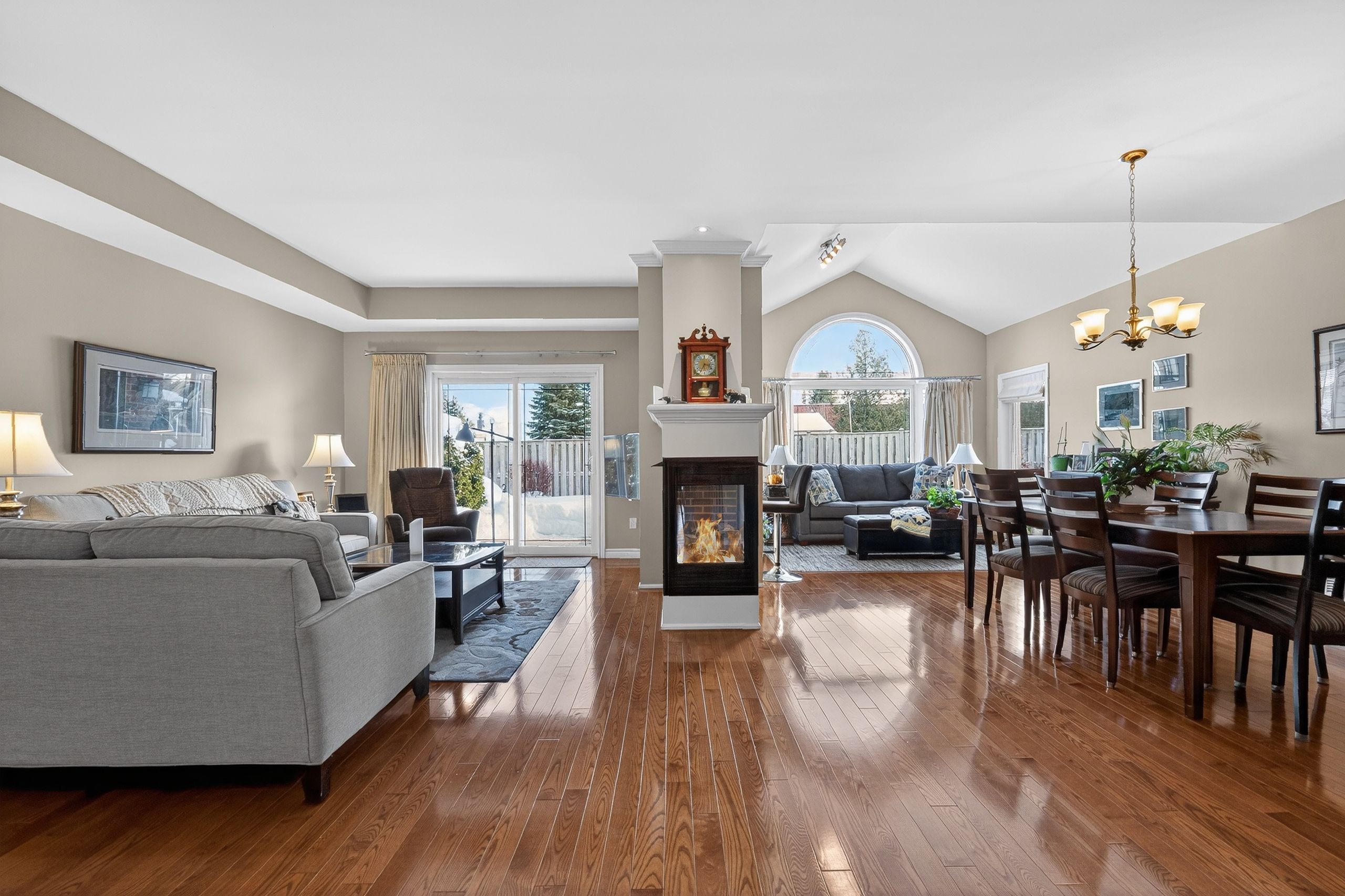 Step into a masterclass of visual harmony! Nestled in an exclusive, architecturally controlled enclave, this 1,600+ sq. Ft. Bungalow is far more than a home, it is a distinctive statement of quality & captivating design. Imagine the "wow" factor as you enter an open-concept sanctuary defined by the artistic flair of raised & tray-style ceilings & a spectacular 3-sided gas fireplace, cleverly positioned to cast a warm glow across both the great room & adjoining versatile living space. Natural light is a permanent guest here, invited in by the graceful curve of a sunny, south-facing round-top picture window. Designed for the home chef, the integrated kitchen is an organizational dream featuring a large center island, pantry & beautiful countertops. The principal suite is your private escape, complete with 5pc en-suite & a king-sized walk-in closet. With beautiful hardwood floors, custom built-ins, & a layout that breathes, every inch of this home feels intentional. Space for guests- with 2+2 bedrooms & 3 baths, there is room for everyone... A future dream rec room is already drywalled. Step through one of two bright entrances to your fully fenced backyard brick patio including privacy hedge & electric awning. Bonus: extra large basement windows, mf laundry & oversized 2 car garage. Centrally located, & just a short walk to the recreation complex. For those who appreciate uncompromising quality & a sparkling clean, turn-key home, this is your exclusive chance.