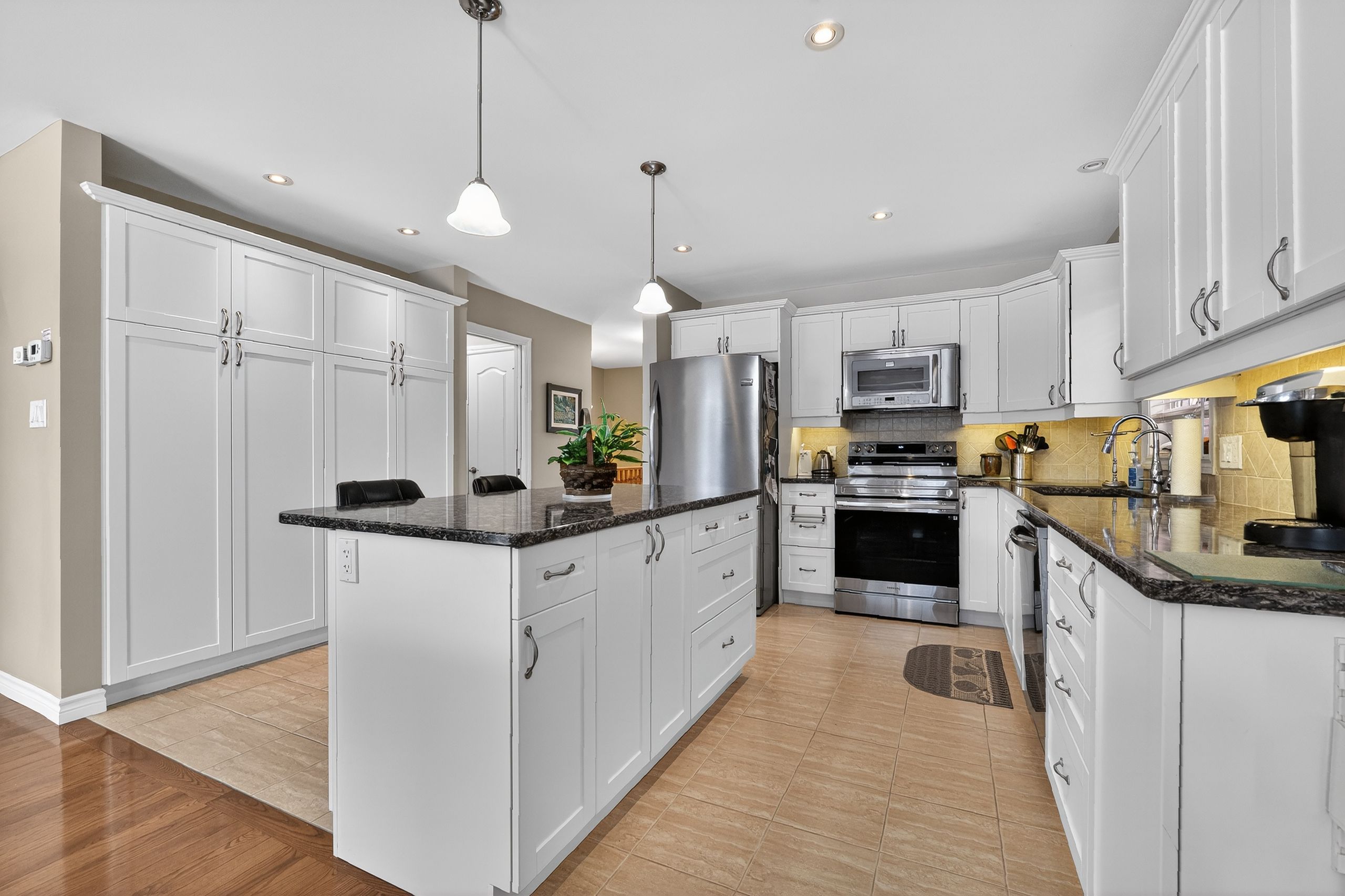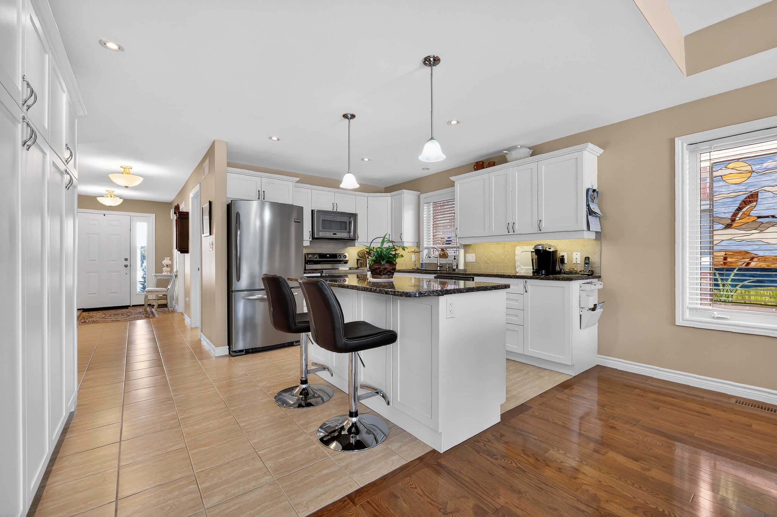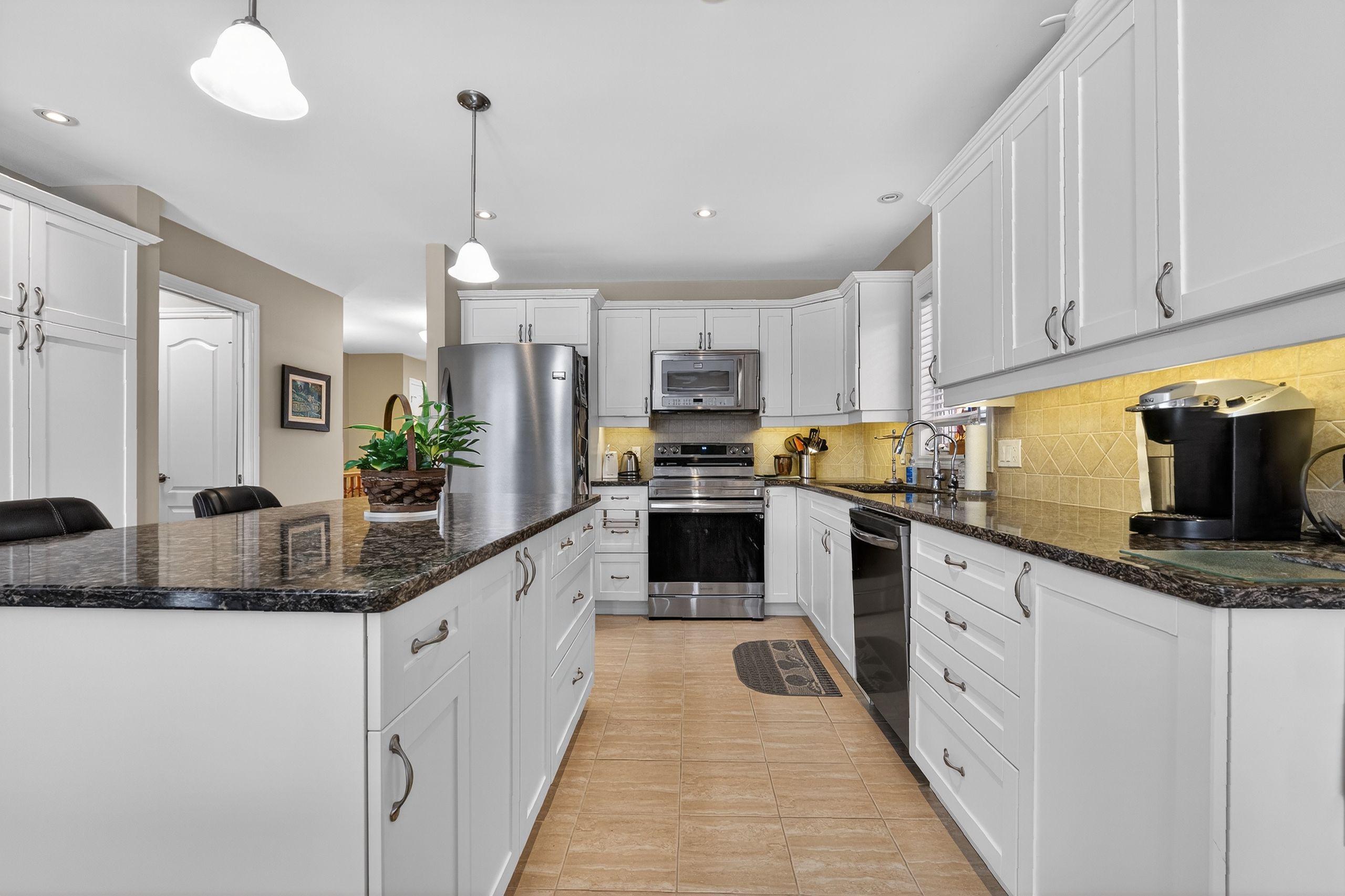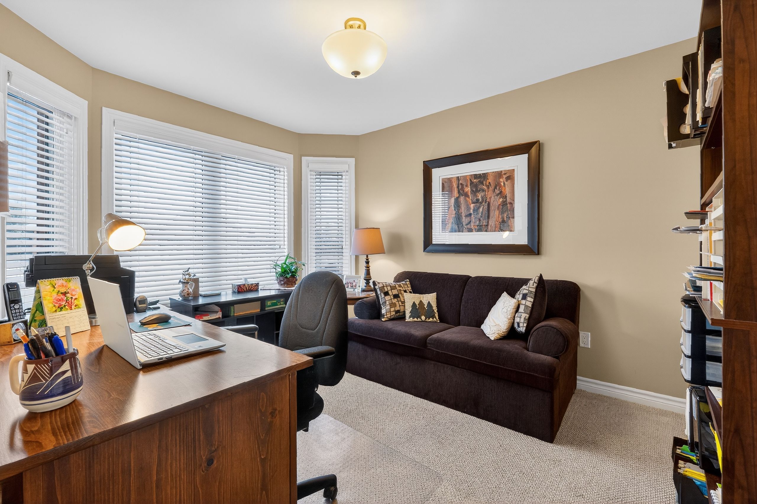 Step into a masterclass of visual harmony! Nestled in an exclusive, architecturally controlled enclave, this 1,600+ sq. Ft. Bungalow is far more than a home, it is a distinctive statement of quality & captivating design. Imagine the "wow" factor as you enter an open-concept sanctuary defined by the artistic flair of raised & tray-style ceilings & a spectacular 3-sided gas fireplace, cleverly positioned to cast a warm glow across both the great room & adjoining versatile living space. Natural light is a permanent guest here, invited in by the graceful curve of a sunny, south-facing round-top picture window. Designed for the home chef, the integrated kitchen is an organizational dream featuring a large center island, pantry & beautiful countertops. The principal suite is your private escape, complete with 5pc en-suite & a king-sized walk-in closet. With beautiful hardwood floors, custom built-ins, & a layout that breathes, every inch of this home feels intentional. Space for guests- with 2+2 bedrooms & 3 baths, there is room for everyone... A future dream rec room is already drywalled. Step through one of two bright entrances to your fully fenced backyard brick patio including privacy hedge & electric awning. Bonus: extra large basement windows, mf laundry & oversized 2 car garage. Centrally located, & just a short walk to the recreation complex. For those who appreciate uncompromising quality & a sparkling clean, turn-key home, this is your exclusive chance.