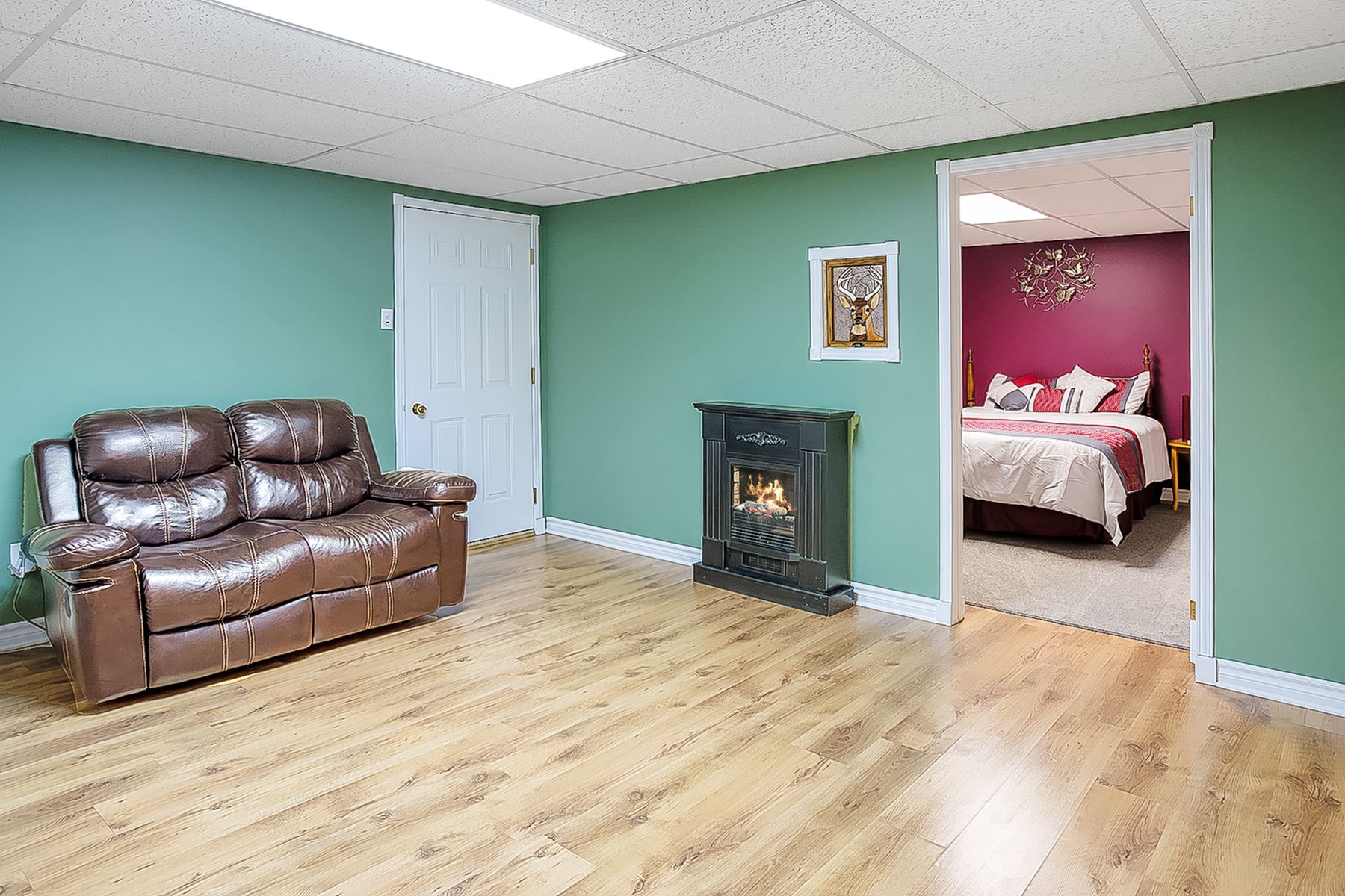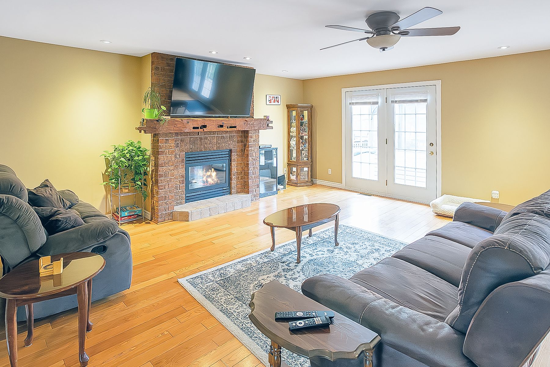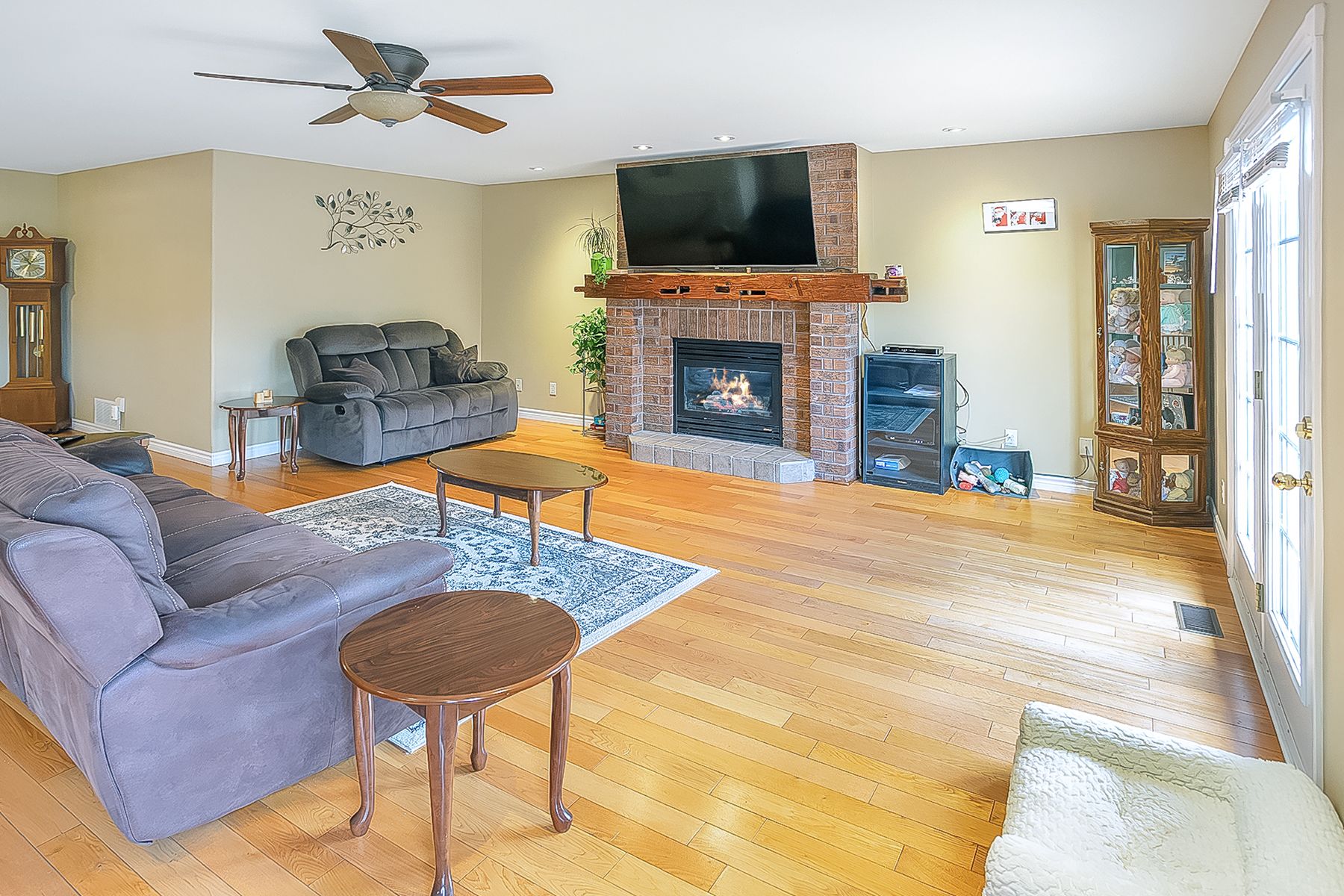 • Open concept living area with a cozy gas fireplace for inviting gatherings.