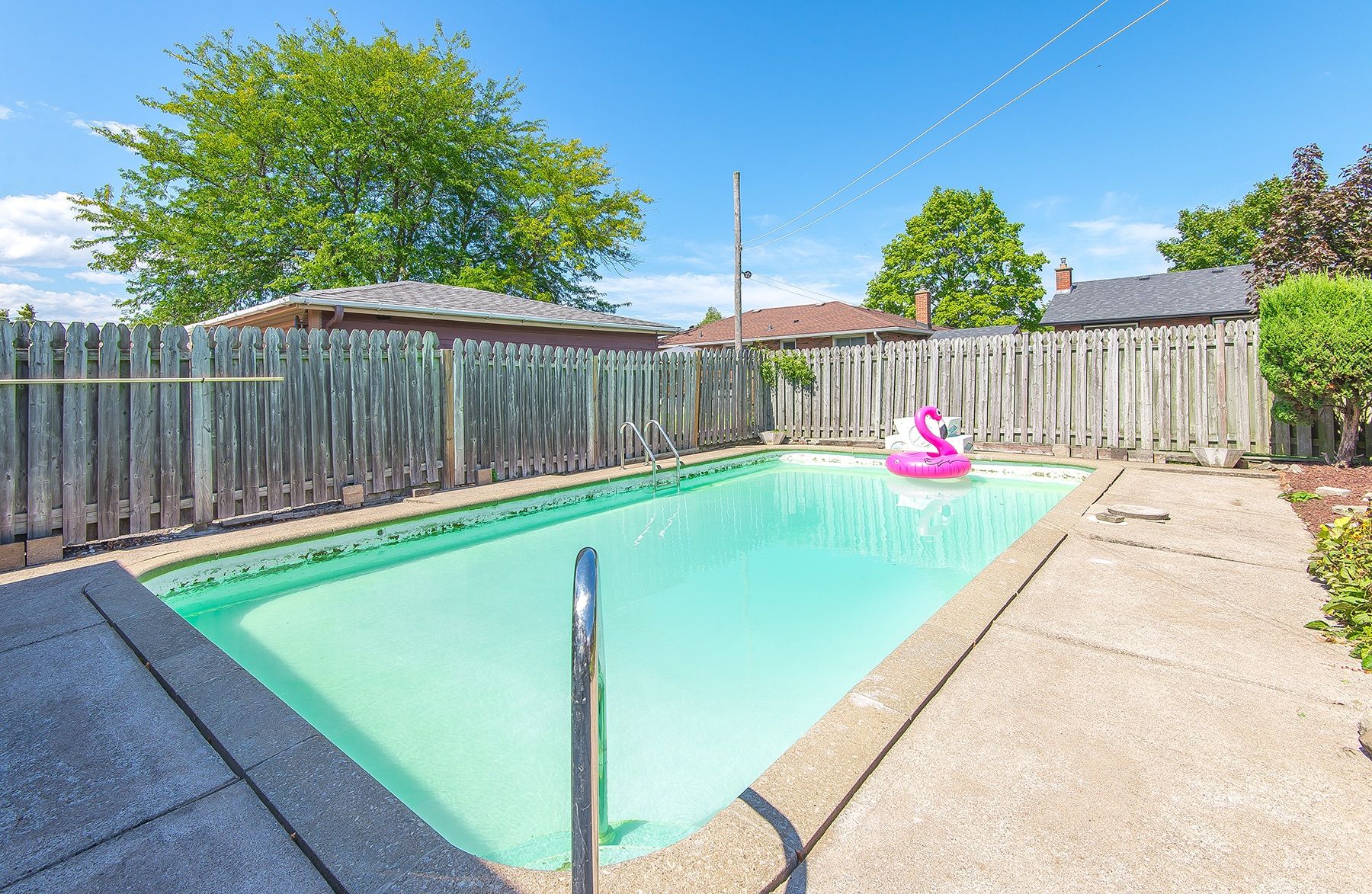 Fantastic opportunity to own this 3 plus 1 bedroom bungalow located in north st. Catharines on a quiet street. Offering a large living room and 3 bedrooms upstairs with an additional bedroom in the lower level. The main floor living room features large bay windows and hardwood floors. The finished basement offers lots of storage space, and the possibility for more bedrooms. There's an office, wood shop and large rec room complete with a bar. The fully fenced back yard features a concrete in ground pool perfect for relaxing and entertaining. The detached garage offers space for either storage or one car. With a side entrance this home has the possibility of in-law potential. Brand new roof 2025! Located in the sought-after north end, you're just minutes to welland canal lock 2, the carleton ymca, shopping, parks, and schools. Move-in ready and full of opportunity - this home is ideal for first-time buyers, downsizers, or anyone ready to create their dream space.