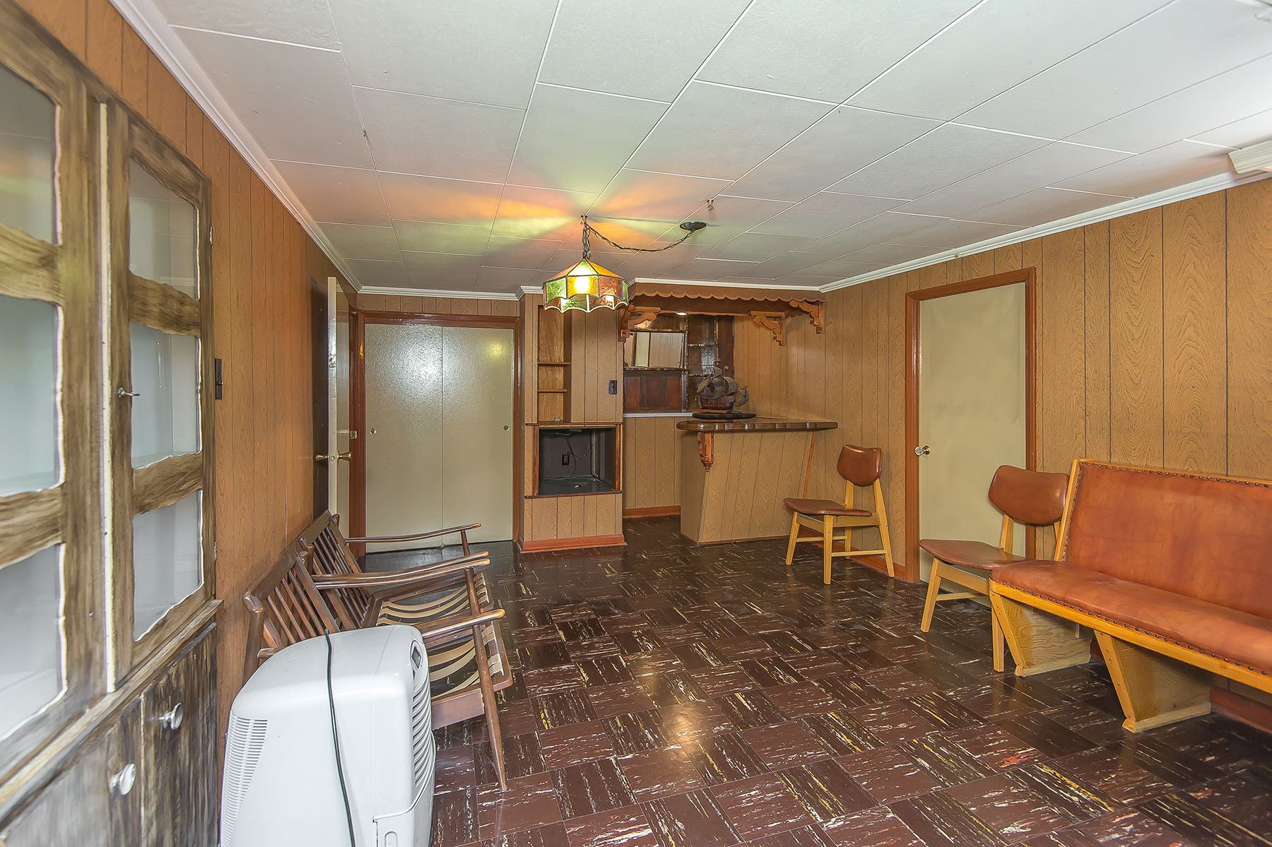 • Finished basement includes an office, wood shop, and rec room with a bar.