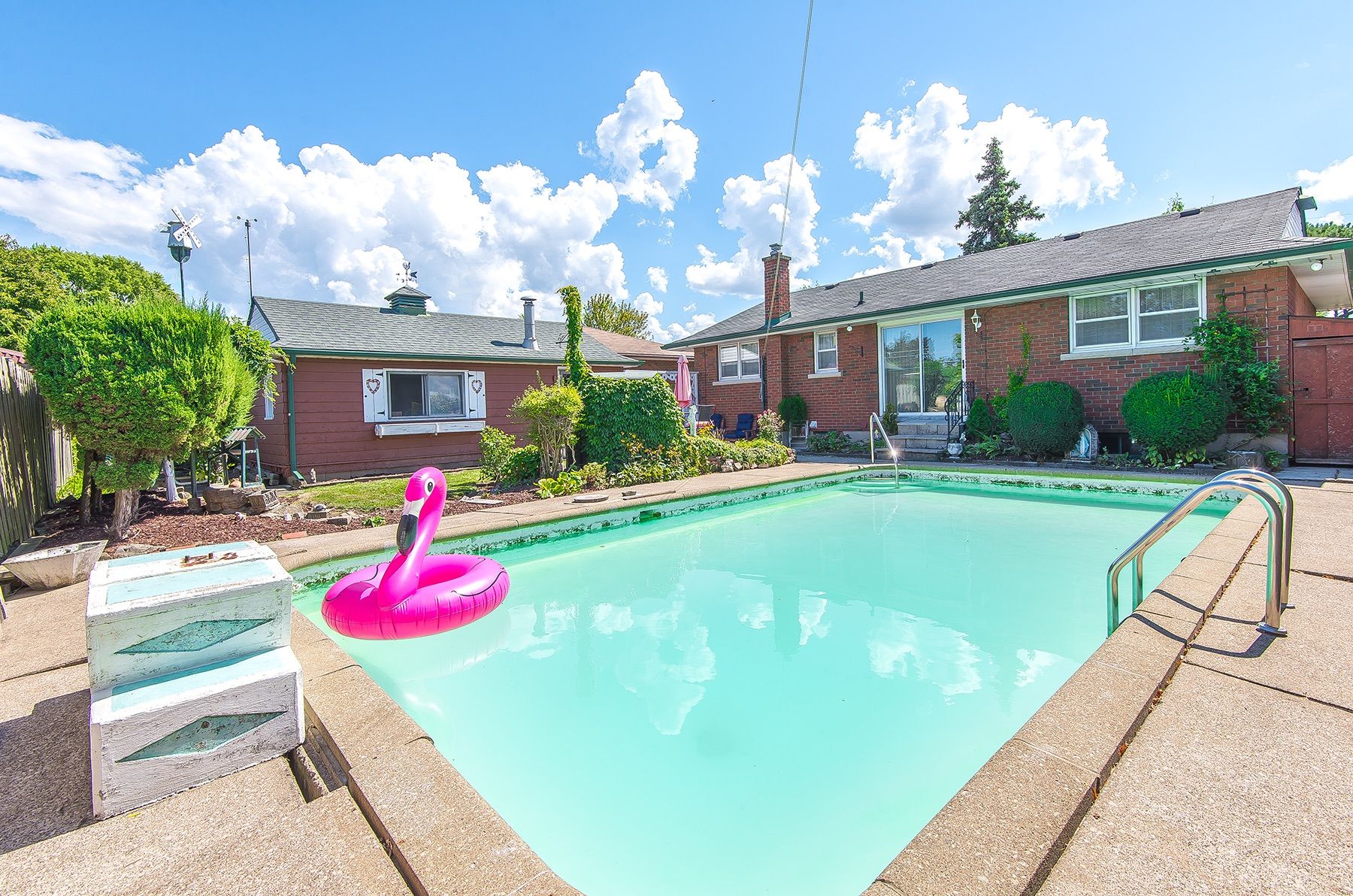 Fantastic opportunity to own this 3 plus 1 bedroom bungalow located in north st. Catharines on a quiet street. Offering a large living room and 3 bedrooms upstairs with an additional bedroom in the lower level. The main floor living room features large bay windows and hardwood floors. The finished basement offers lots of storage space, and the possibility for more bedrooms. There's an office, wood shop and large rec room complete with a bar. The fully fenced back yard features a concrete in ground pool perfect for relaxing and entertaining. The detached garage offers space for either storage or one car. With a side entrance this home has the possibility of in-law potential. Brand new roof 2025! Located in the sought-after north end, you're just minutes to welland canal lock 2, the carleton ymca, shopping, parks, and schools. Move-in ready and full of opportunity - this home is ideal for first-time buyers, downsizers, or anyone ready to create their dream space.