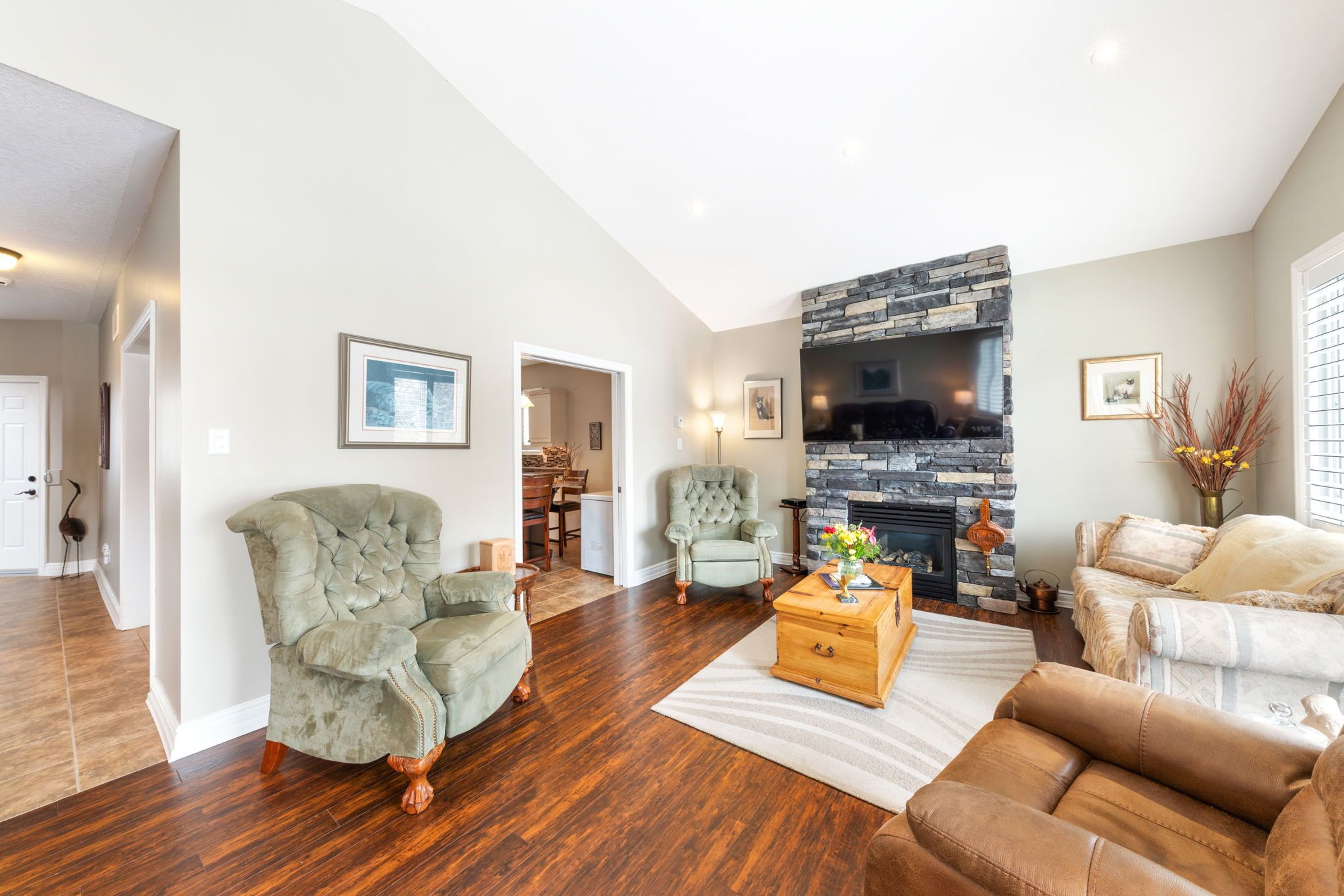 Welcome to this well maintained 3 bed home in the highly sought after mair mills community known for its friendly neighbours and close-to-everything convenience. Bright, comfortable and thoughtfully laid out, this home feels welcoming from the moment you arrive. The spacious kitchen, complete with a large island and ample workspace, is perfect for family meals and gatherings with friends. The living room provides an inviting space with hardwood floors, vaulted ceilings, pot lights and a stone fireplace for those chilly canadian days! Upstairs is carpet free with a generous primary bedroom complete with a 4pc ensuite and roomy walk-in closet. Two additional bedrooms provide plenty of space for family or guests and the large unfinished basement is a blank canvas for future customization. Outside, the mostly fenced and private backyard includes a large deck, attractive landscaping and an impressive 9' x 13' stone shed. A short distance from town and close to trails, golf and the ski hills, this home offers an ideal blend of comfort, community and location.