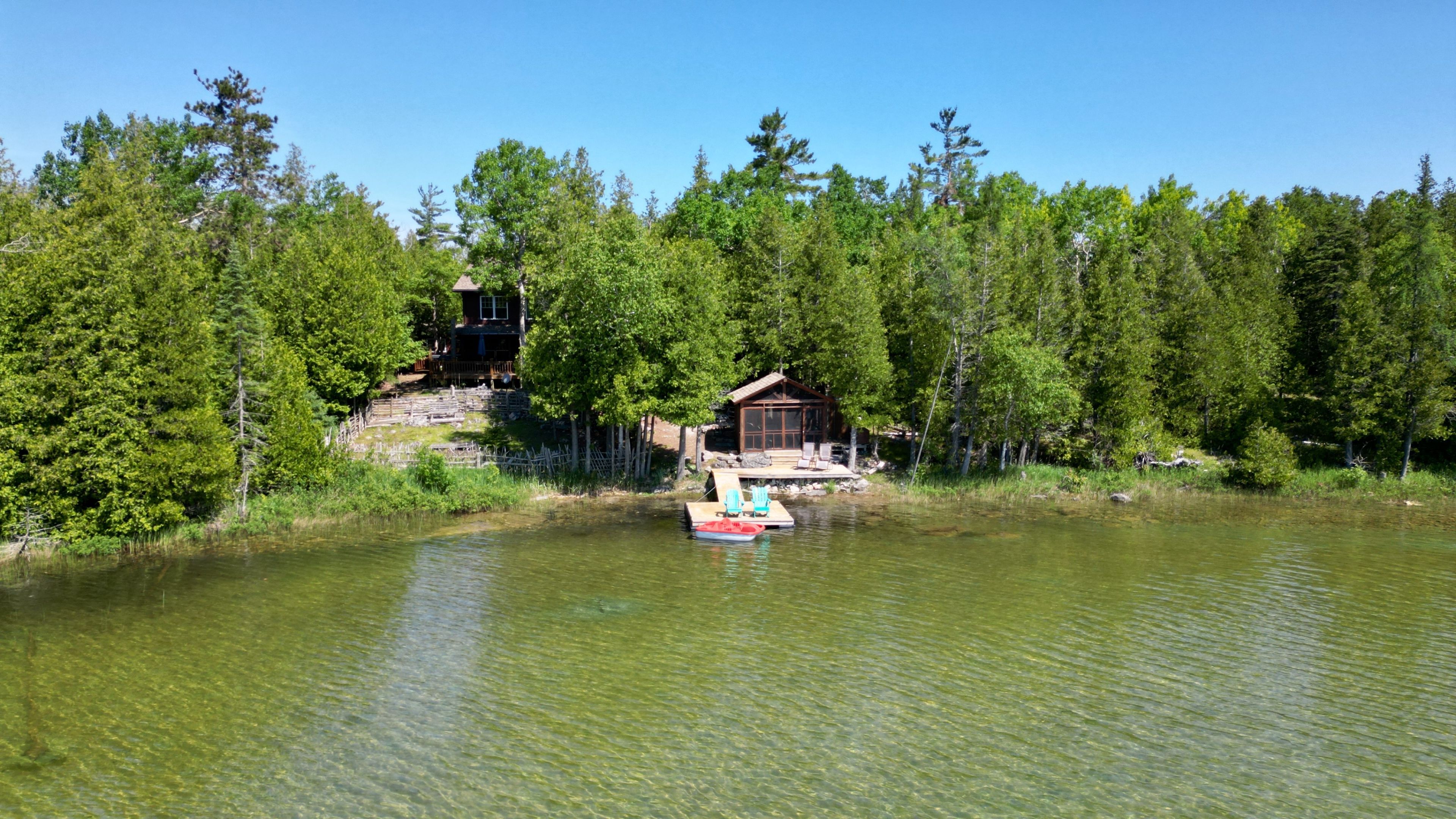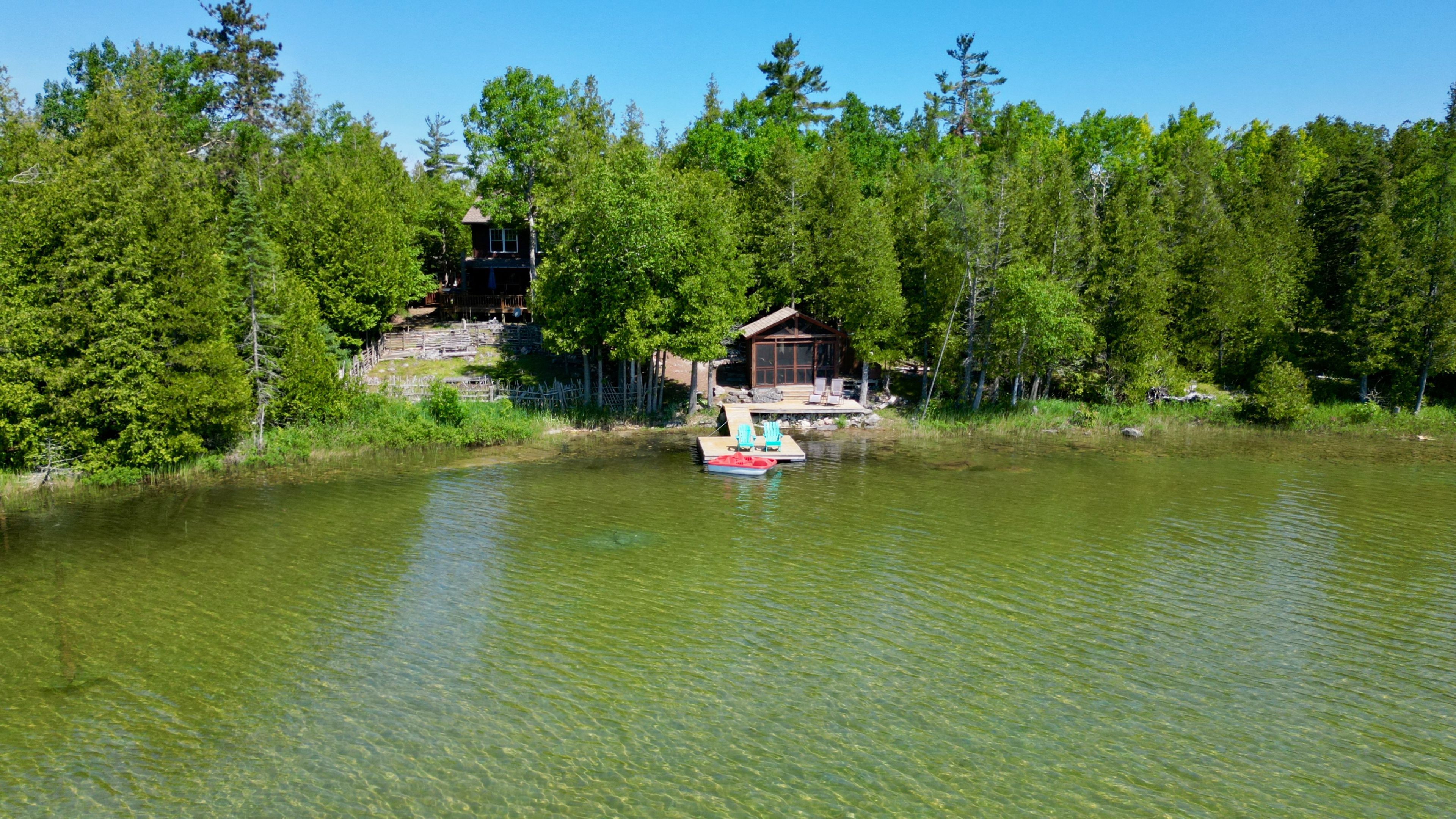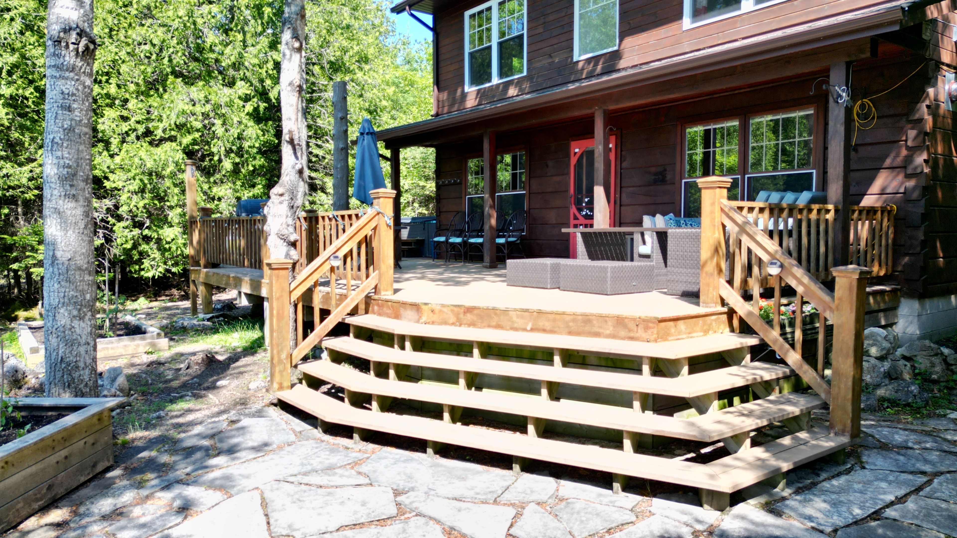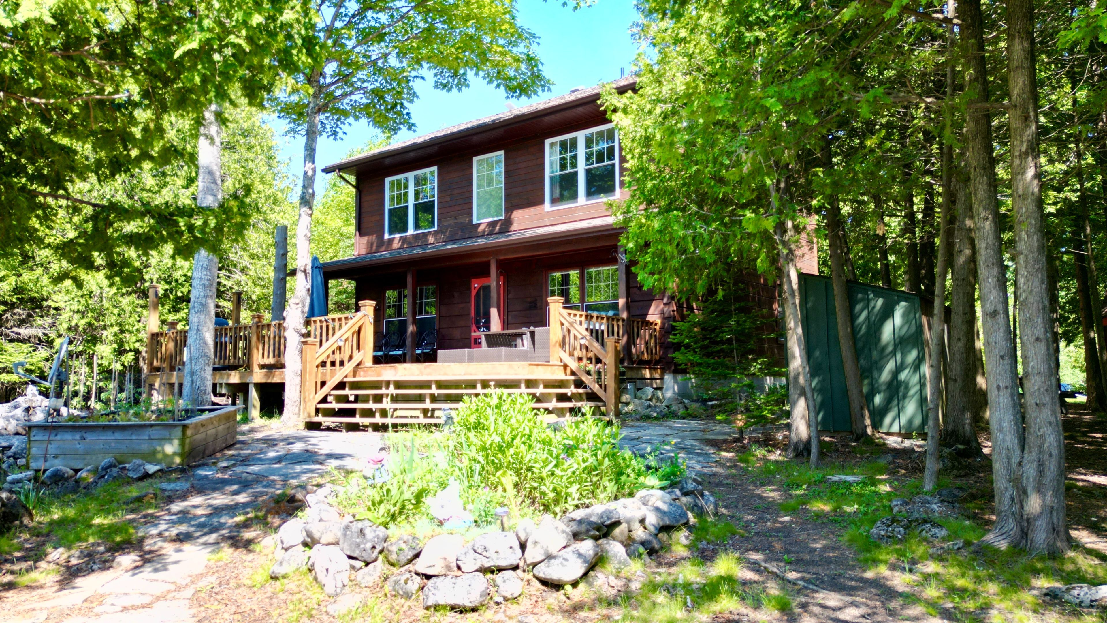 Imagine walking out on a sunny morning to your waterside dock, to enjoy the sounds of nature, hearing the birds chirping, seeing the water glistening from the lake. Here in this pristine setting on shouldice lake, this could be yours! Beautiful well constructed confederate log home, features three bedrooms and two bathrooms. Primary bedroom is large in size, with a juliette balcony, and an area large enough for small office or study area. The four piece bathroom has a soaker tub, and a separate shower; laundry closet is in one of the bedrooms. Attractive open concept living/dining/kitchen with center island and with walkout to deck. There is a woodstove in the living room that comfortably heats the home. There is also additional electric heat. A two piece powder room is on the main floor. Lovely lakeside deck that is large enough to enjoy breakfast, lunch and or dinner on. There is so much more! For those extra family guests that are staying overnight, there are two additional insulated bunkies that could easily accommodate the in-laws, or extra guests. For the kids, there is the games' room, the playhouse and if you want to enjoy being outside by the lake, there is the screened-in gazebo. Have a swim, then off to the hot tub (included) to relax and revitalize. The property also has a garage so that you can park your vehicle in or use for additional storage space or both! Grounds are nicely landscaped, with an area for a small vegetable garden, and an enclosed area for the pets. This property has been well cared for, shows extremely well and it could be yours! It is a prime waterfront property on shouldice lake. Well treed and private. Please do not enter the property without an appointment as it is the sellers's home. Taxes:$3840. 00. Lot size is 126. 3 feet wide by 272. 6 feet deep. Excellent year round property.
