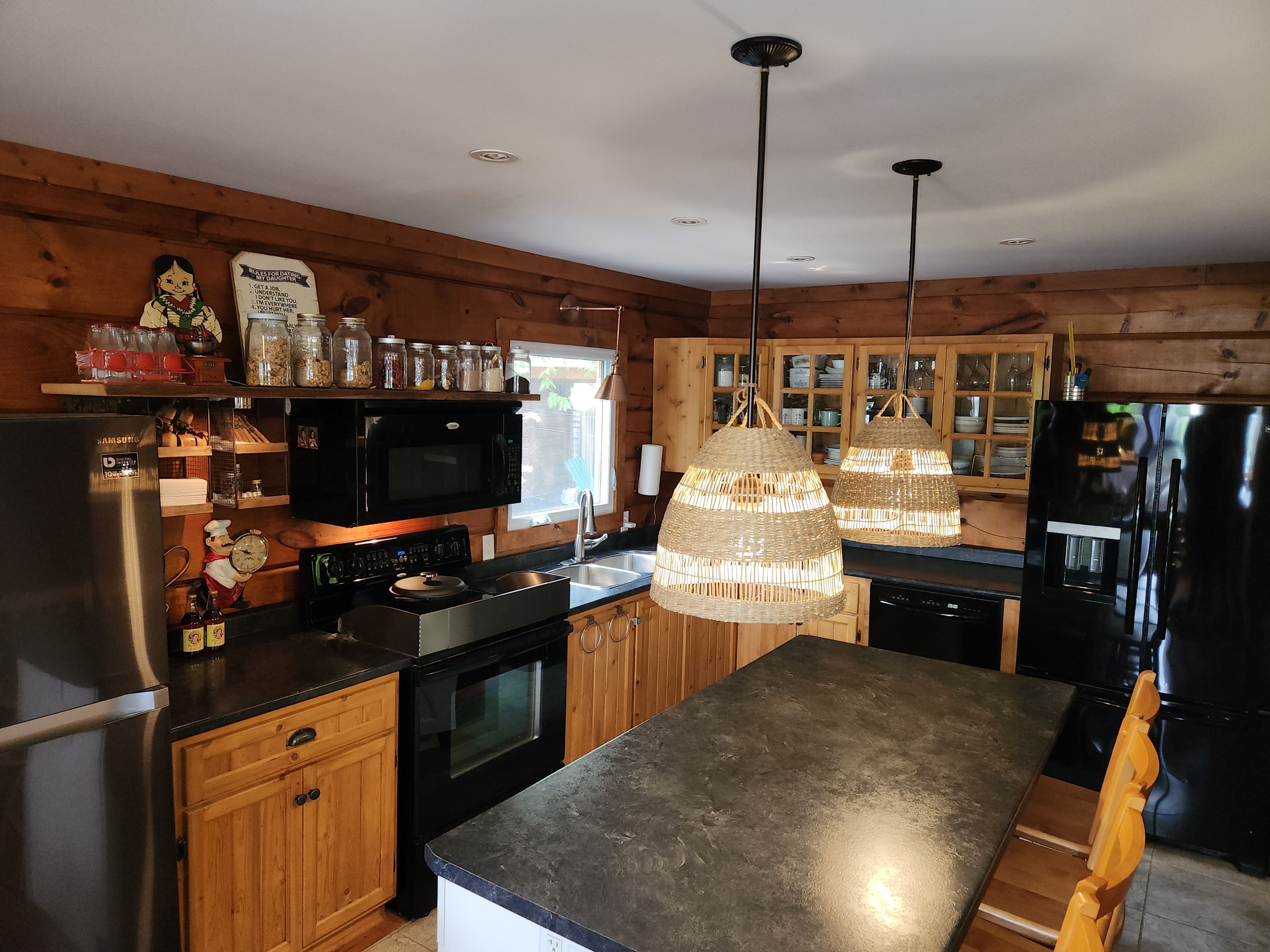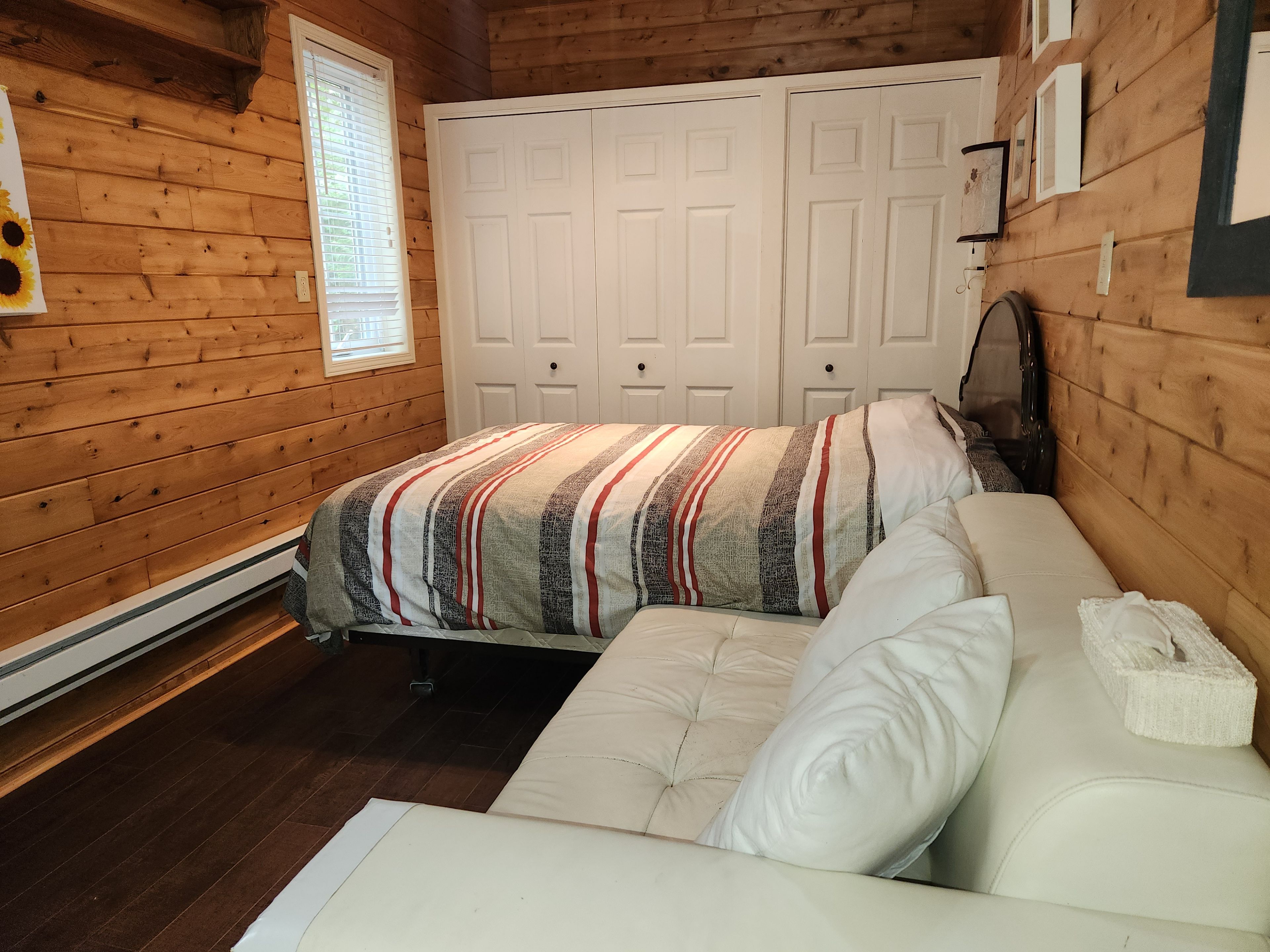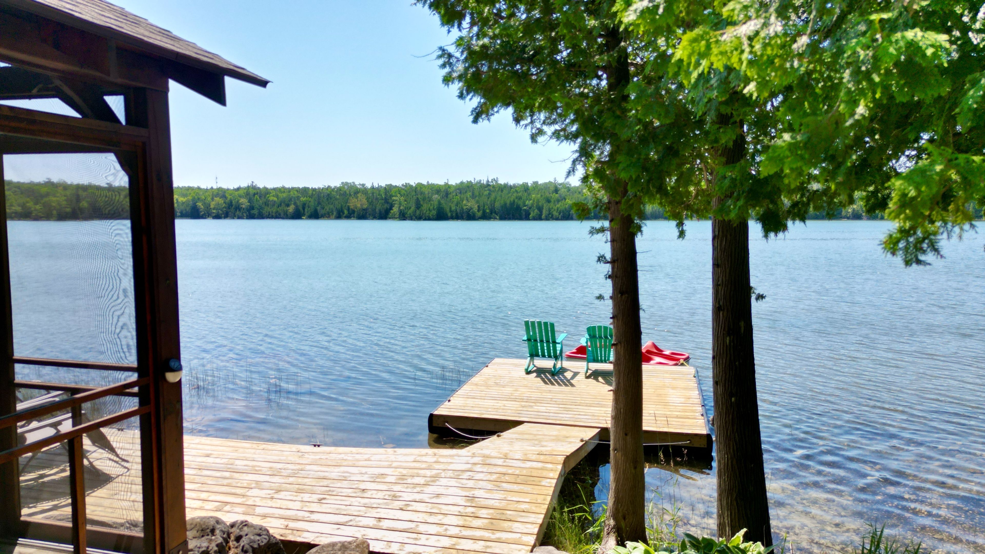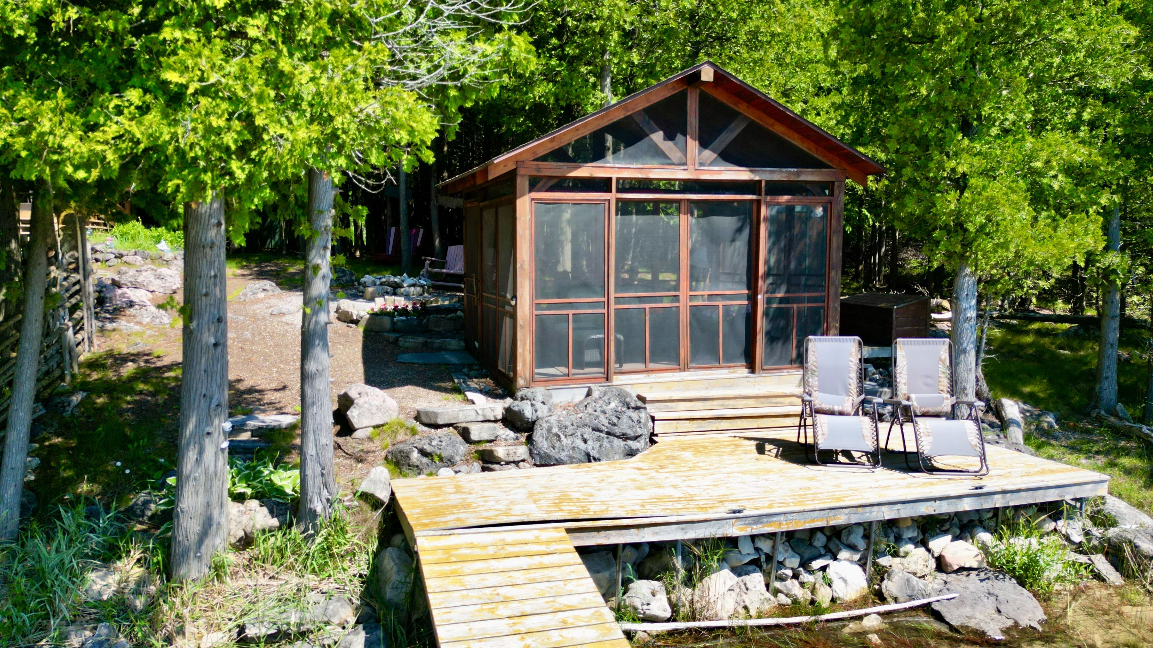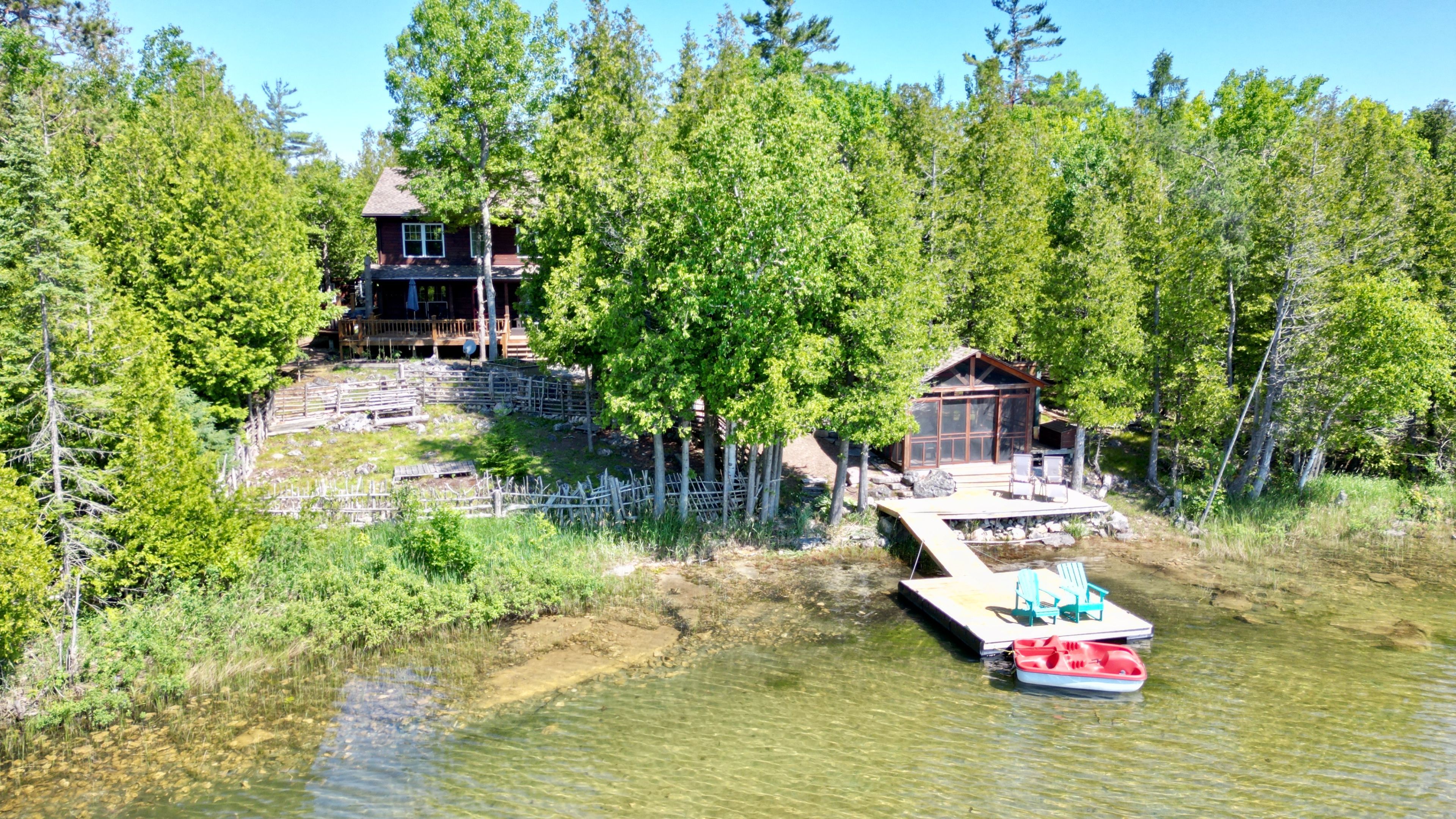 Imagine walking out on a sunny morning to your waterside dock, to enjoy the sounds of nature, hearing the birds chirping, seeing the water glistening from the lake. Here in this pristine setting on shouldice lake, this could be yours! Beautiful well constructed confederate log home, features three bedrooms and two bathrooms. Primary bedroom is large in size, with a juliette balcony, and an area large enough for small office or study area. The four piece bathroom has a soaker tub, and a separate shower; laundry closet is in one of the bedrooms. Attractive open concept living/dining/kitchen with center island and with walkout to deck. There is a woodstove in the living room that comfortably heats the home. There is also additional electric heat. A two piece powder room is on the main floor. Lovely lakeside deck that is large enough to enjoy breakfast, lunch and or dinner on. There is so much more! For those extra family guests that are staying overnight, there are two additional insulated bunkies that could easily accommodate the in-laws, or extra guests. For the kids, there is the games' room, the playhouse and if you want to enjoy being outside by the lake, there is the screened-in gazebo. Have a swim, then off to the hot tub (included) to relax and revitalize. The property also has a garage so that you can park your vehicle in or use for additional storage space or both! Grounds are nicely landscaped, with an area for a small vegetable garden, and an enclosed area for the pets. This property has been well cared for, shows extremely well and it could be yours! It is a prime waterfront property on shouldice lake. Well treed and private. Please do not enter the property without an appointment as it is the sellers's home. Taxes:$3840. 00. Lot size is 126. 3 feet wide by 272. 6 feet deep. Excellent year round property.