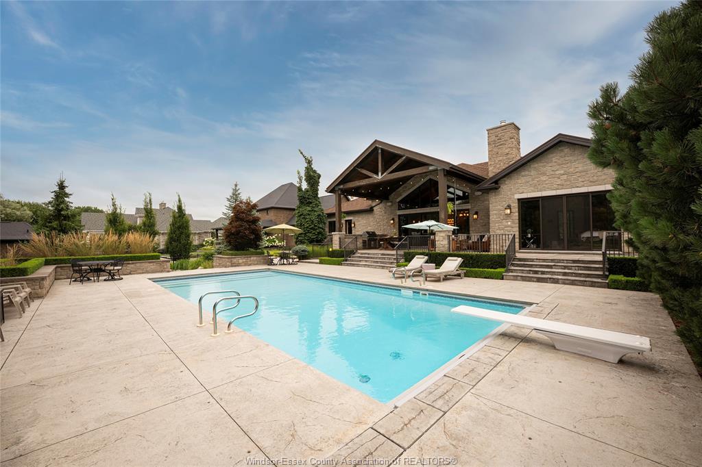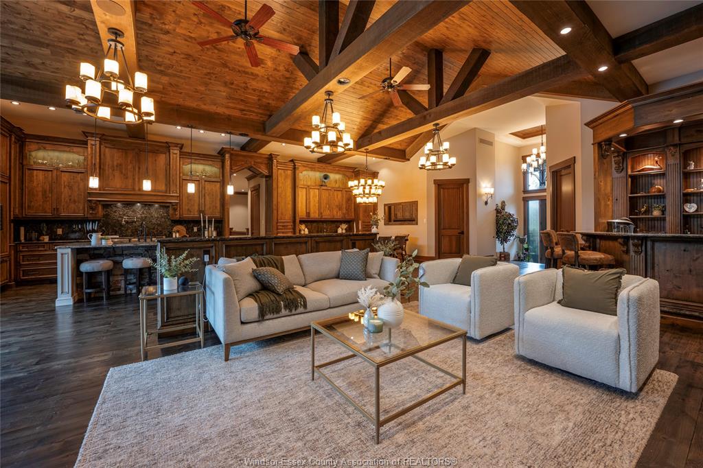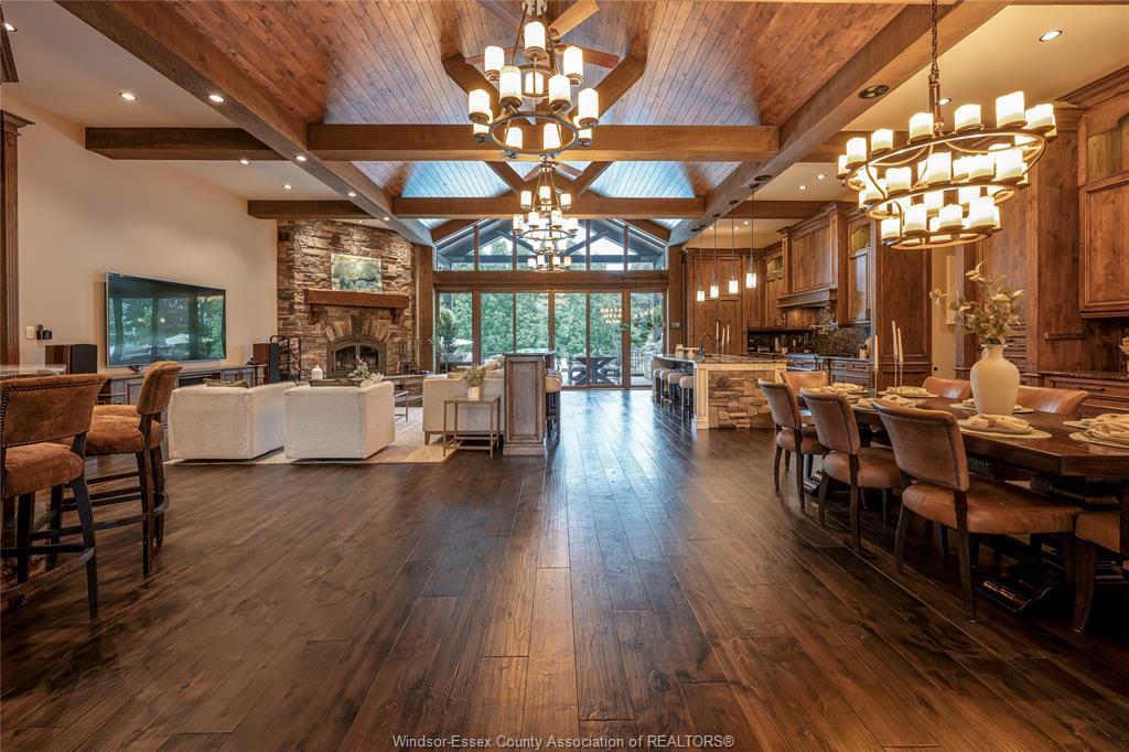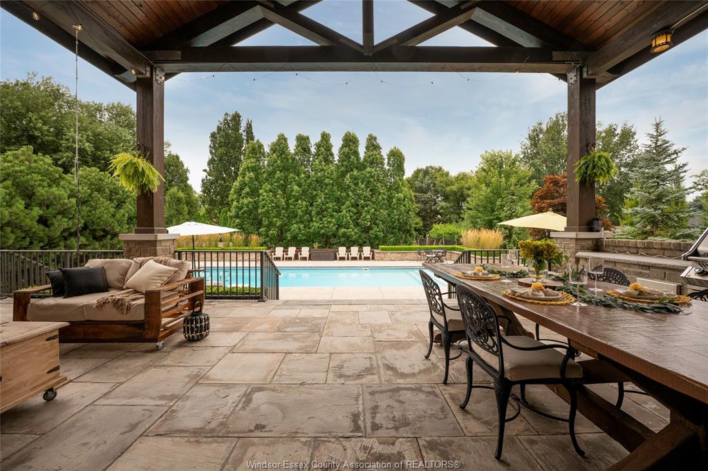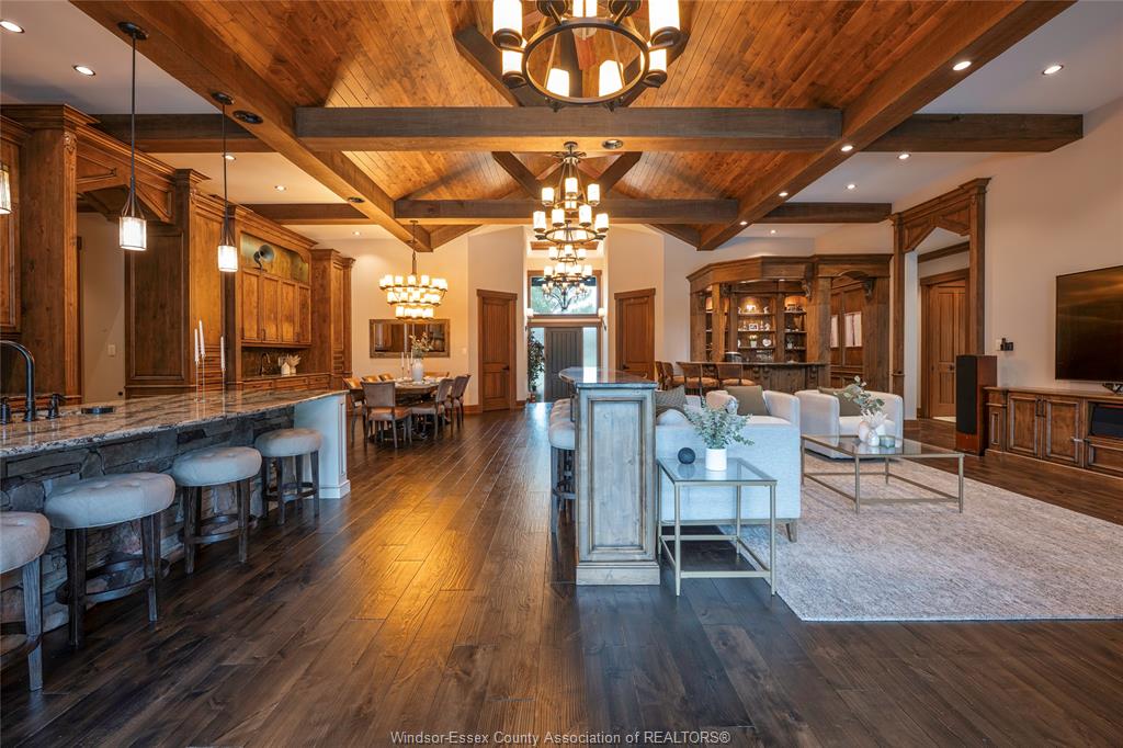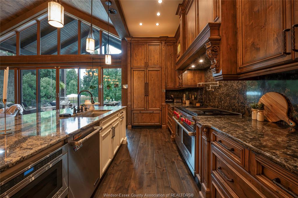 Step into timeless elegance w/ this custom-built, 3,604 sq ft stone ranch—a home where craftsmanship meets comfort, & every detail whispers luxury. From the moment you arrive, the rustic charm of this one-of-a-kind retreat captivates; w/ soaring 16-ft vaulted ceilings, exposed beams, & rich custom woodwork setting a warm & intimate tone. A wood-burning fireplace anchors the heart of the great room, perfect for cozy evenings. The gourmet kitchen is a dream for anyone who loves to cook or entertain—featuring cambria quartz countertops, a 48" wolf stove, pot filler, & stunning floor-to-ceiling cabinetry. A discreet chef’s pantry w/ outside access adds a touch of old-world luxury & convenience. W/ over 6400 sq ft of finished living space (plus an addt'l 1300 of finish-able living space), &10-ft ceilings throughout both the main floor, space and light are abundant. The home is thoughtfully designed to balance grandeur w/ livability, including solid wood interior doors, dual hvac, built-in speakers, automatic blinds, and an entire home automation system. The primary suite is a private sanctuary w/ direct access to the backyard oasis, soaring 16ft vaulted ceiling w/ exposed beams, dual walk-in closets, & a spa-inspired 5-piece ensuite w/ heated floors. Outdoors, luxury continues. The professionally landscaped backyard is a true retreat, complete w/ a massive covered porch, built-in bbq, saltwater pool, & stone gas fireplace. Whether it’s quiet evenings under the stars or lively gatherings with friends, this space was designed to bring people together. Insulated 2. 5-car garage, w/ heated floor & oversized 10x12 ft doors is perfect for hobbyists or adventurers. Metal roof offers peace of mind for years to come. Additional highlights include two wet bars, coffee/wine bar, a basement walk-out, underground irrigation & sprinkler systems and countless luxury upgrades throughout. Close to kingsville harbour, lakeside park, great schools, & amazing restaurants/shops.