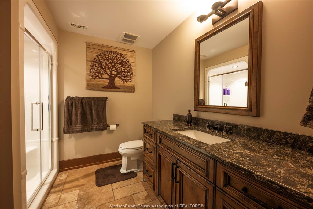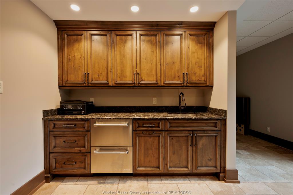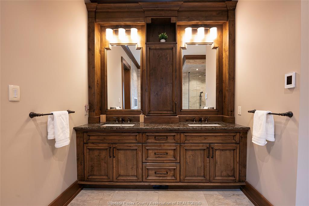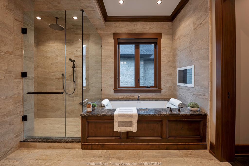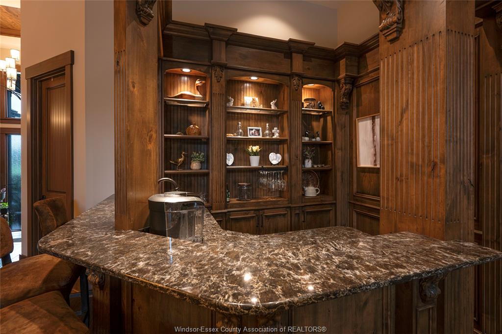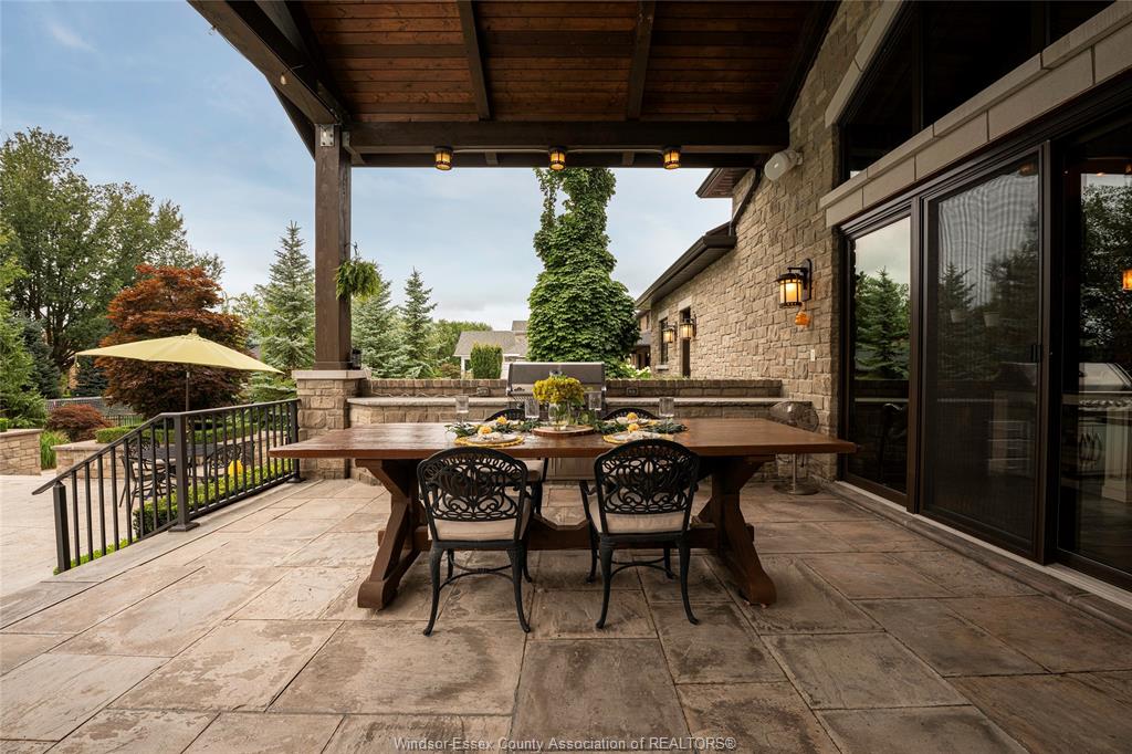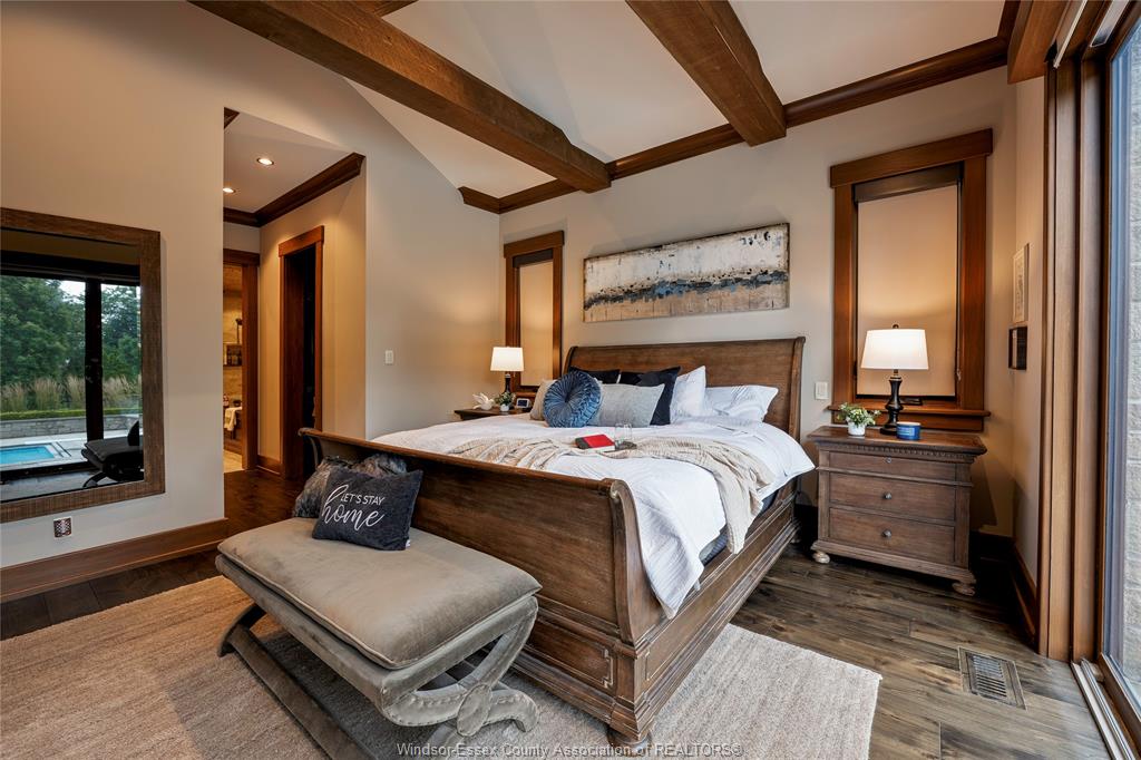 Step into timeless elegance w/ this custom-built, 3,604 sq ft stone ranch—a home where craftsmanship meets comfort, & every detail whispers luxury. From the moment you arrive, the rustic charm of this one-of-a-kind retreat captivates; w/ soaring 16-ft vaulted ceilings, exposed beams, & rich custom woodwork setting a warm & intimate tone. A wood-burning fireplace anchors the heart of the great room, perfect for cozy evenings. The gourmet kitchen is a dream for anyone who loves to cook or entertain—featuring cambria quartz countertops, a 48" wolf stove, pot filler, & stunning floor-to-ceiling cabinetry. A discreet chef’s pantry w/ outside access adds a touch of old-world luxury & convenience. W/ over 6400 sq ft of finished living space (plus an addt'l 1300 of finish-able living space), &10-ft ceilings throughout both the main floor, space and light are abundant. The home is thoughtfully designed to balance grandeur w/ livability, including solid wood interior doors, dual hvac, built-in speakers, automatic blinds, and an entire home automation system. The primary suite is a private sanctuary w/ direct access to the backyard oasis, soaring 16ft vaulted ceiling w/ exposed beams, dual walk-in closets, & a spa-inspired 5-piece ensuite w/ heated floors. Outdoors, luxury continues. The professionally landscaped backyard is a true retreat, complete w/ a massive covered porch, built-in bbq, saltwater pool, & stone gas fireplace. Whether it’s quiet evenings under the stars or lively gatherings with friends, this space was designed to bring people together. Insulated 2. 5-car garage, w/ heated floor & oversized 10x12 ft doors is perfect for hobbyists or adventurers. Metal roof offers peace of mind for years to come. Additional highlights include two wet bars, coffee/wine bar, a basement walk-out, underground irrigation & sprinkler systems and countless luxury upgrades throughout. Close to kingsville harbour, lakeside park, great schools, & amazing restaurants/shops.