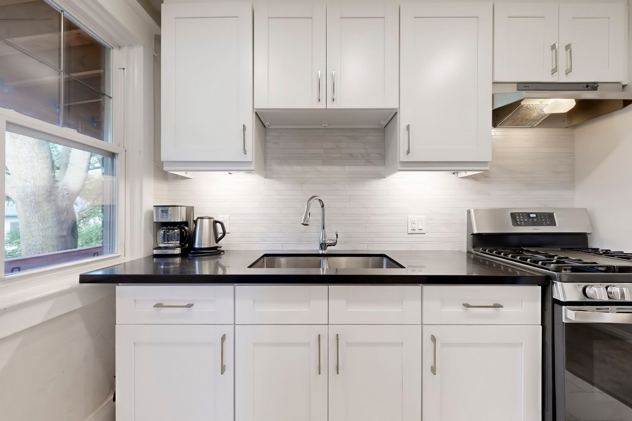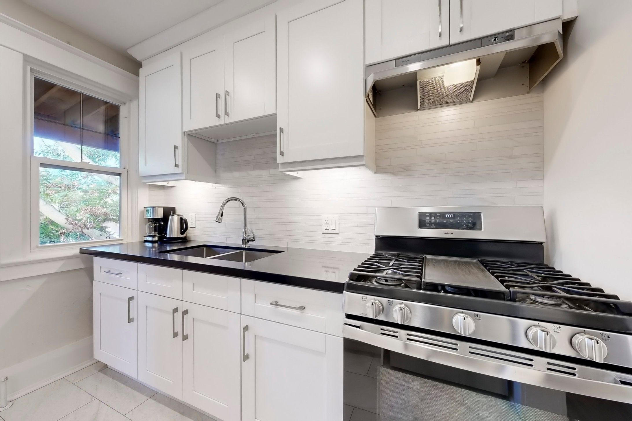 • Convenient updated kitchen with gas stove and in-suite laundry.