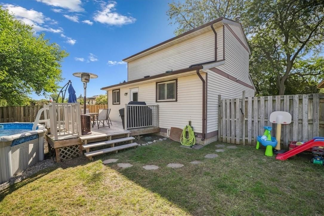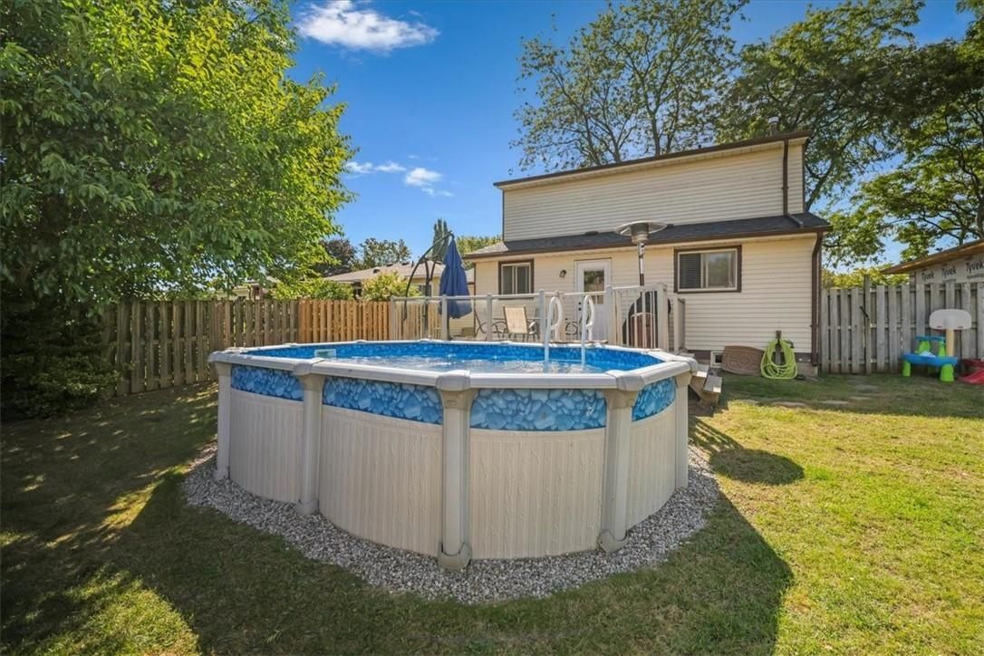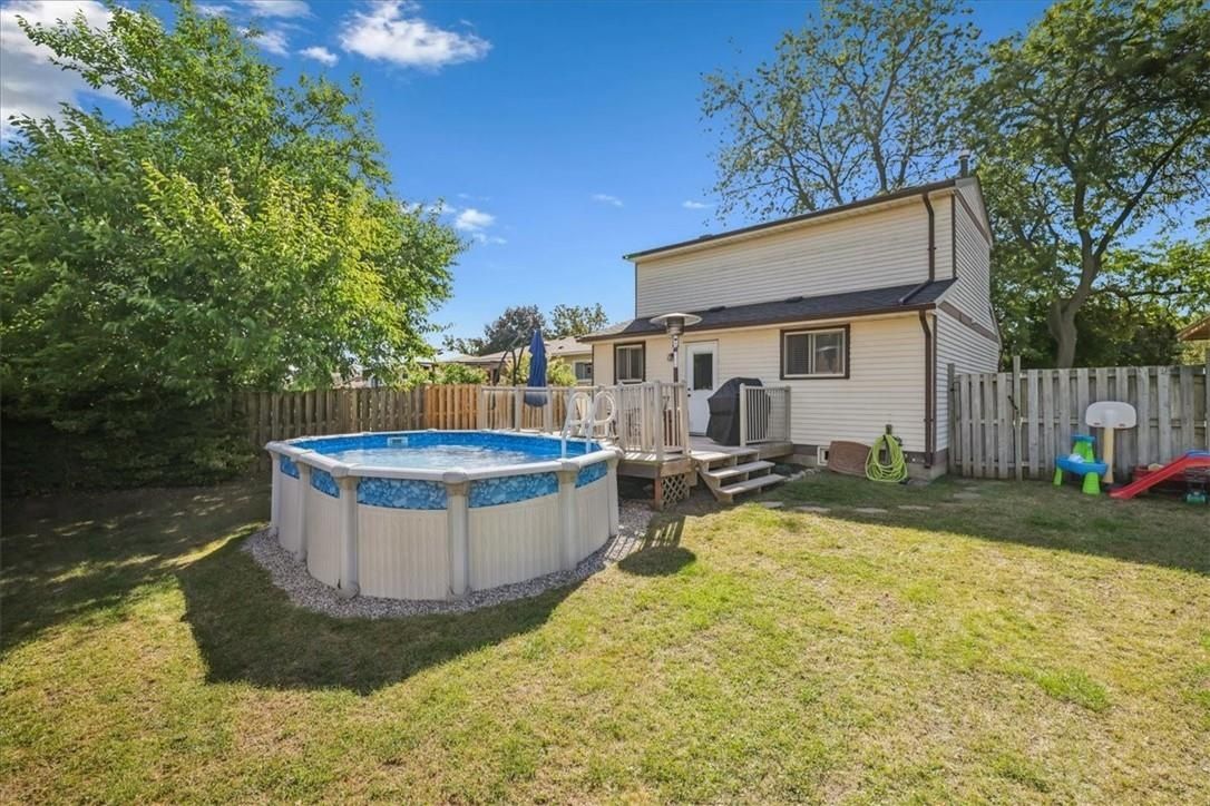 Welcome to this beautiful and affordable two-storey home located in the highly sought-after lynden hills neighbourhood. 9 inglewood street is a true gem, ideal for first-time buyers and growing families. This well-maintained 3-bedroom, 2-full-bath home sits on a generous lot and offers outstanding value, comfort, and style. The main floor features modern updated flooring, a convenient main-level bedroom, and an updated kitchen that overlooks your private backyard retreat. Step outside to enjoy the spacious deck, interlocking stone fire pit area, and above-ground pool-perfect for summer entertaining and family gatherings. Upstairs, you'll find two additional bright bedrooms, while the fully finished basement adds valuable living space, ideal for a cozy family room, games area, or home office. Situated in one of brantford's most desirable communities, this home is close to excellent schools, shopping, amenities, and offers quick highway access for commuters.