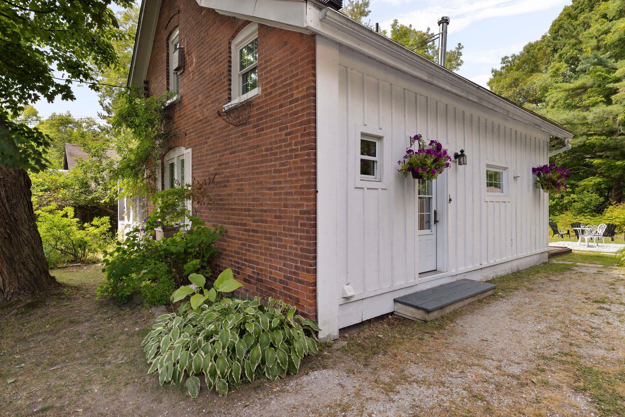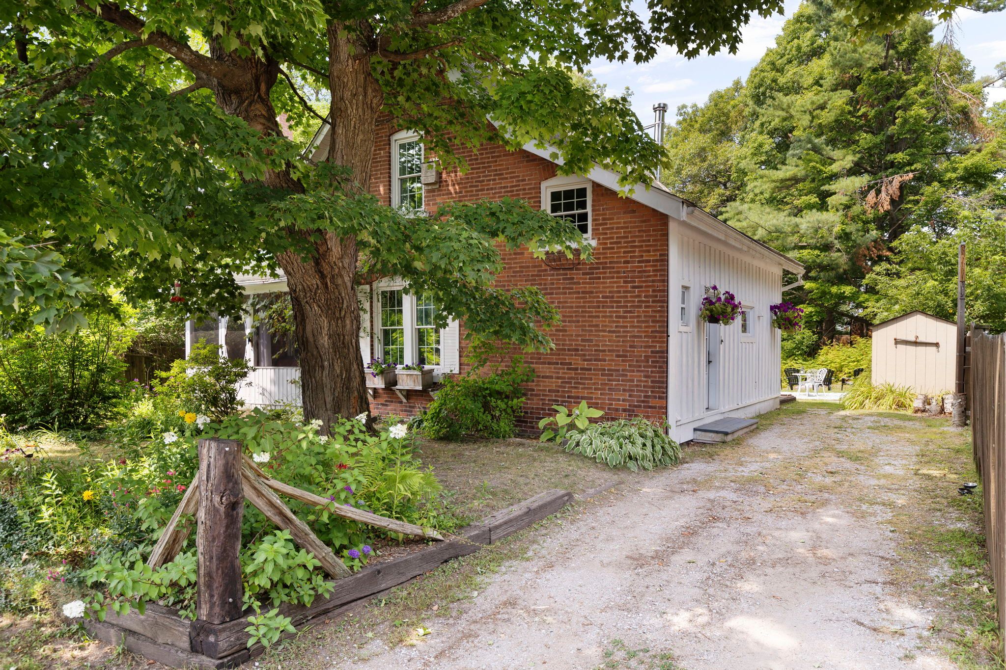 Every so often, something truly special shows up. This is one of those times. Set on a peaceful cul-de-sac, with green space and wooded trails right at your back door, 9 king street offers a rare balance of character, privacy, and walkability. Coffee downtown in the morning. A swim in the river by afternoon. Life here keeps it all within reach. As you arrive, the brick exterior framed by a towering tree sets the tone. Step inside and the story deepens: warmth, light, and timeless character at every turn. The sleek black kitchen makes its statement with a butcher block countertop, stainless steel appliances, and soft pot lighting. A wood fireplace anchors the living room, surrounded by windows that frame the seasons. Its a place for slow reads and long talks. The dining room invites connection. Evenings begin around the table, then drift to the screened-in porch, where conversation lingers long after the plates are cleared. A muskoka room offers another place to pause, the perfect spot to rest after tending the gardens. A 2 pc guest bath and laundry complete the main level. Upstairs, a spacious primary bedroom and a comfortable guest room offer quiet retreats. The spa-inspired 4 pc bath features a glass shower a clawfoot tub. Plus, two tucked-away nooks - right now they are closets, but with a little creativity? They could be so much more. Think an entry with a hidden bookcase door or a dormer that turns it into your next favourite room. Inside, the world slows. Outside, it opens up-private, well-treed, and spacious. Picture a bonfire glowing under the stars or afternoons spent unwinding in natures embrace. Here, fires crackle, garden beds bloom, and you feel worlds away from the pace of town. Historic charm matters everyday convenience with full municipal services, natural gas heat, and high-speed internet available. Art, nature, and community-all right here. This is where town meets quiet. Where history meets possibility. And where life-finally-feels like it fits.