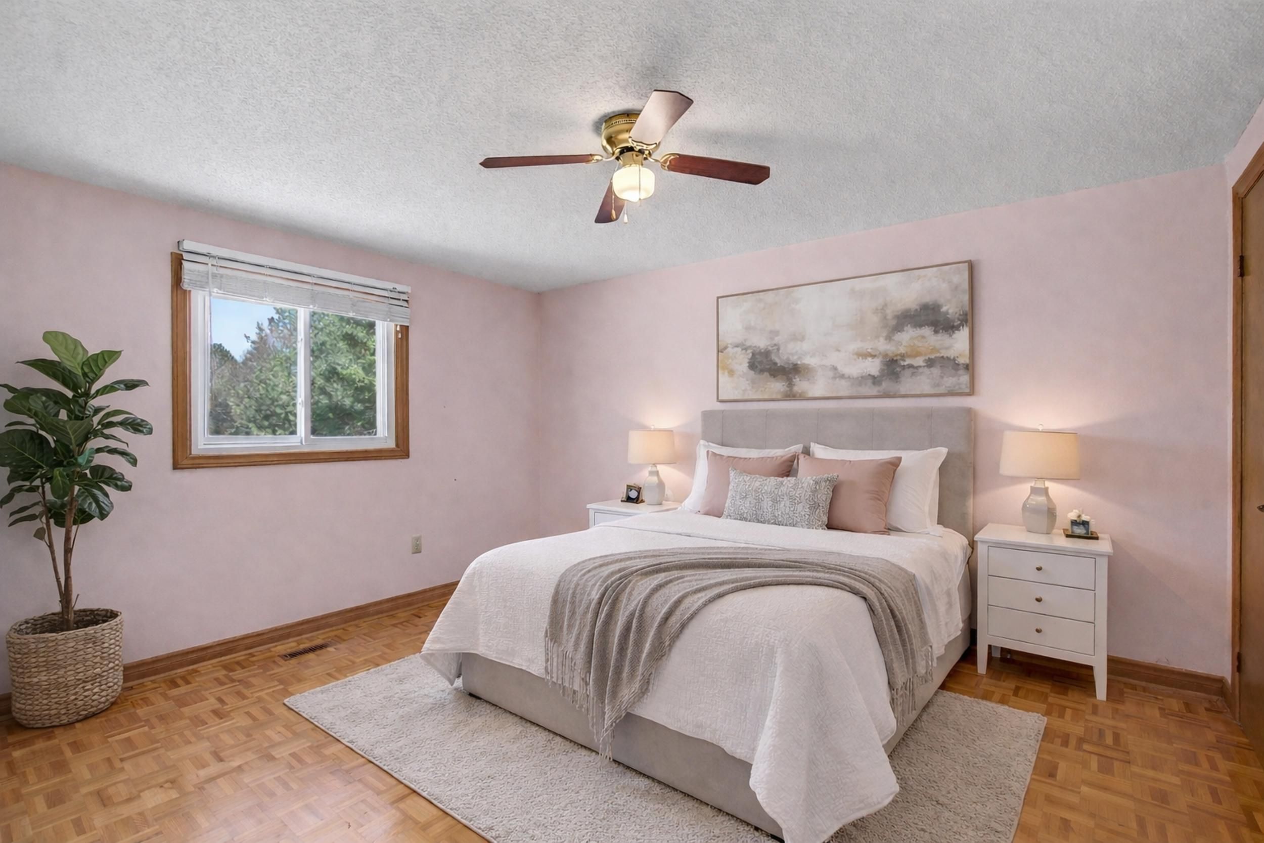 A rare offering of this executive area on a large 3/4 acres lot and spacious detached 4 spacious bedroom home, 3 car garage, open circular oak staircase, large eat-in kitchen with multiple access to large deck. Large cedar closet, 2 cold cellars, wood flooring and wood burning fireplace.