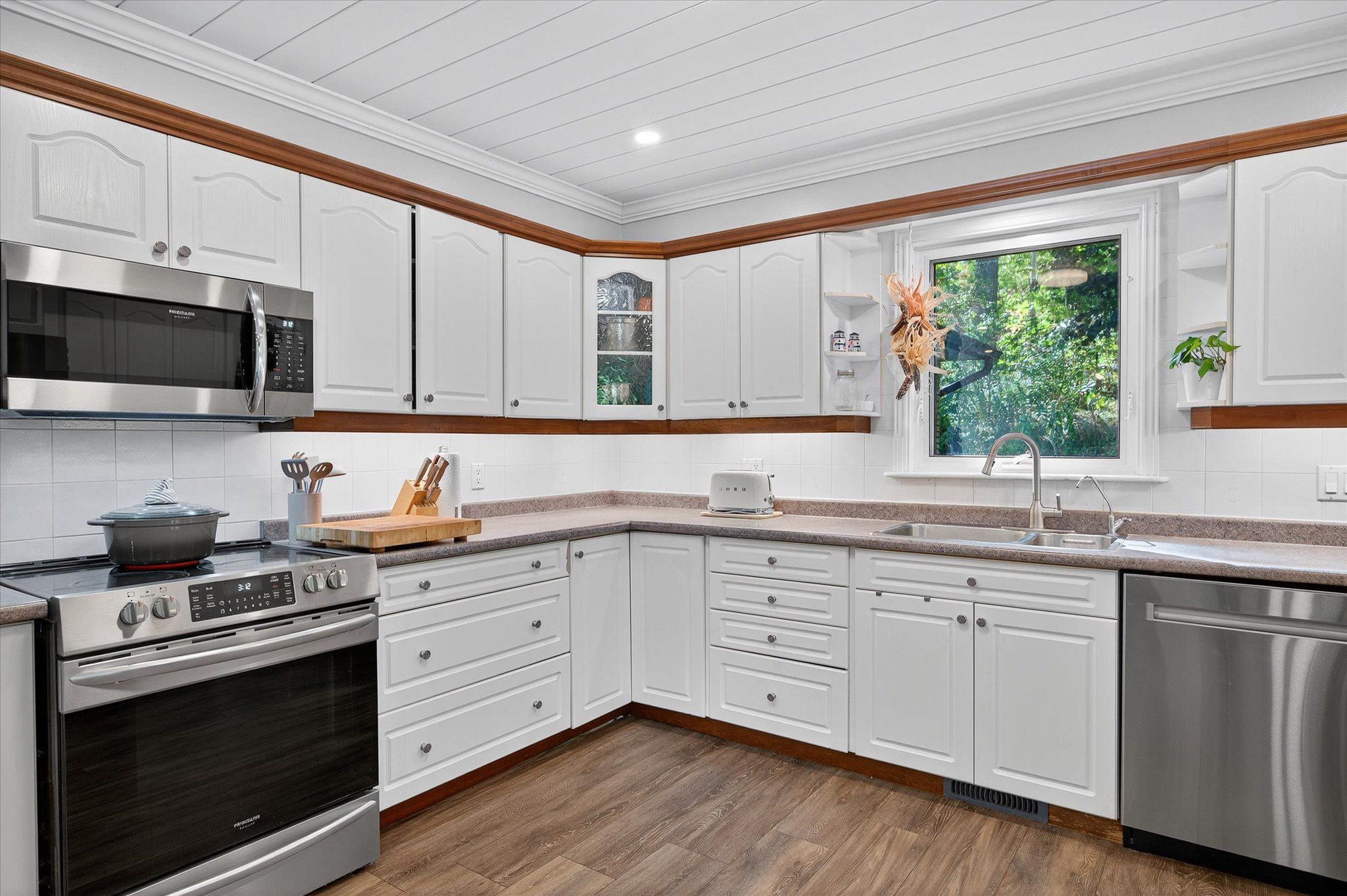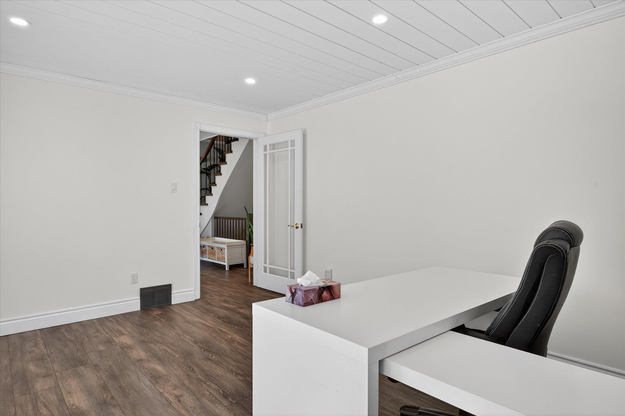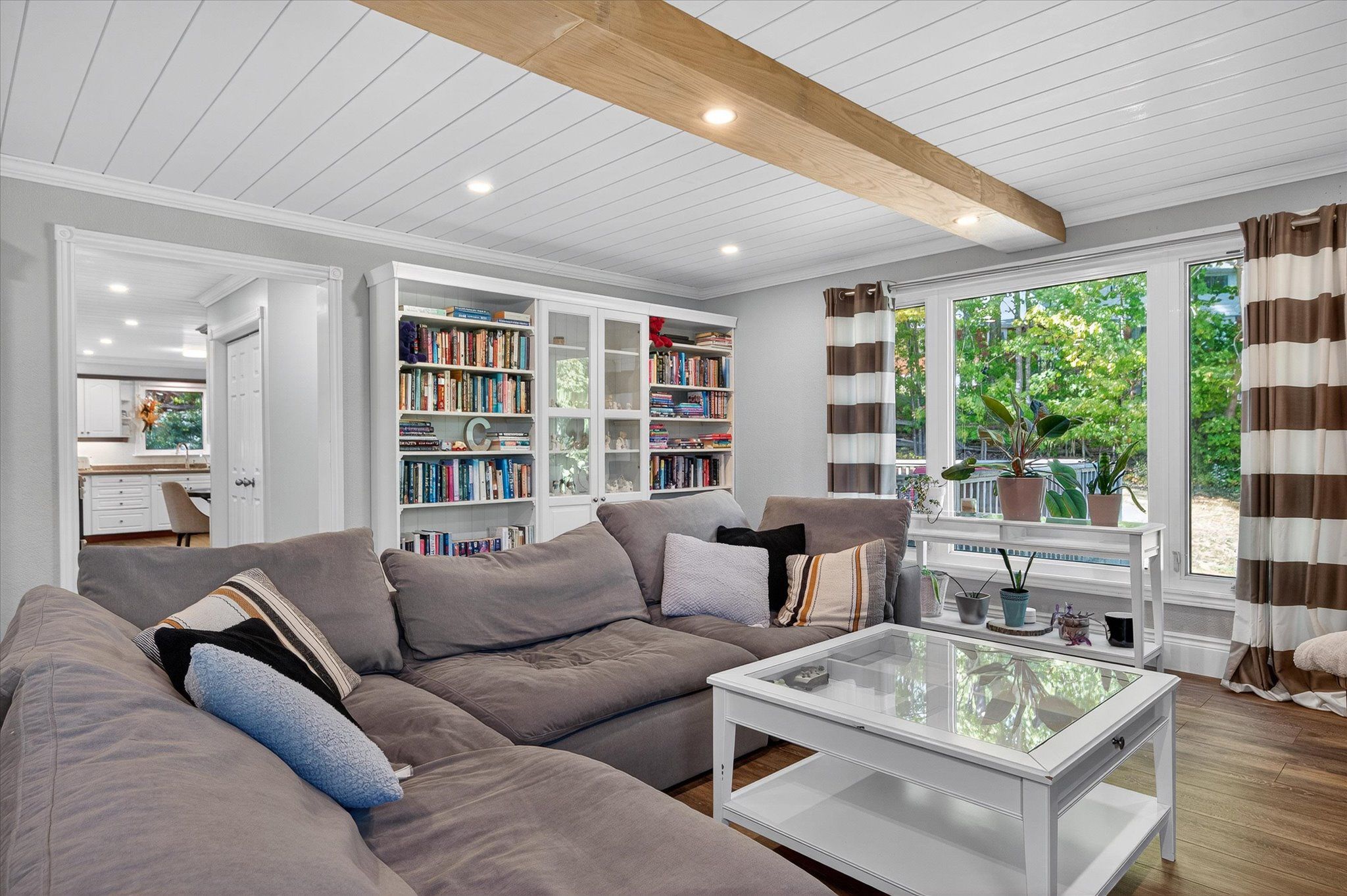 • Bright interior with spacious kitchen, family room, and office areas.