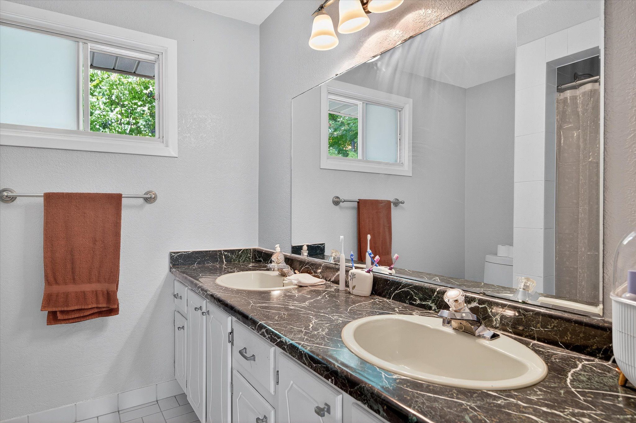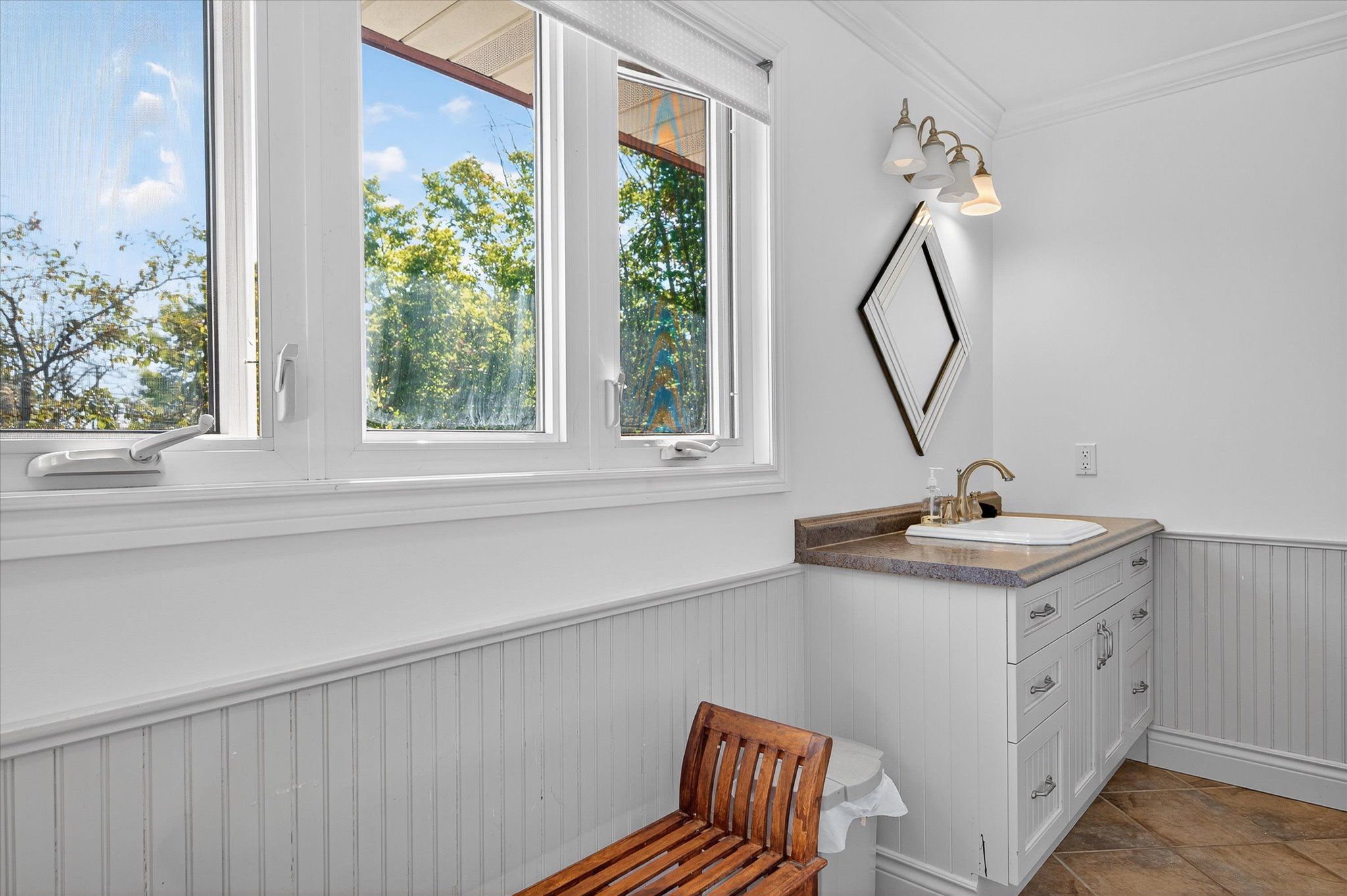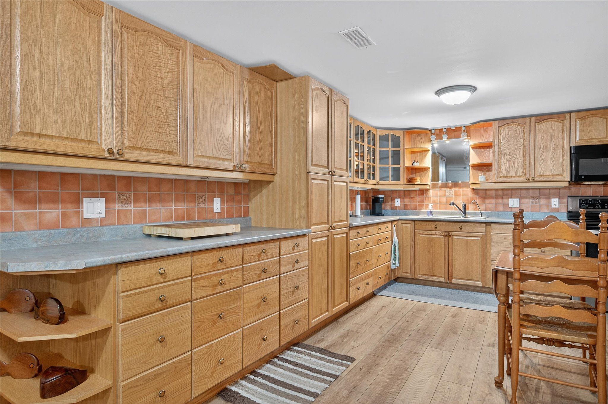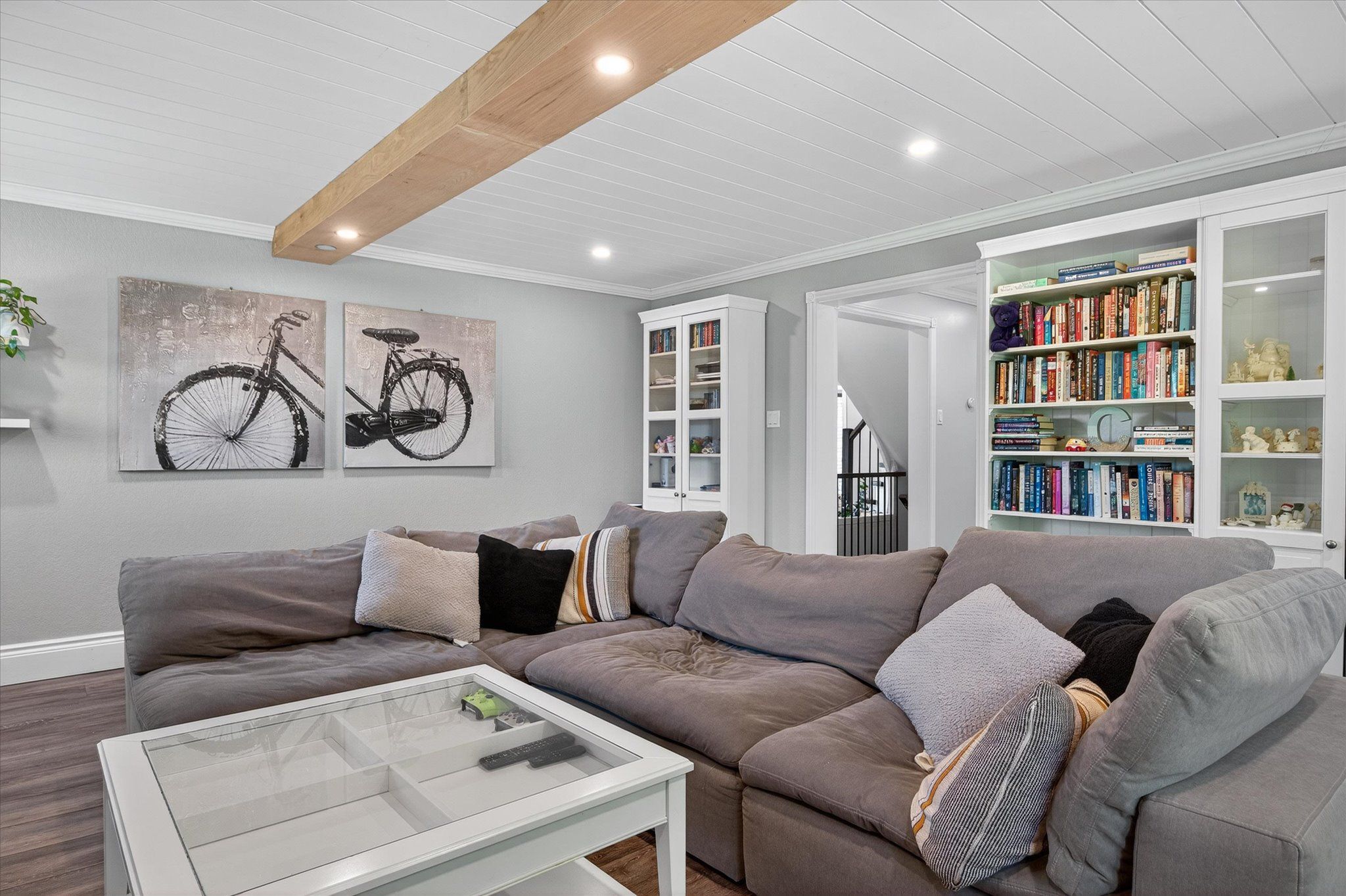 • Bright interior with spacious kitchen, family room, and office areas.