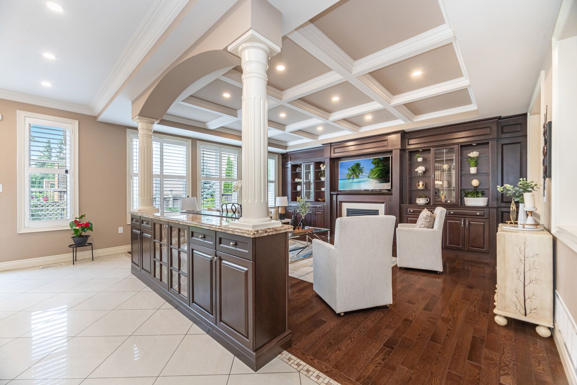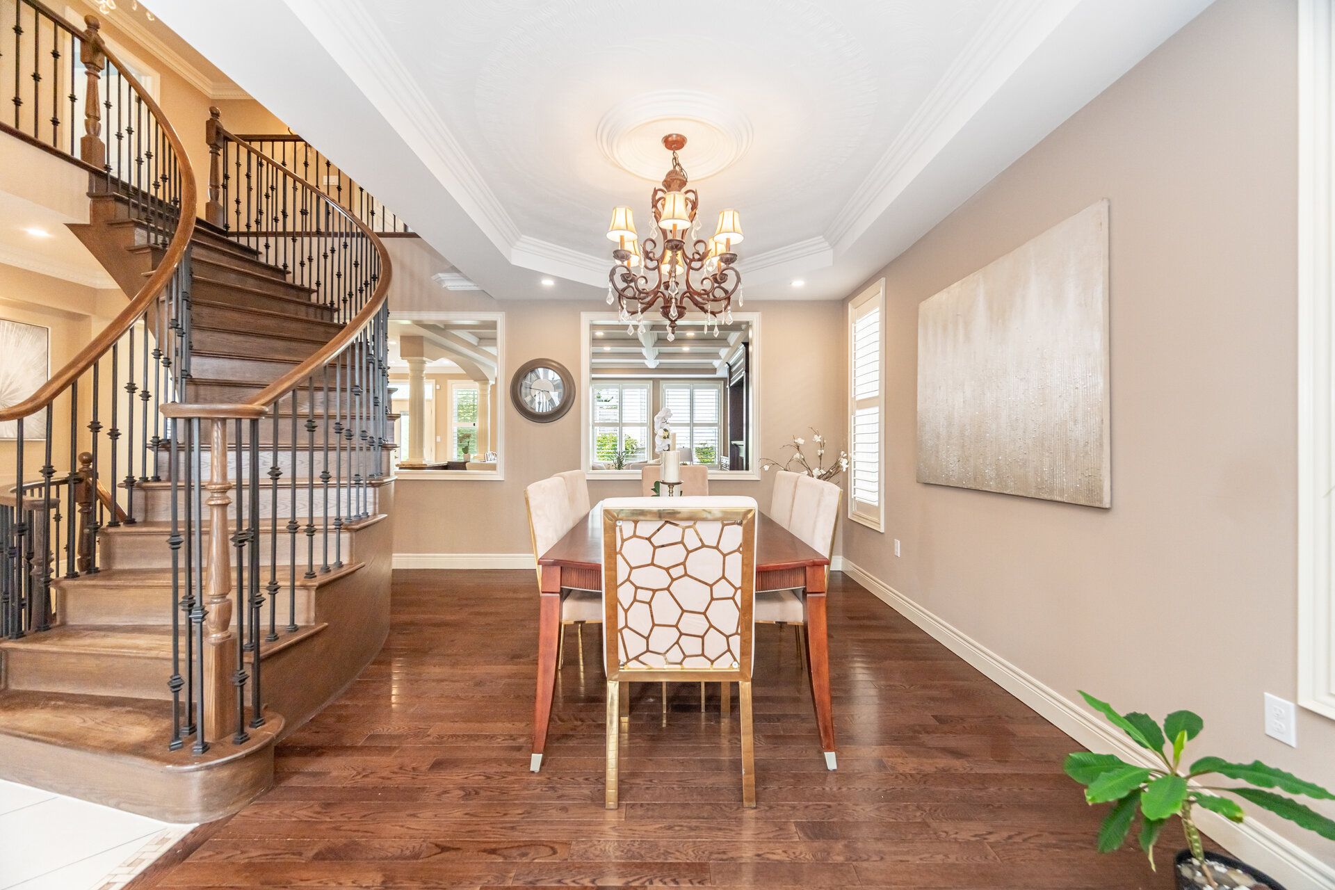 Welcome to this stunning 4+1 bedroom home, tucked away on a quiet court and offering over 5000 sq. Ft. Of beautifully finished total living space. From the attention to detail and high-end finishes that set this home apart, the main floor boasts 9-foot ceilings, rich hardwood and porcelain flooring, and elegant crown moulding throughout. The spacious family room is a true highlight, featuring custom built-in wall units, a cozy gas fireplace, and an eye-catching waffle ceiling that adds both character and warmth. The gourmet kitchen is designed for both everyday living and entertaining, with upgraded cabinetry, granite countertops, a centre island, built-in appliances, and a seamless flow into the breakfast and dining areas. The formal living and dining rooms offer refined spaces for hosting guests and adds a touch of luxury to the main floor with a beautiful spiral oak staircase that is the main focal point of the main floor. Upstairs, the primary suite provides a peaceful retreat with a generous walk-in closet and a spa like 6 piece ensuite. Bedrooms two and three share a well-appointed jack & jill bathroom, while the fourth bedroom has its own ensuite. A convenient second-floor laundry room and a spacious loft which can be used as an additional living room or an office space,adds functionality to the upper level. The fully finished lower level with a separate side entrance, features high ceilings and includes a large recreation room perfect for movie nights or gatherings, an additional bedroom with a combined office space ideal for working from home. A beautiful spiral oak staircase with wrought iron spindles connects all levels of the home with elegance and flow.