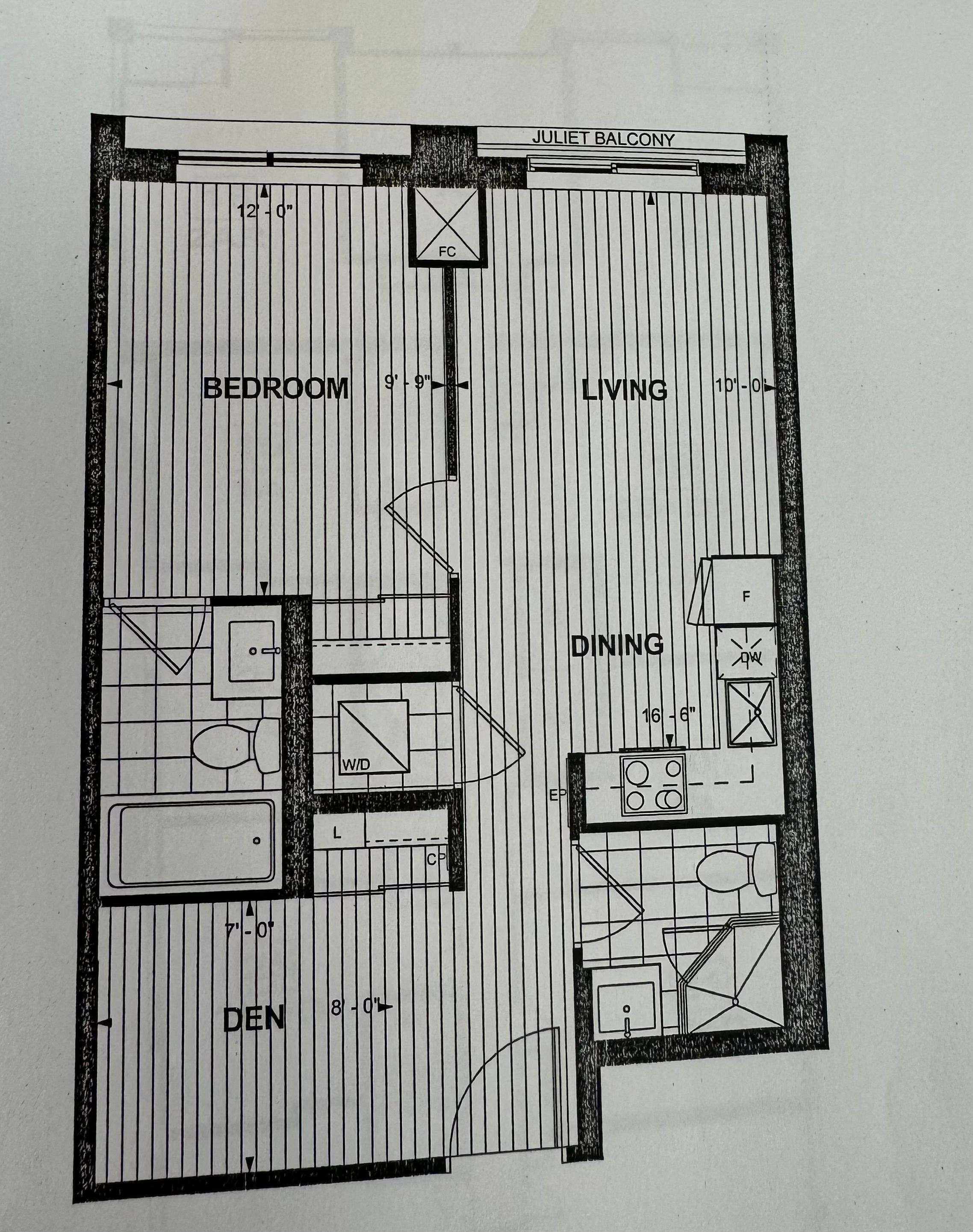 • Modern 1 Br + Den layout with 2 baths for added convenience.