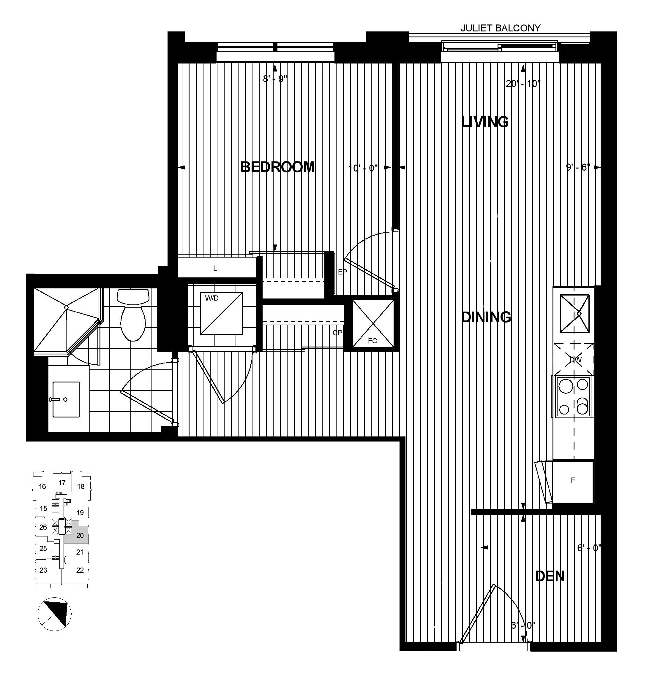 • Den area suitable for a workspace or small guest bed.