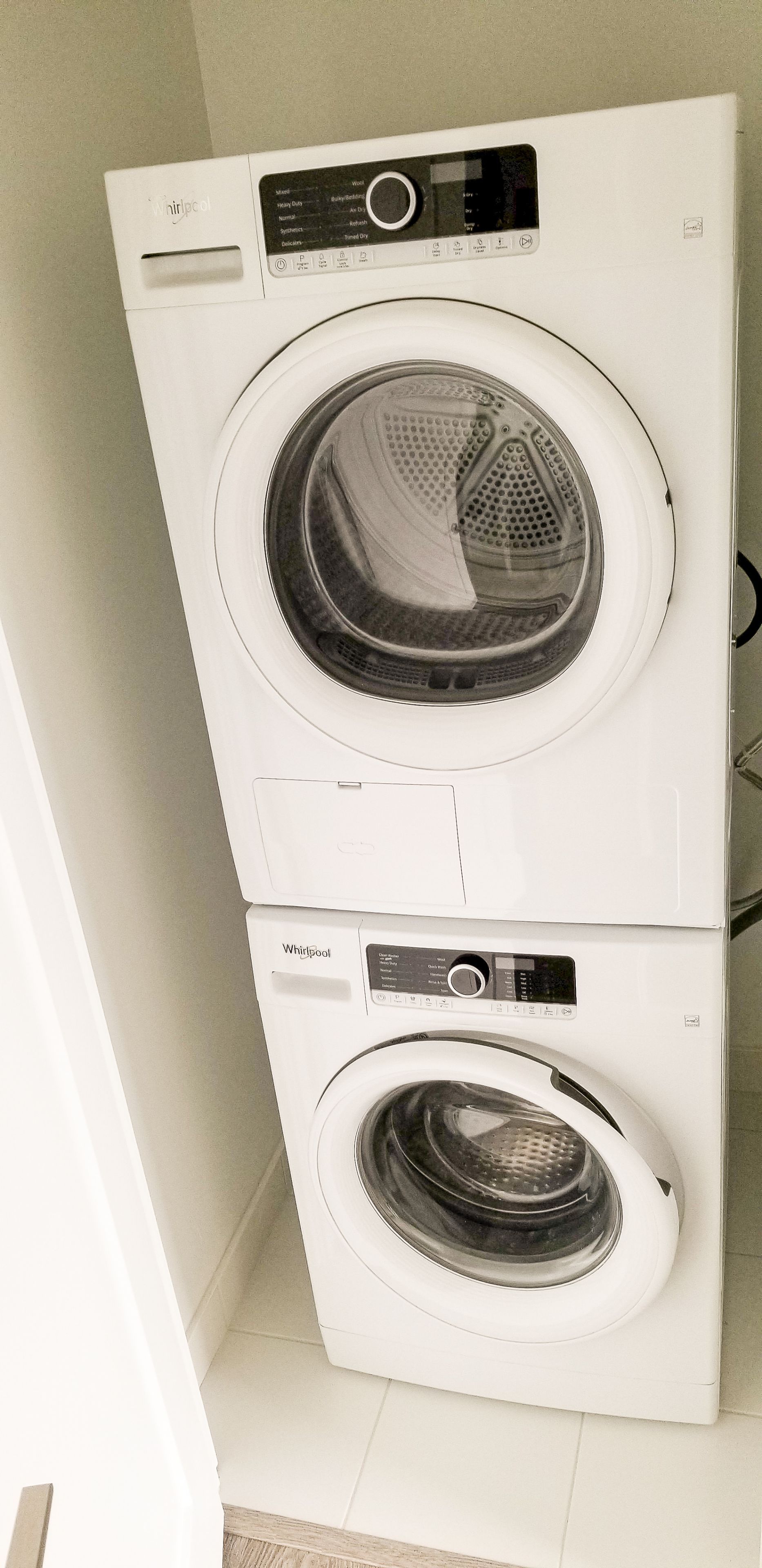 • Kitchen includes built-in stainless steel appliances for convenience.
