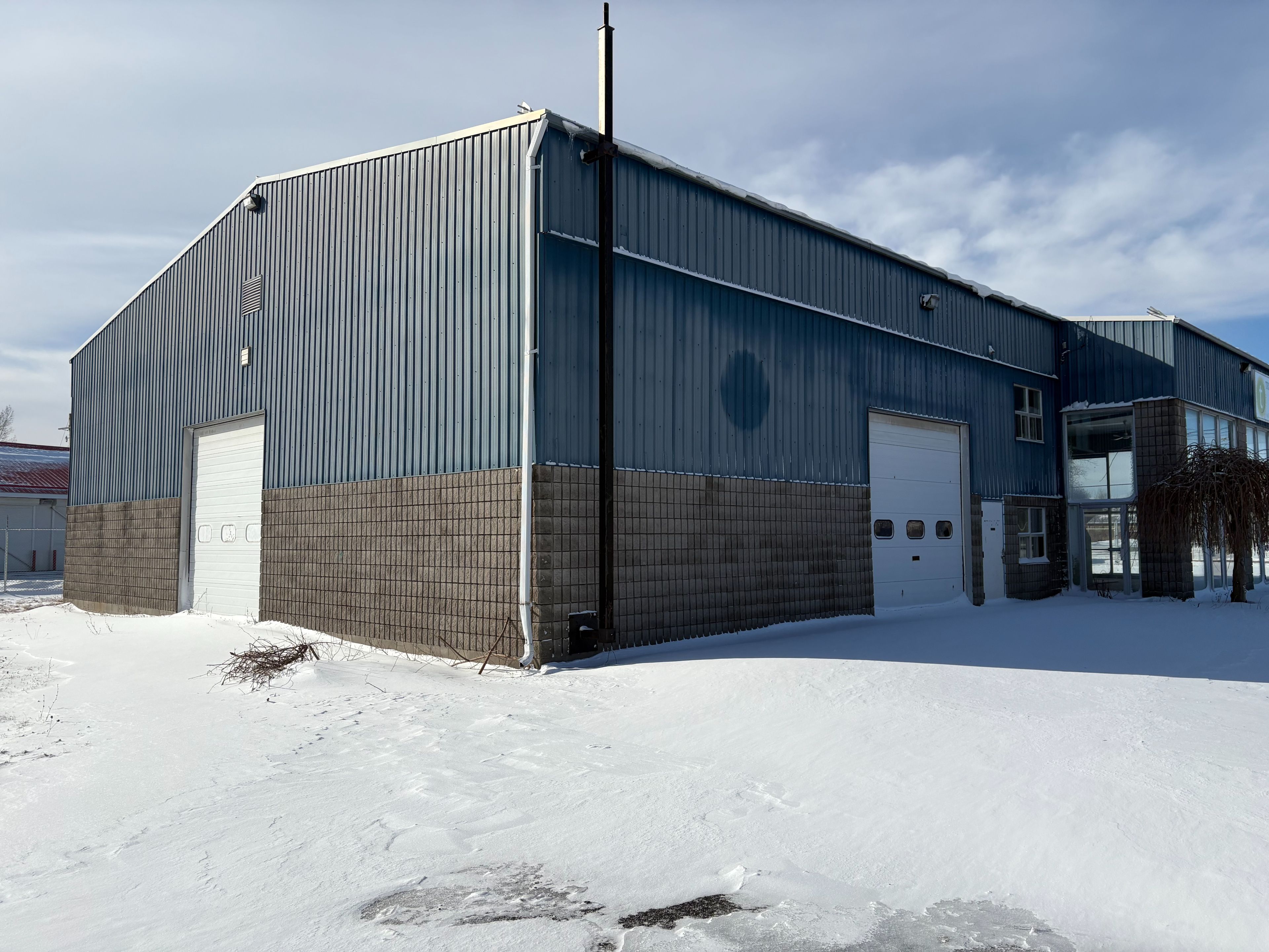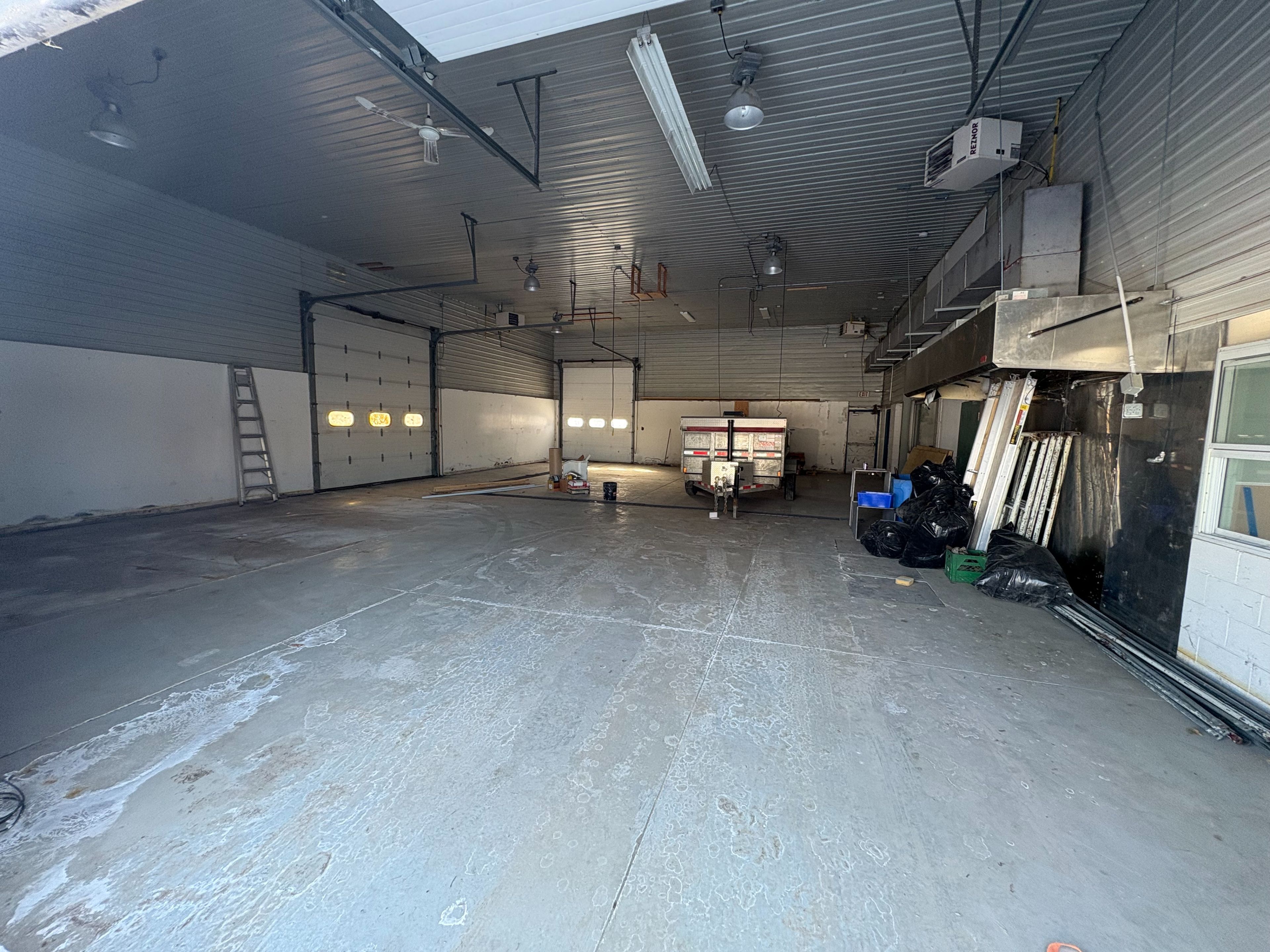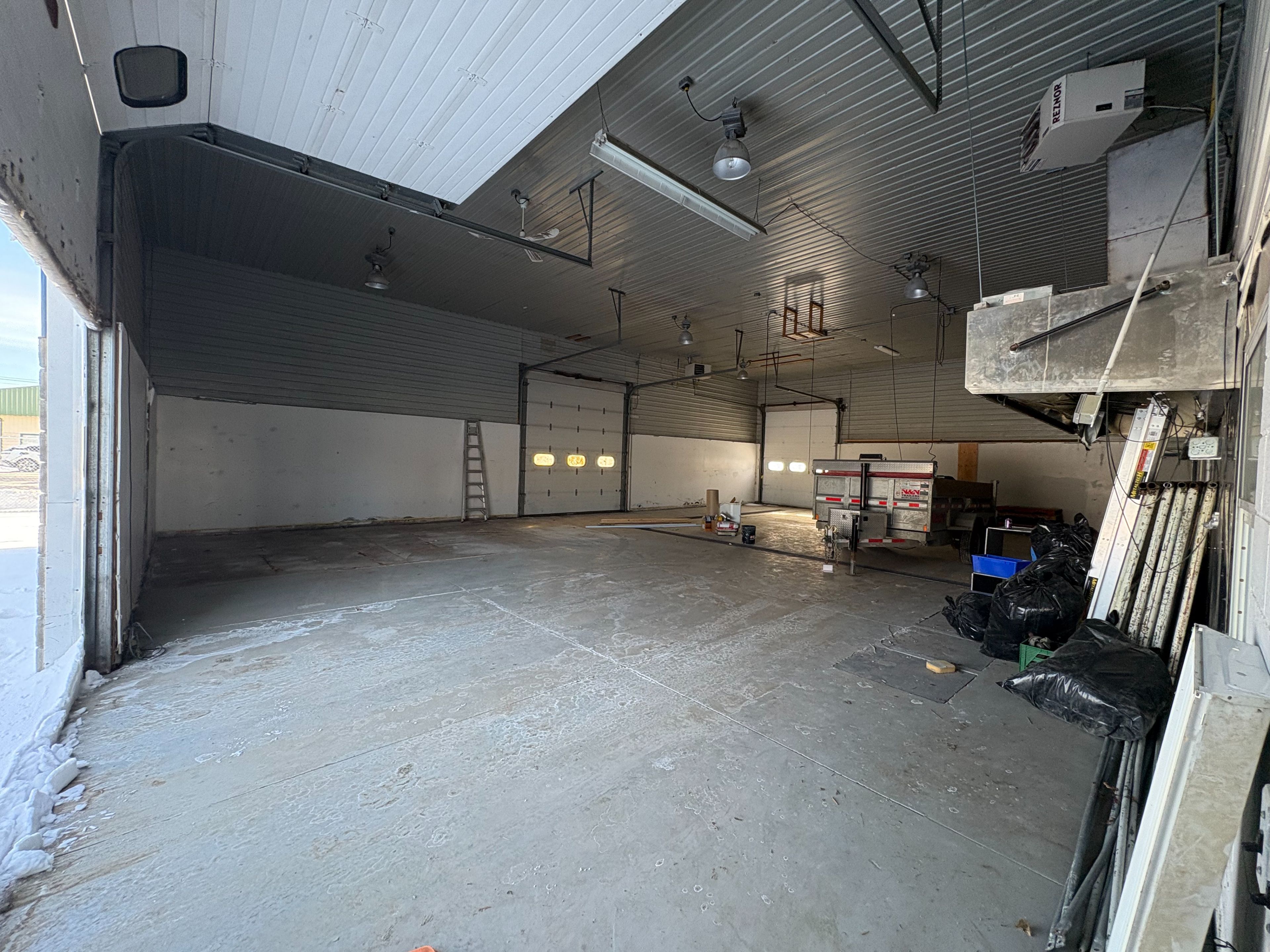 Climate-controlled contractor garage for lease comprising approximately 2,400 sq ft. The space features three large bay doors and two overhead unit heaters, making it well suited for contractors and similar commercial uses. Options are available to add a bathroom, as well as outdoor storage using shipping containers. Heat and hydro are included in the rent. Flexible short or long-term lease terms are available. County acrobatics operates in the adjacent unit, making this space well suited for a complementary business.