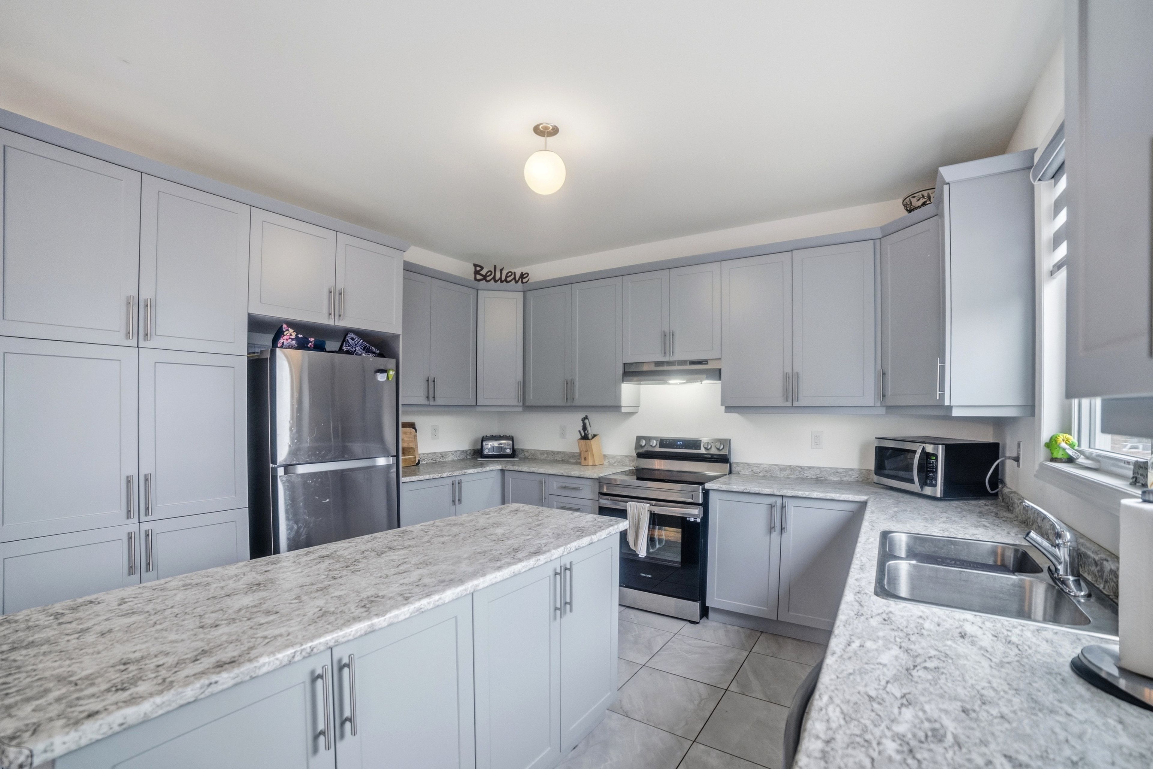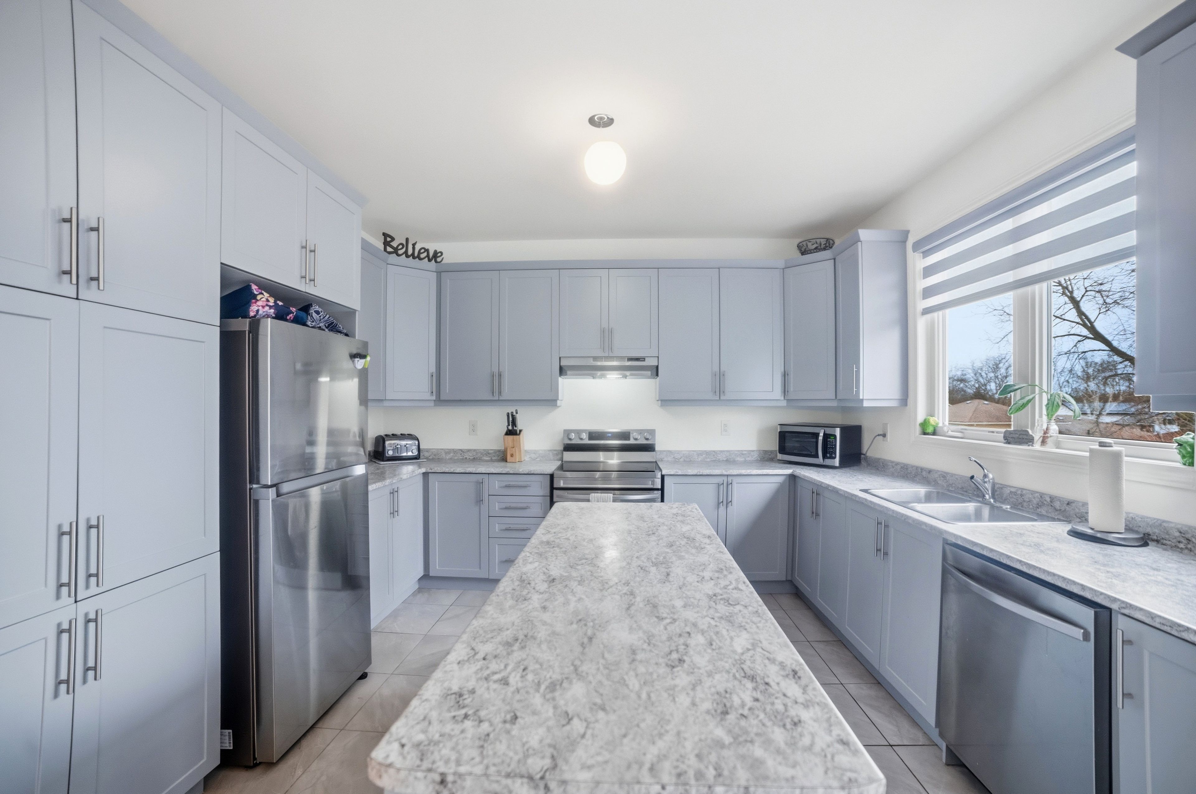 • Open-concept main floor with a stylish kitchen and large island.