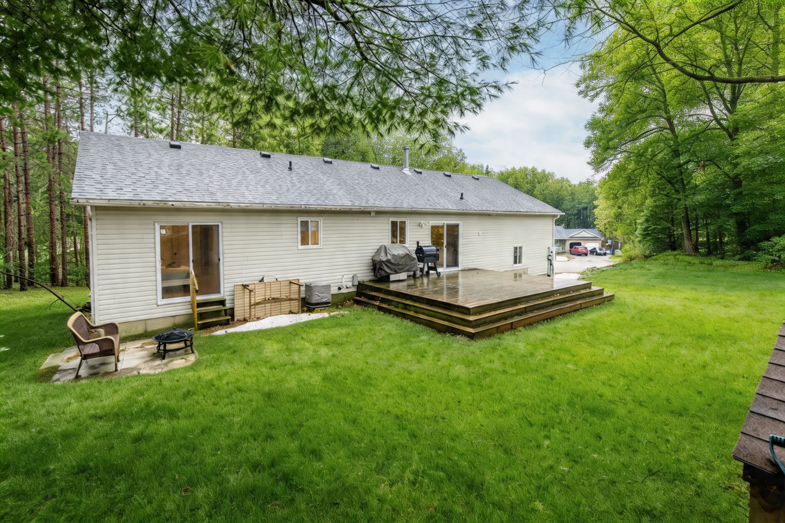 Welcome to 9 monica road, set in the highly sought-after community of sugarbush, where lifestyle meets nature. Located on a quiet dead end street and surrounded by mature trees and scenic beauty, this spacious 5-bedroom, 3-bathroom home is the perfect fit for a growing family. Set on a spacious lot, enjoy coffee on the front porch, and a 2 car garage with separate entrance. Inside this carpet free home, you'll find a bright and inviting layout that has been recently updated throughout, featuring fresh paint, new kitchen floors, new hardware, and all new lighting. 3 main floor bedrooms, including the primary with ensuite bathroom. The home offers multiple walkouts leading to your private, treed backyard, creating a seamless connection between indoor living and the peaceful natural setting. A cozy wood-burning fireplace adds warmth and charm, perfect for relaxing after a day outdoors. With a finished lower level, there is excellent potential for an in-law suite or multi-generational living with 2 bedrooms, family room and a newly renovated bathroom. Located just minutes to golf courses, skiing, trails, and all that horseshoe valley has to offer, this is a rare opportunity to own a home that truly captures the essence of the sugarbush lifestyle. New furnace in 2023, roof replaced in 2019 decks built in 2016.