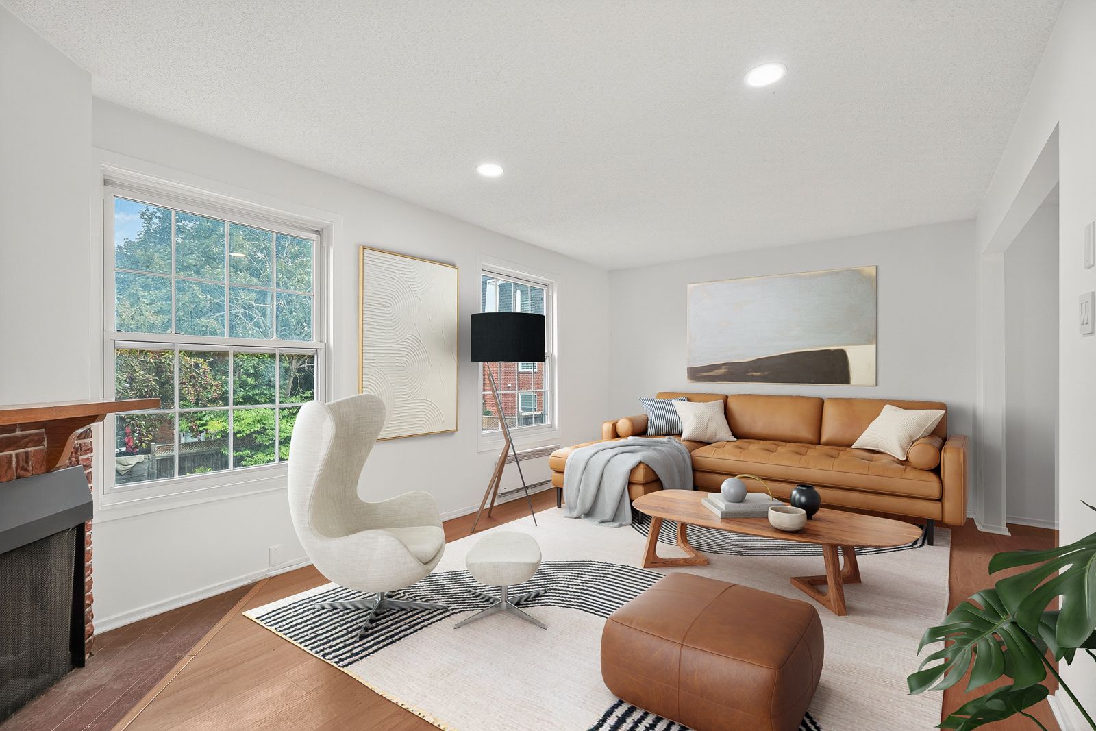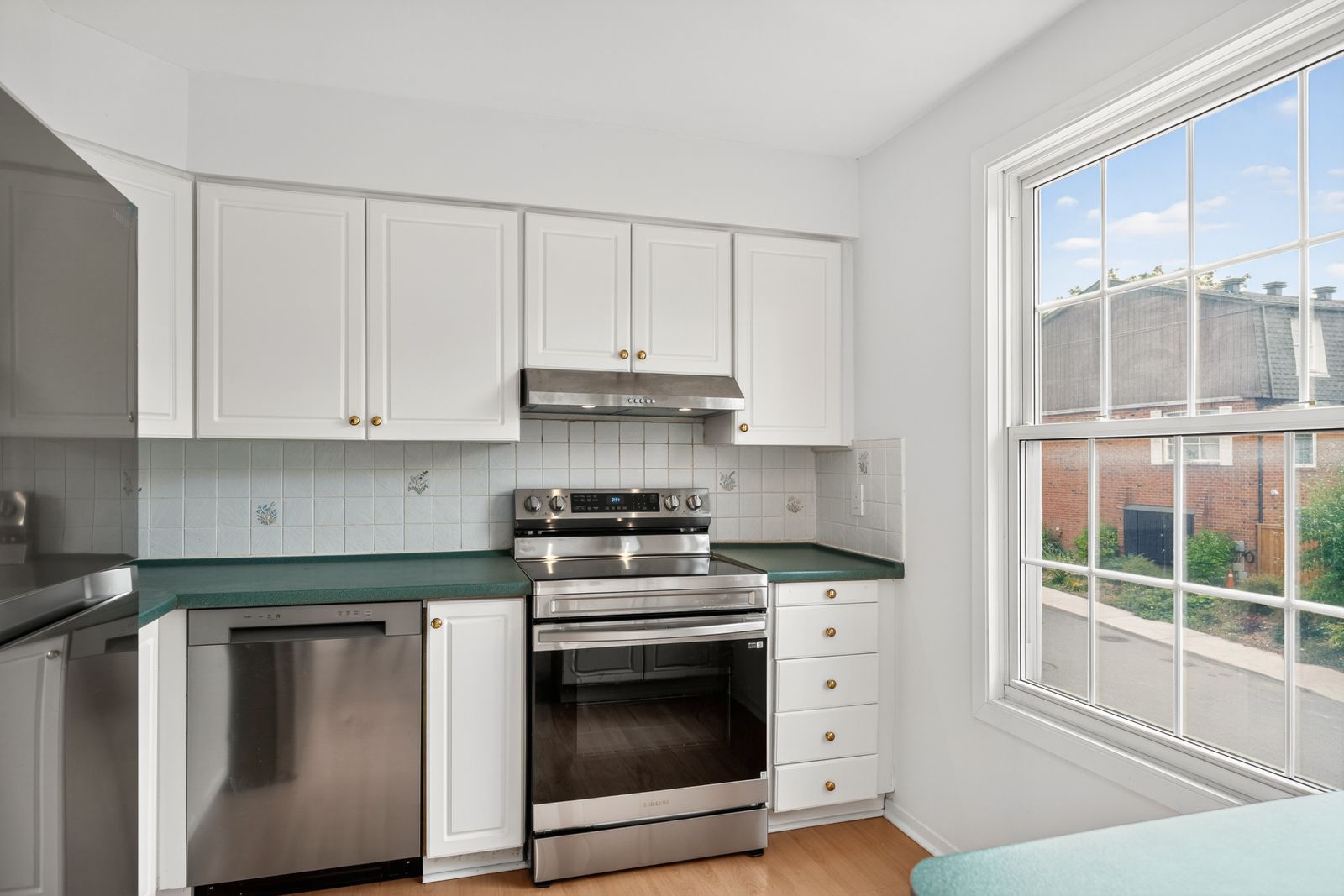 • Sun-filled living/dining area with large west-facing windows invites natural light.