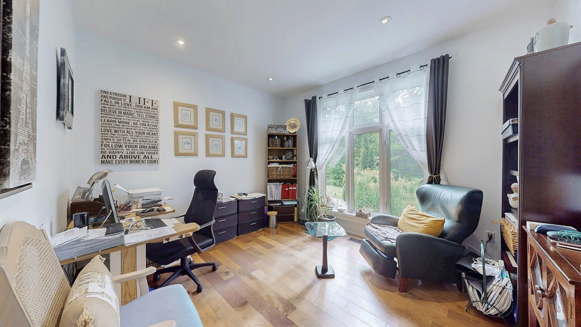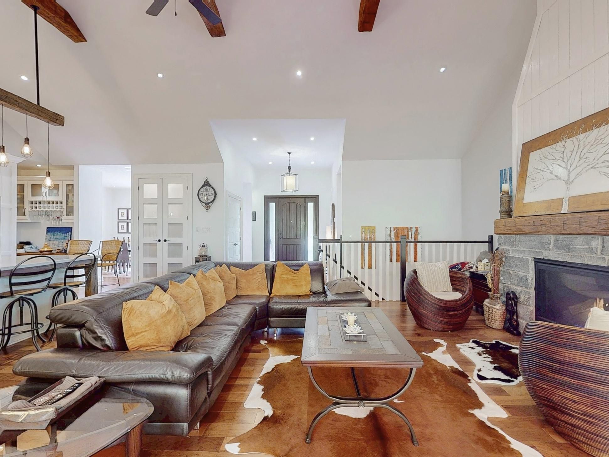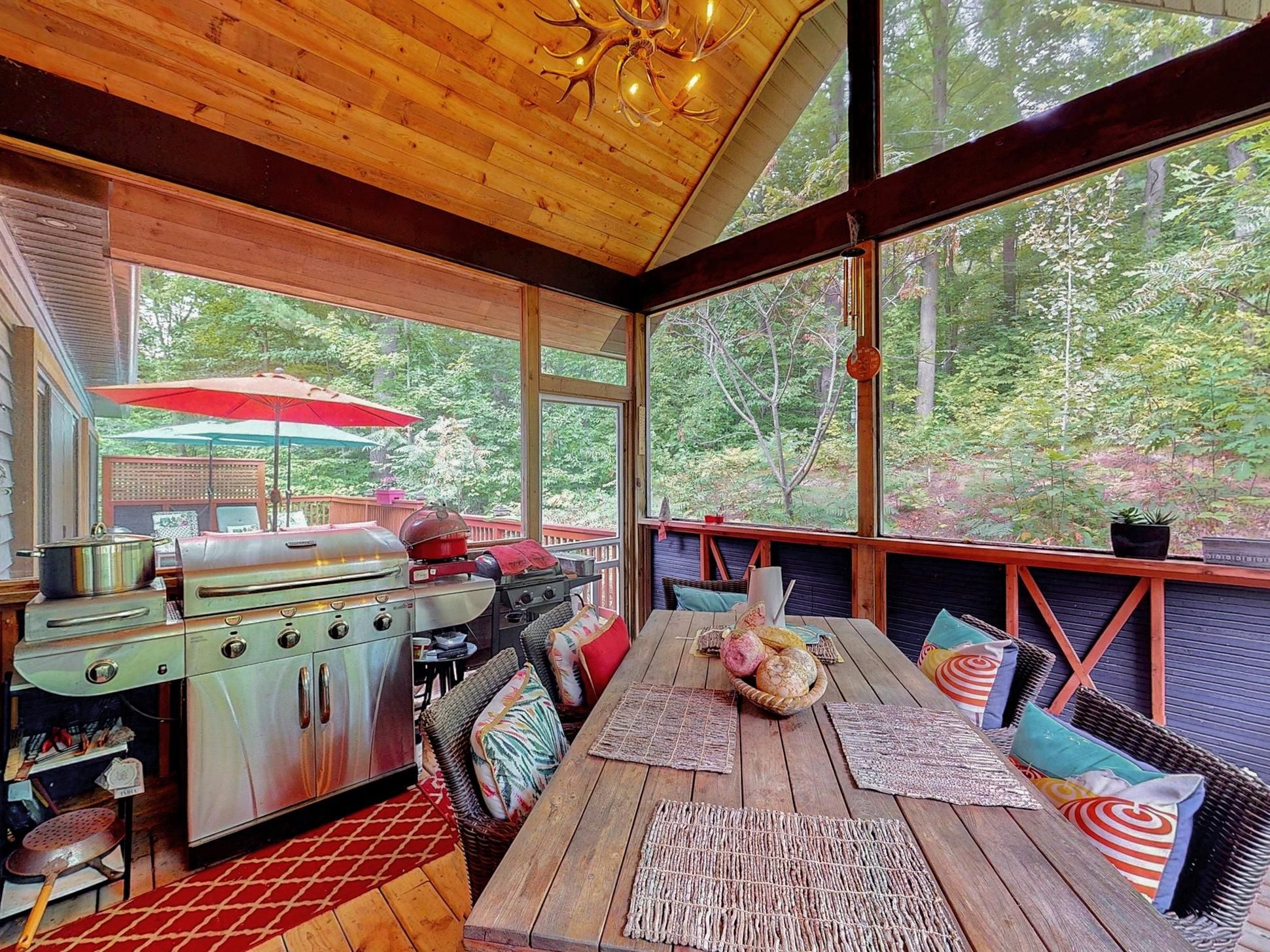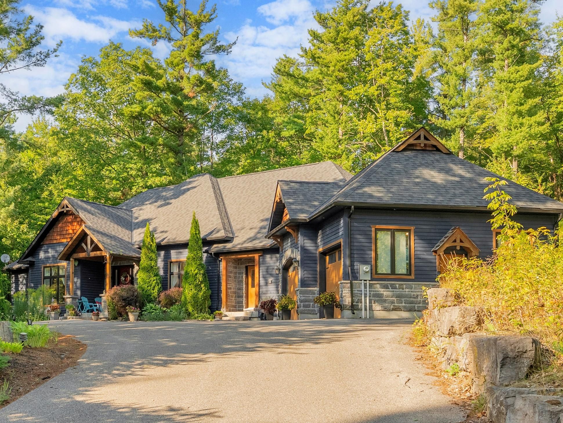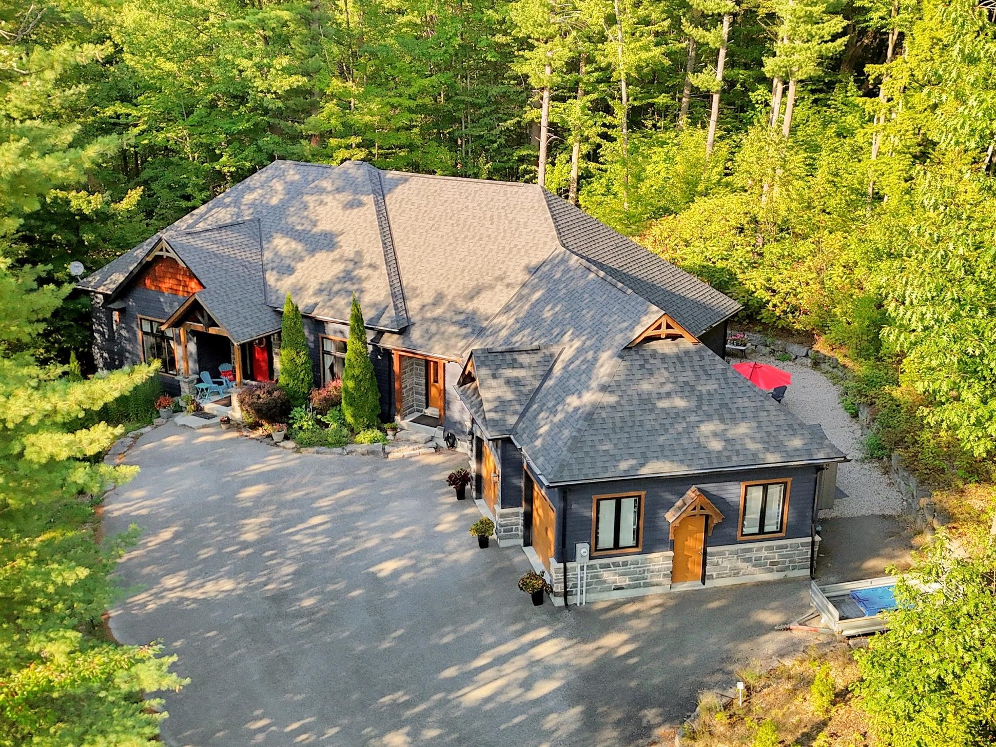 For nature lovers alike, this beautiful home is a definite dream come true 4492sq ft. Situated in a highly sought-after estate community rare to come to market, this is more than just a home, it is a lifestyle. Step inside and you will be welcomed by gorgeous forest views and a practical layout that can accommodate a multitude of needs. The main floor boasts three generous bedrooms spread across two separate wings, including a stunning primary suite with expansive views onto the deck and forest out back. Have your morning coffee or practice yoga while being immersed in nature. Enjoy a bonus room also found on the main level, which can be used as an office, library, nursery, or additional sleeping accommodation. With a vaulted ceiling in the main living area, a stunning ceiling-height wood-clad gas fireplace, and reclaimed century-old wood beams, this space exudes both character and history. Cook up a storm in your gourmet kitchen and choose between dining in your elegantly appointed dining room or in the fully screened-in muskoka room with vaulted ceiling and plenty of room for barbeques and gatherings. Behind the house, you will find "escape to the country" style gravel landscaping where you can grow your garden, pick wild raspberries and blackberries right from your own backyard, or just relax and enjoy the nature that surrounds you. This home also features a generously sized fully finished walk-out basement perfect for all your entertaining needs, including a large guest suite and another full bath, home gym with infrared sauna, and outside access where you can roast marshmallows, or simply enjoy the outdoors as you please. And don't forget the bonus of having so much storage space! Conveniently located just minutes from popular ski resorts: horseshoe valley, mt st. Luis moonstone and the famous vetta nordic spa. If you are looking for a bespoke home with tranquility, generous accommodations, and modern amenities all rolled into one, this house is must see.