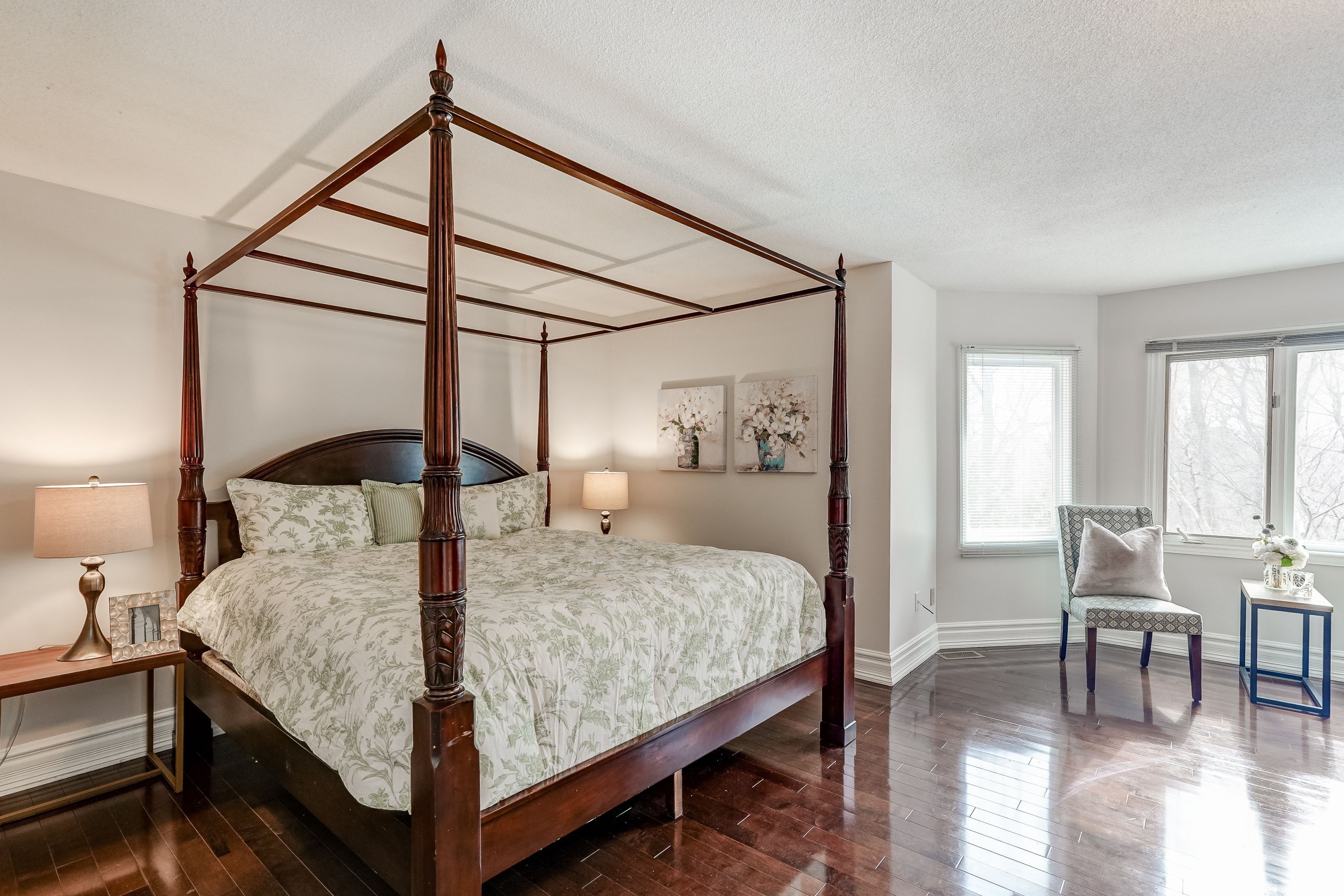 • Private backyard backing onto peaceful wooded trails for outdoor enjoyment.
