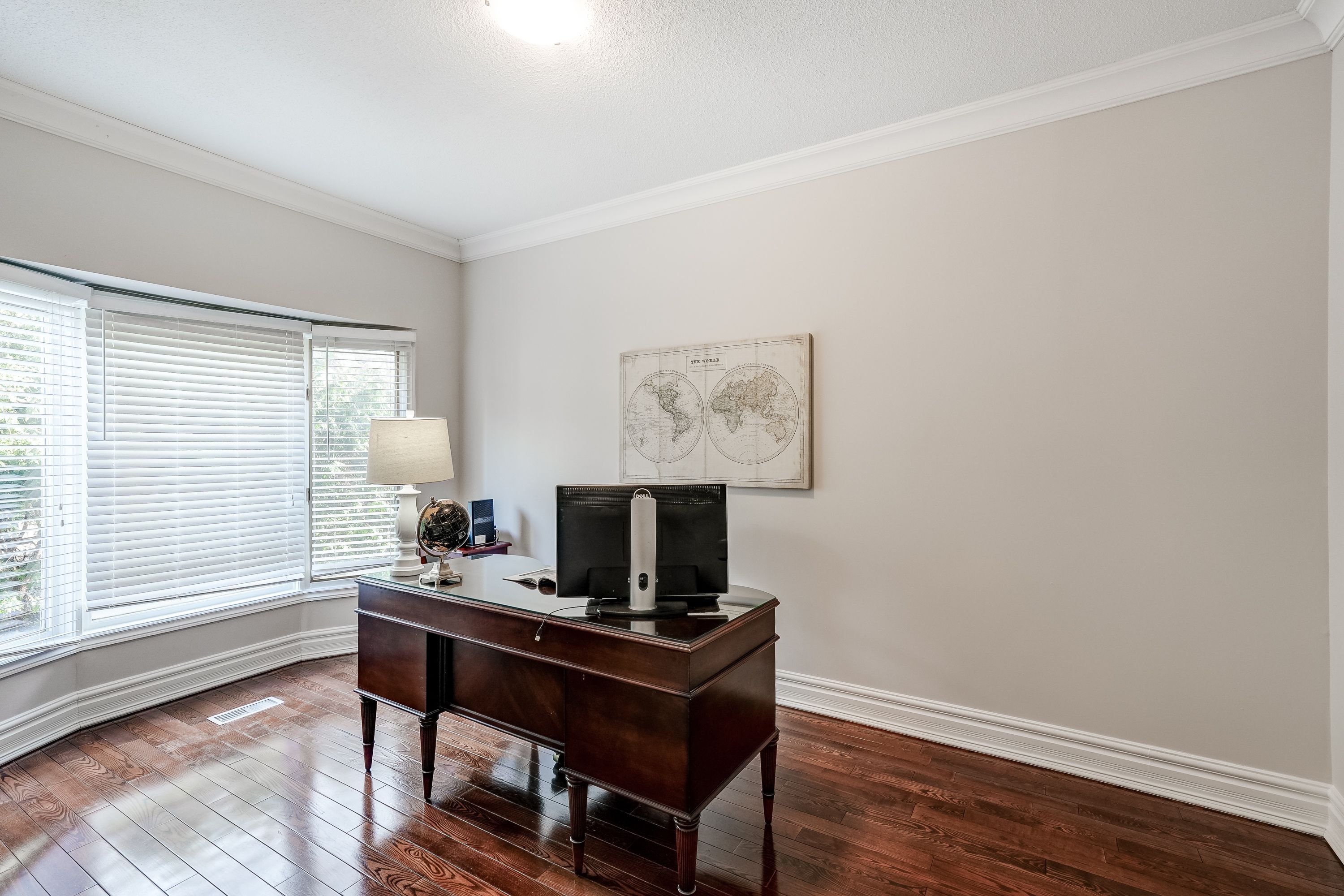 • Updated interior with hardwood flooring and elegant crown molding throughout.