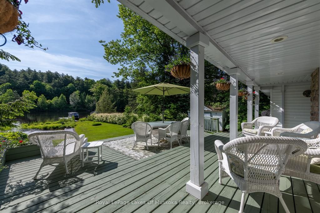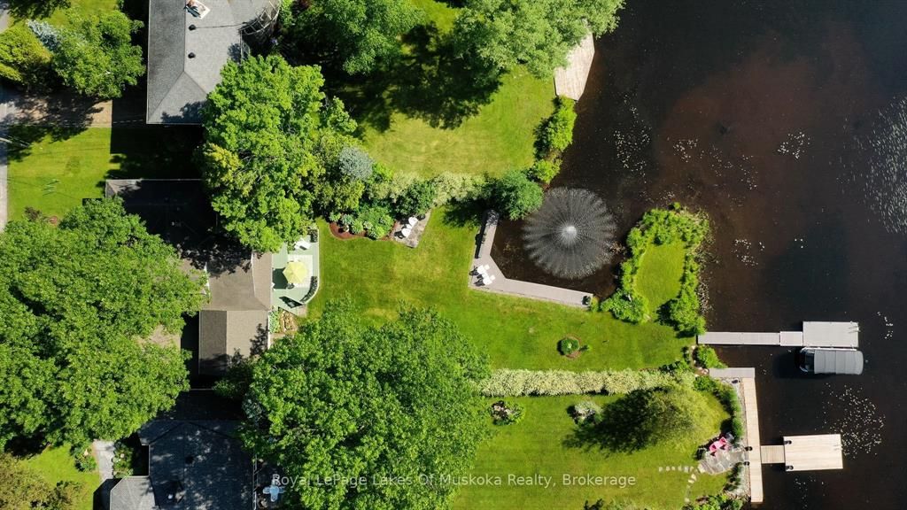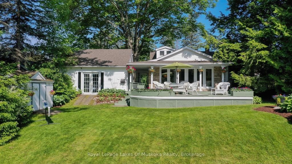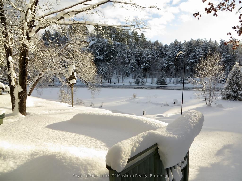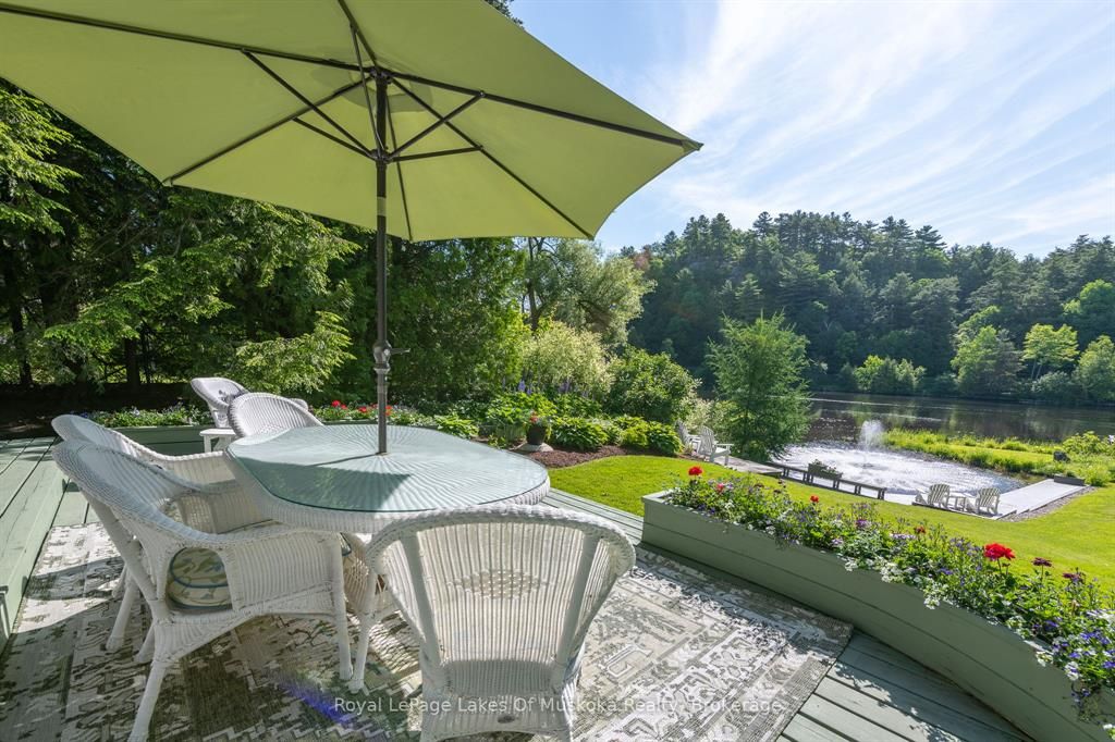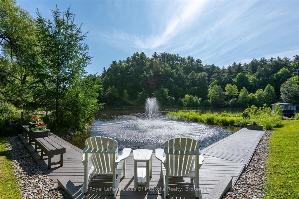 Complete privacy featured on one of the best lots on muskoka river on one of the quietest in town streetsin huntsville. The gently sloped thoughtfully and professionally landscaped property offers a private cove with a fabulous fountain and spectacular view of the lookout mountain and muskoka forest... You will forgetyou live only a couple of blocks to the vibrant downtown core. The lovely recreational residence is nestledback from the road and is a stand out from the street or the river. Beautiful 4 bedroom home has been abeloved family cottage for many years. The interior features the quintessential open concept primary roomswith vaulted ceilings and window wall overlooking your breathtaking property and riverfront. Living roomwith attractive gas fireplace, kitchen seating at counter, dining suitable for those who like to entertain,main level family or sitting room with views of your porch and gardens. Hardwood floors, front foyer witharched entry, bedrooms with corner windows to maximize natural light, are all thoughtful design featuresof this beautiful home. The 2nd level is an ideal office or kids room. Lower level features another brightbeautiful room currently used as a bedroom but can be a gym, office or whatever you may need. The doublecar garage has a rear door for lawn mower, kayaks, etc. The lot features a private cove with a high endcomposite walkway around it and an idyllic fountain in the middle. The dock is also composite and hasample space for your boat parking. There is a large patio on the riverside for dining and bbqing. Anothergranite sitting area is for thoughtful viewing of the panoramic views that you will want to take in with yourcoffee or glass of wine. The lot, the residence, and the views create a rare package that is difficult to find. This one of a kind opportunity includes some furnishings and could be available for you to enjoy.