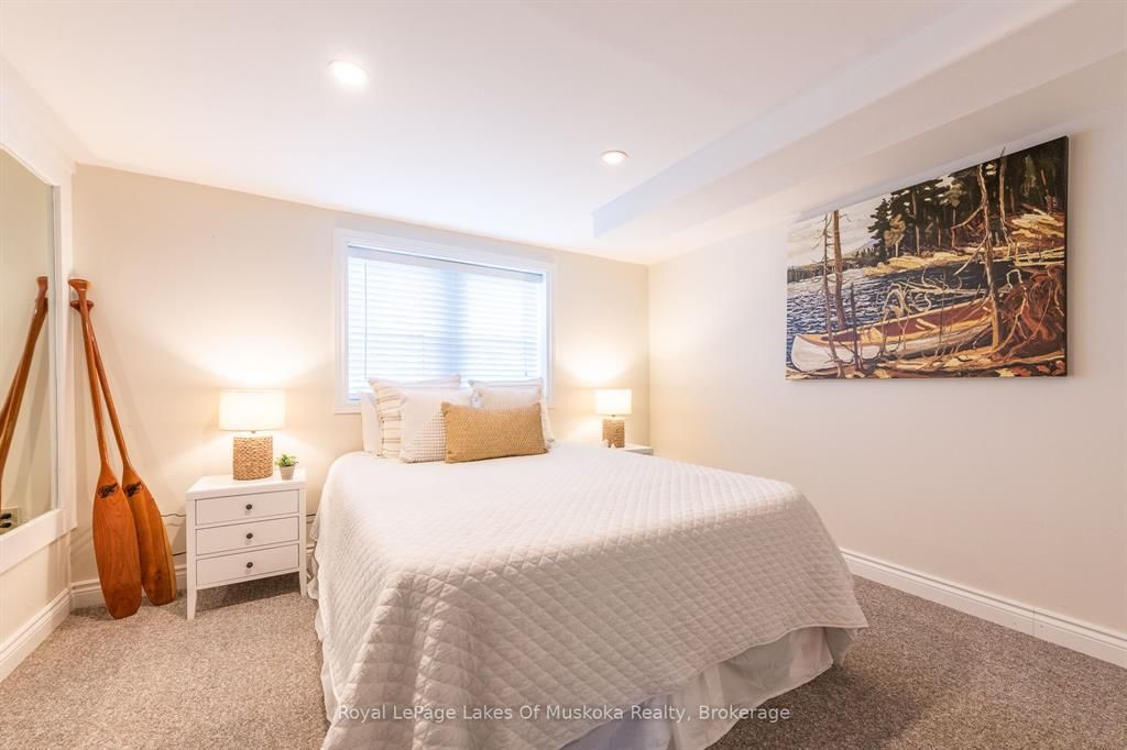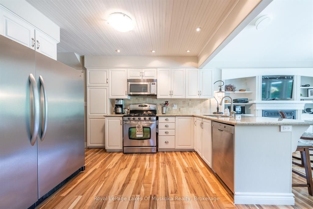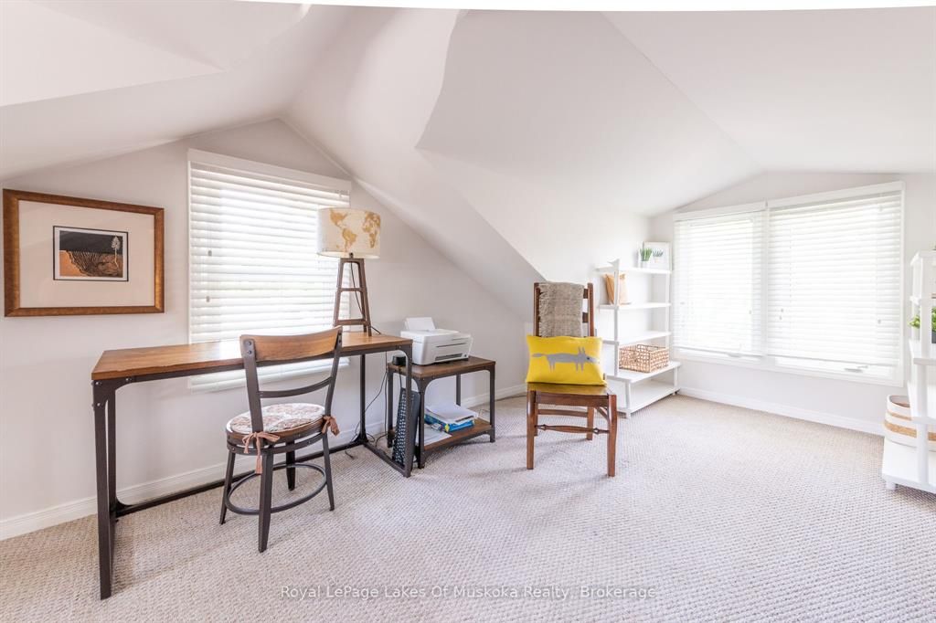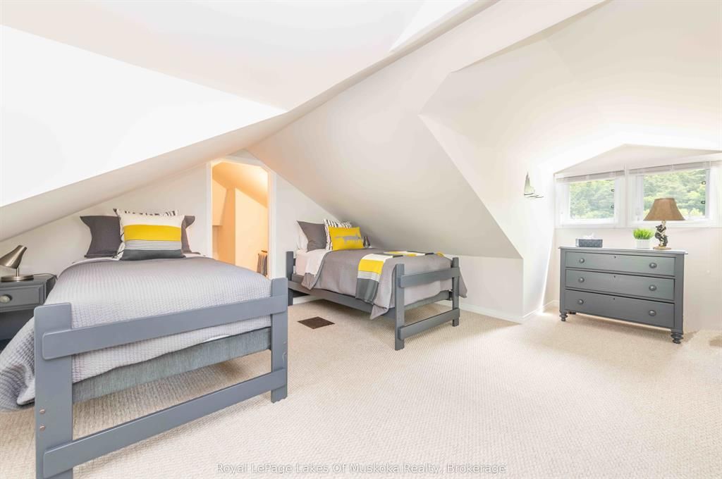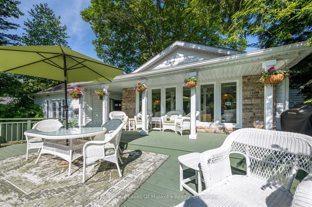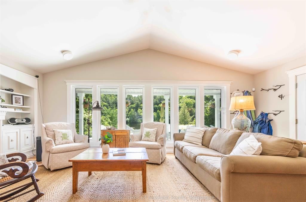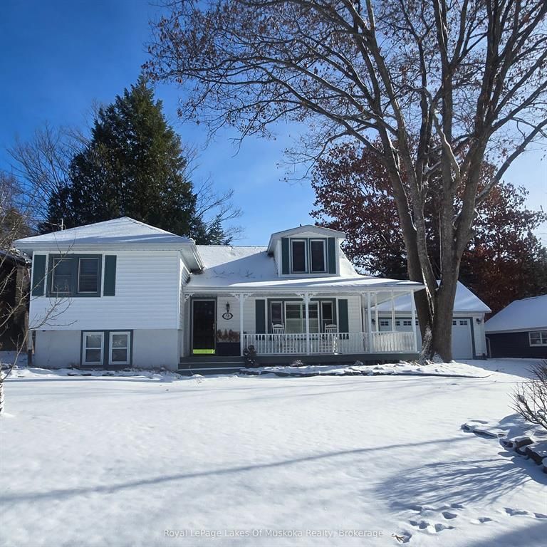 Complete privacy featured on one of the best lots on muskoka river on one of the quietest in town streetsin huntsville. The gently sloped thoughtfully and professionally landscaped property offers a private cove with a fabulous fountain and spectacular view of the lookout mountain and muskoka forest... You will forgetyou live only a couple of blocks to the vibrant downtown core. The lovely recreational residence is nestledback from the road and is a stand out from the street or the river. Beautiful 4 bedroom home has been abeloved family cottage for many years. The interior features the quintessential open concept primary roomswith vaulted ceilings and window wall overlooking your breathtaking property and riverfront. Living roomwith attractive gas fireplace, kitchen seating at counter, dining suitable for those who like to entertain,main level family or sitting room with views of your porch and gardens. Hardwood floors, front foyer witharched entry, bedrooms with corner windows to maximize natural light, are all thoughtful design featuresof this beautiful home. The 2nd level is an ideal office or kids room. Lower level features another brightbeautiful room currently used as a bedroom but can be a gym, office or whatever you may need. The doublecar garage has a rear door for lawn mower, kayaks, etc. The lot features a private cove with a high endcomposite walkway around it and an idyllic fountain in the middle. The dock is also composite and hasample space for your boat parking. There is a large patio on the riverside for dining and bbqing. Anothergranite sitting area is for thoughtful viewing of the panoramic views that you will want to take in with yourcoffee or glass of wine. The lot, the residence, and the views create a rare package that is difficult to find. This one of a kind opportunity includes some furnishings and could be available for you to enjoy.
