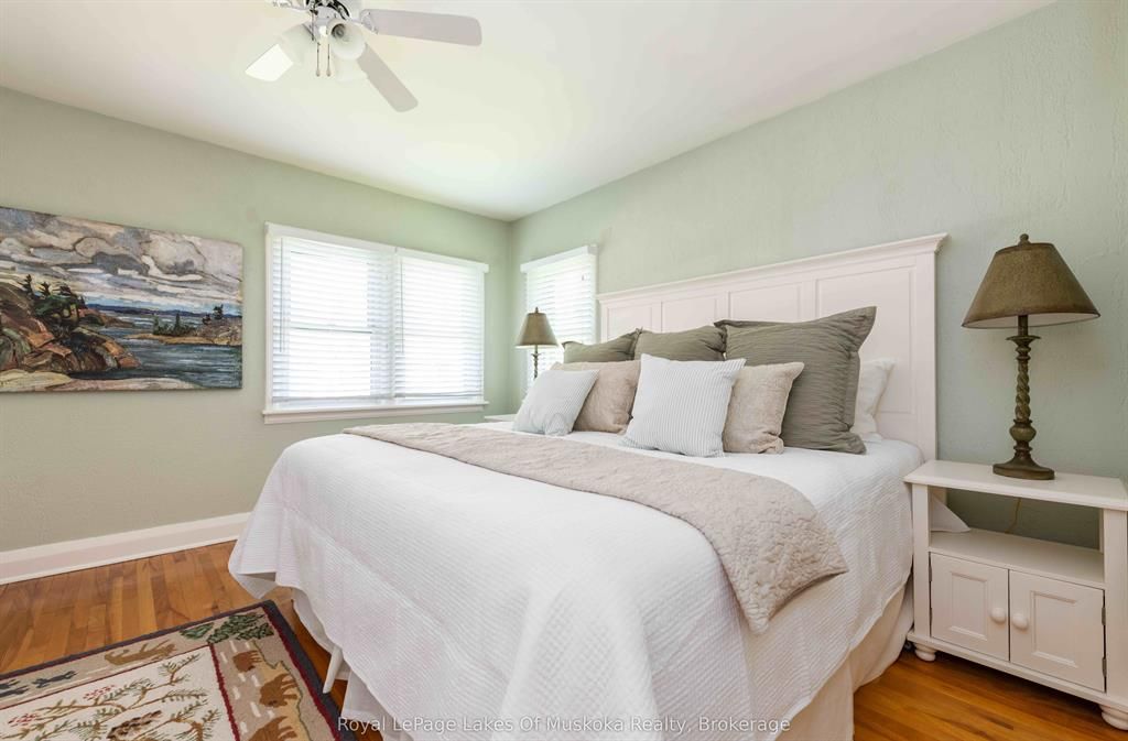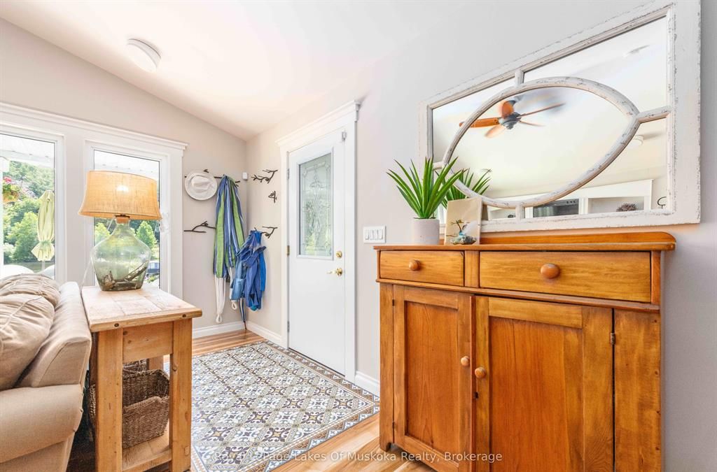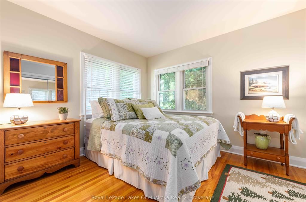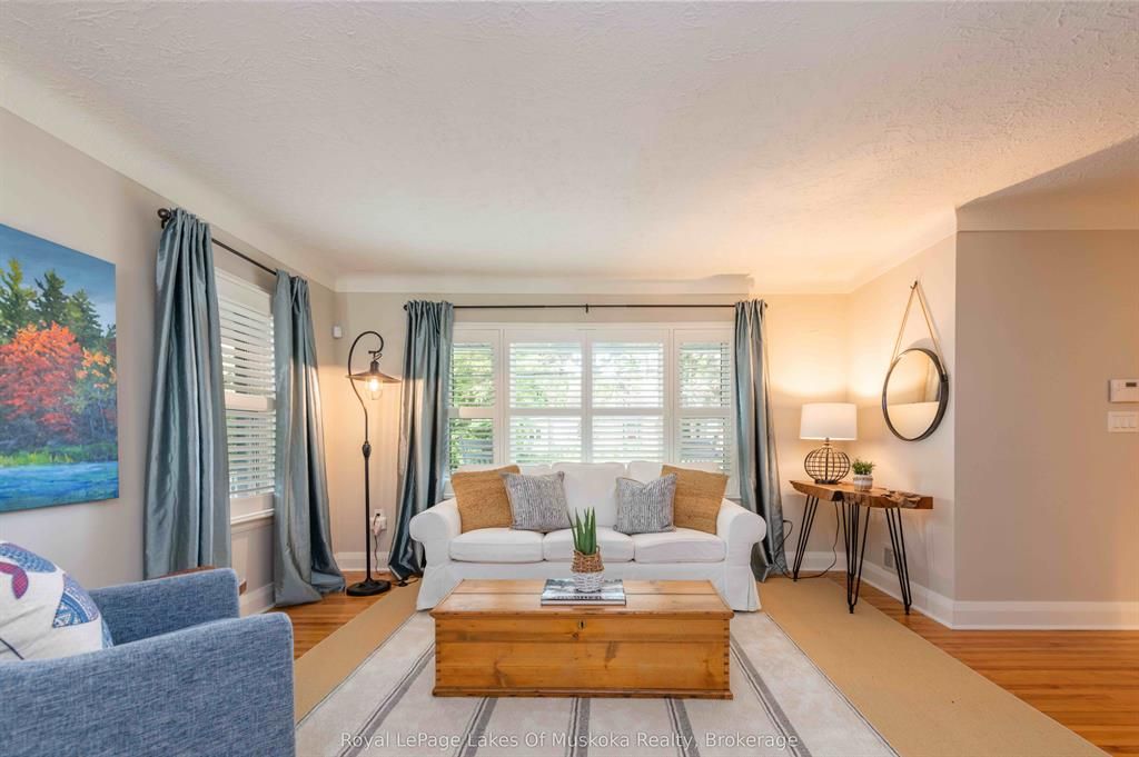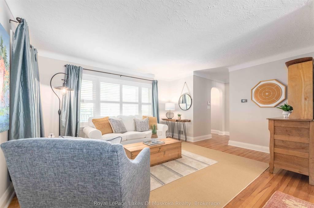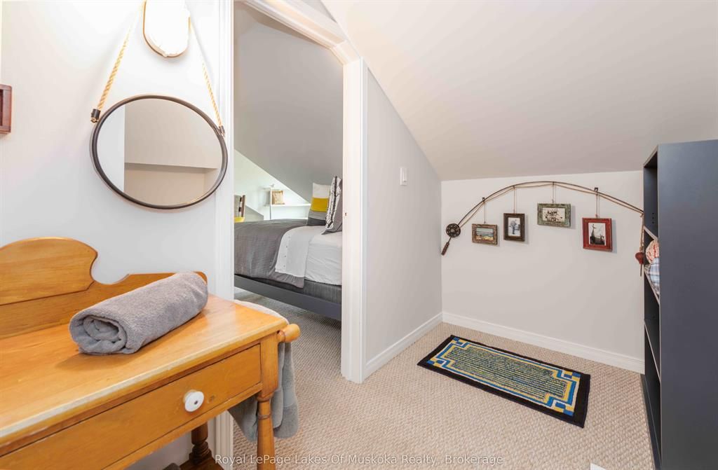 Complete privacy featured on one of the best lots on muskoka river on one of the quietest in town streetsin huntsville. The gently sloped thoughtfully and professionally landscaped property offers a private cove with a fabulous fountain and spectacular view of the lookout mountain and muskoka forest... You will forgetyou live only a couple of blocks to the vibrant downtown core. The lovely recreational residence is nestledback from the road and is a stand out from the street or the river. Beautiful 4 bedroom home has been abeloved family cottage for many years. The interior features the quintessential open concept primary roomswith vaulted ceilings and window wall overlooking your breathtaking property and riverfront. Living roomwith attractive gas fireplace, kitchen seating at counter, dining suitable for those who like to entertain,main level family or sitting room with views of your porch and gardens. Hardwood floors, front foyer witharched entry, bedrooms with corner windows to maximize natural light, are all thoughtful design featuresof this beautiful home. The 2nd level is an ideal office or kids room. Lower level features another brightbeautiful room currently used as a bedroom but can be a gym, office or whatever you may need. The doublecar garage has a rear door for lawn mower, kayaks, etc. The lot features a private cove with a high endcomposite walkway around it and an idyllic fountain in the middle. The dock is also composite and hasample space for your boat parking. There is a large patio on the riverside for dining and bbqing. Anothergranite sitting area is for thoughtful viewing of the panoramic views that you will want to take in with yourcoffee or glass of wine. The lot, the residence, and the views create a rare package that is difficult to find. This one of a kind opportunity includes some furnishings and could be available for you to enjoy.