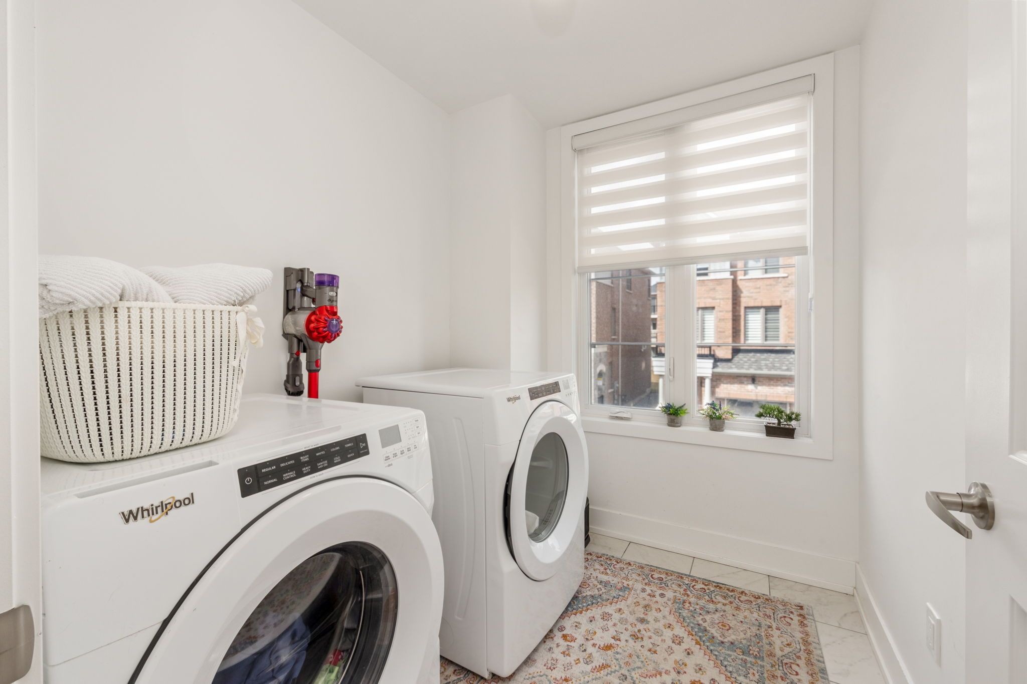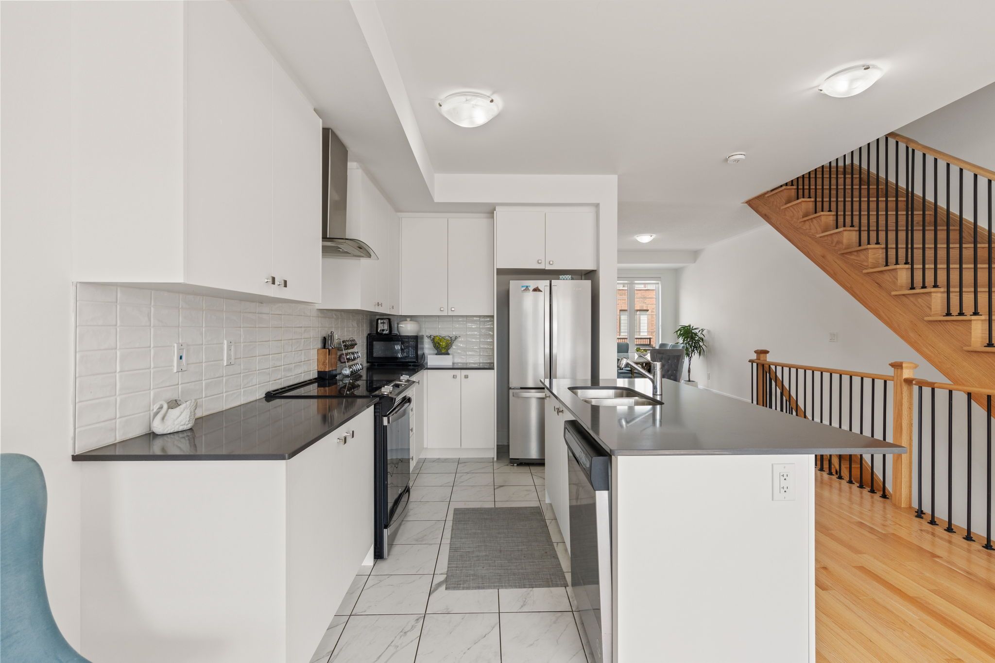 • Stylish kitchen with stainless steel appliances and quartz countertops.