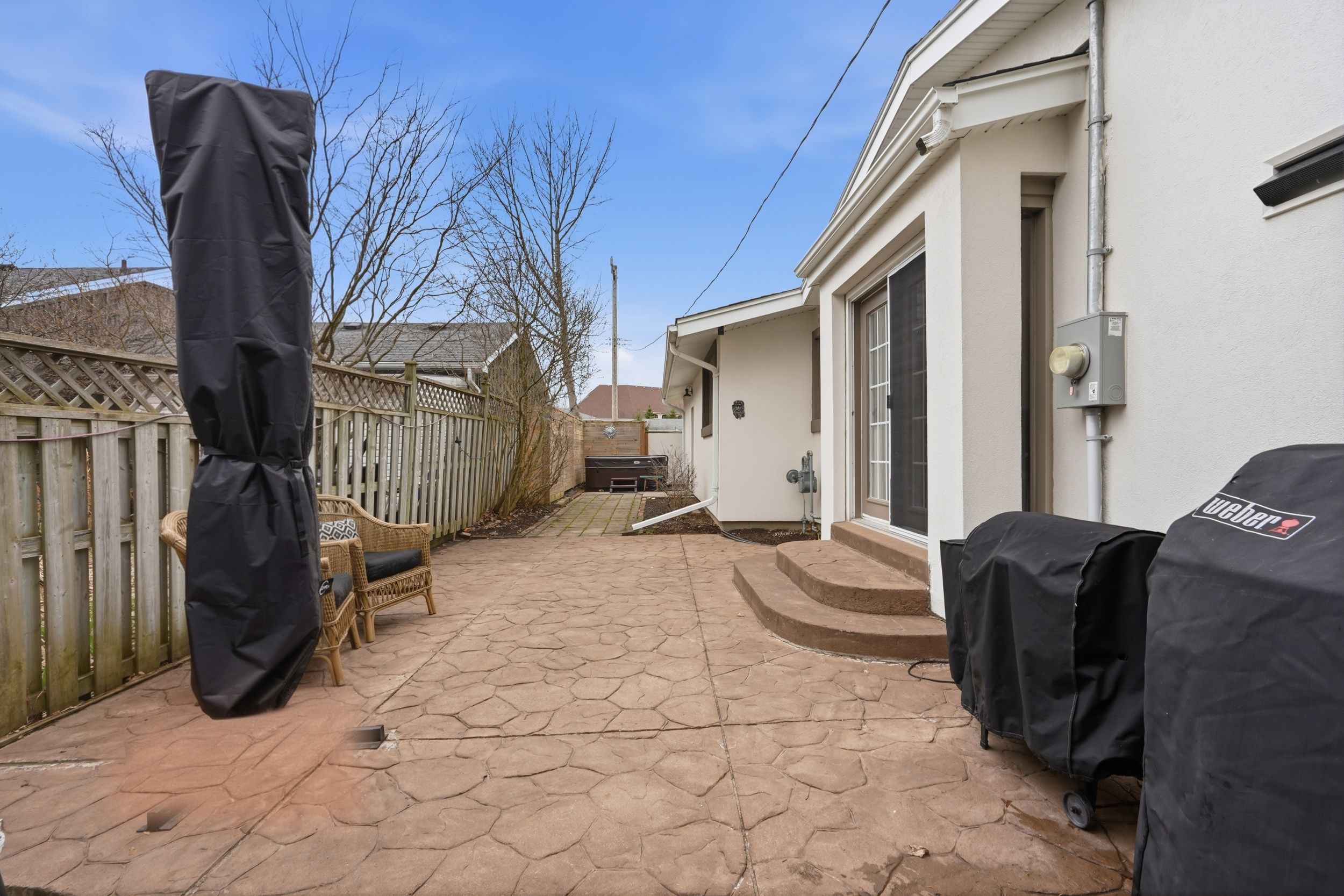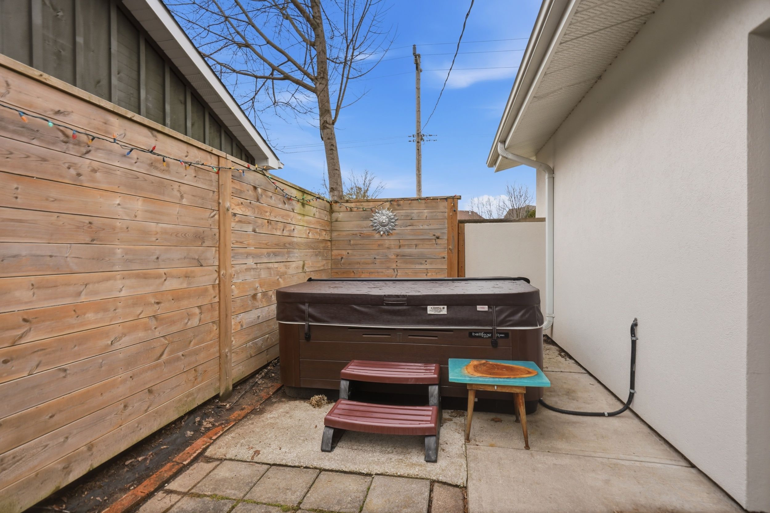 • Fully fenced yard with hot tub for outdoor relaxation.