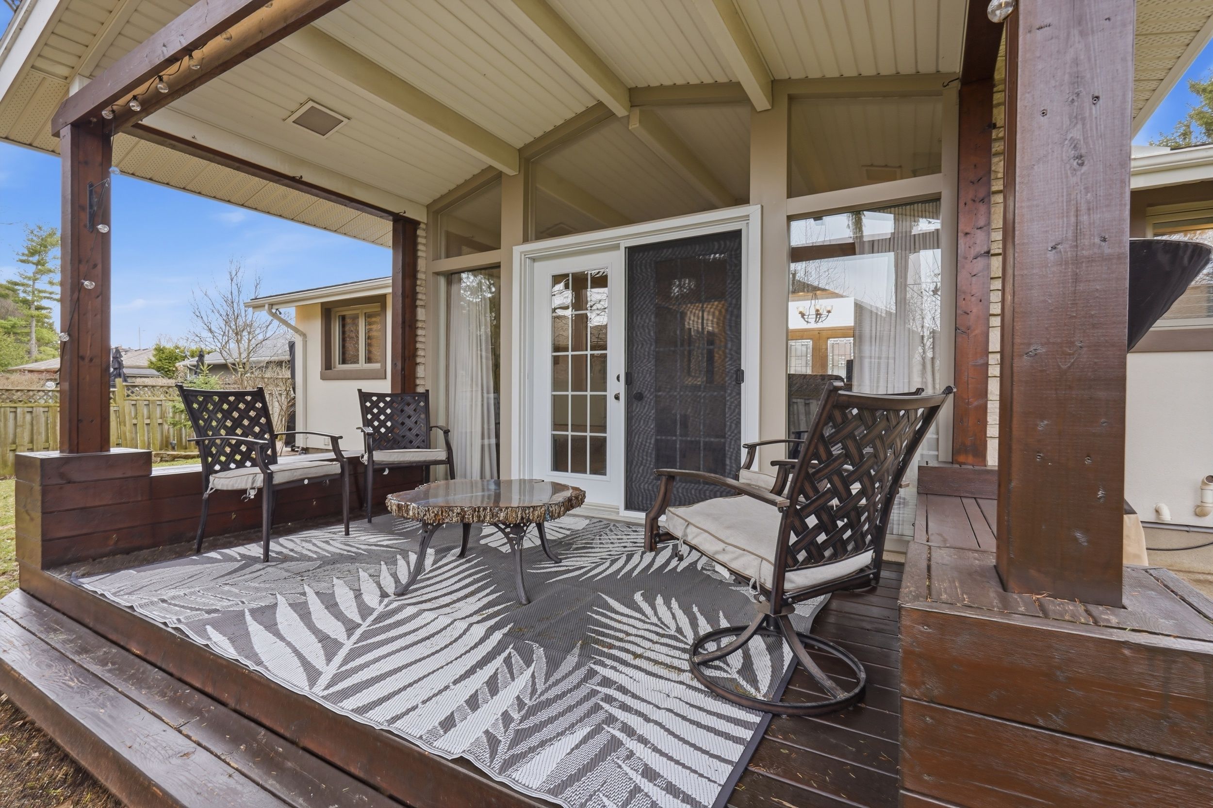 • Covered porch for enjoying coffee or cocktails in any weather.