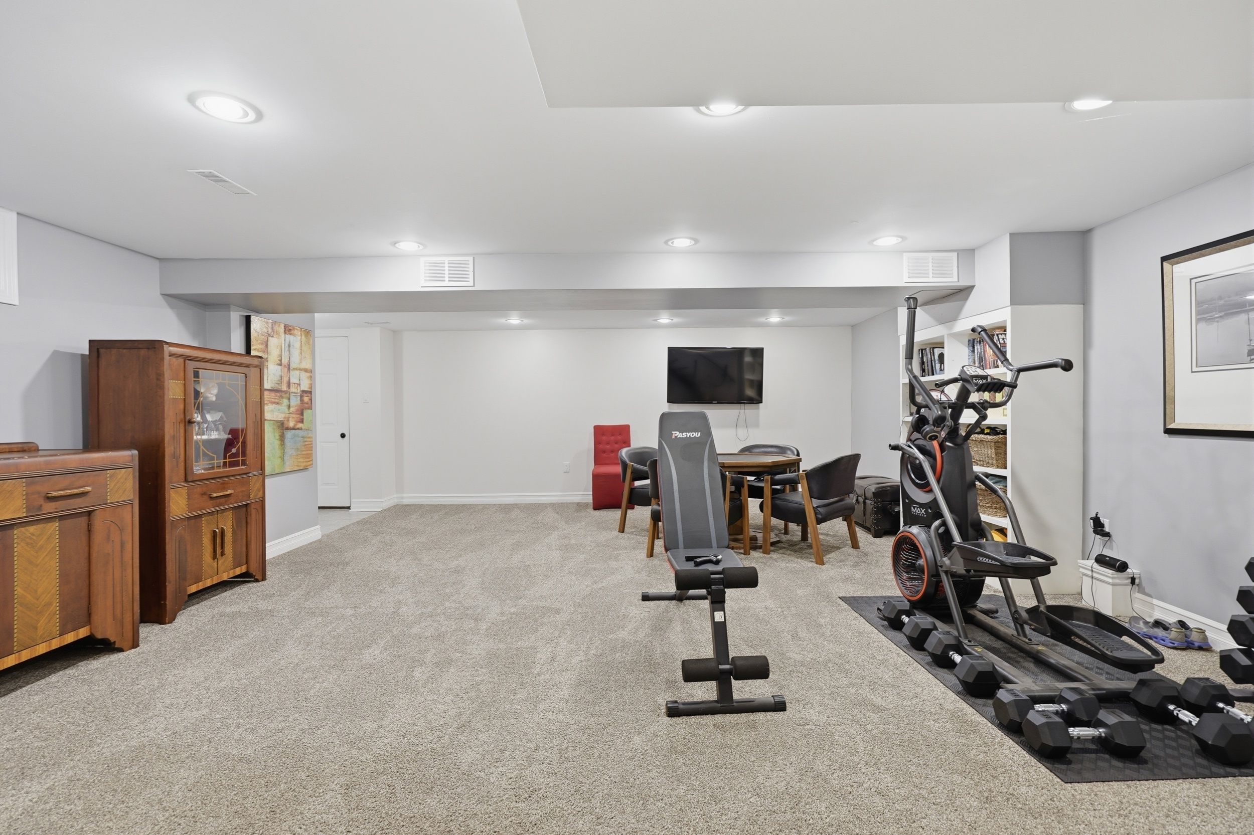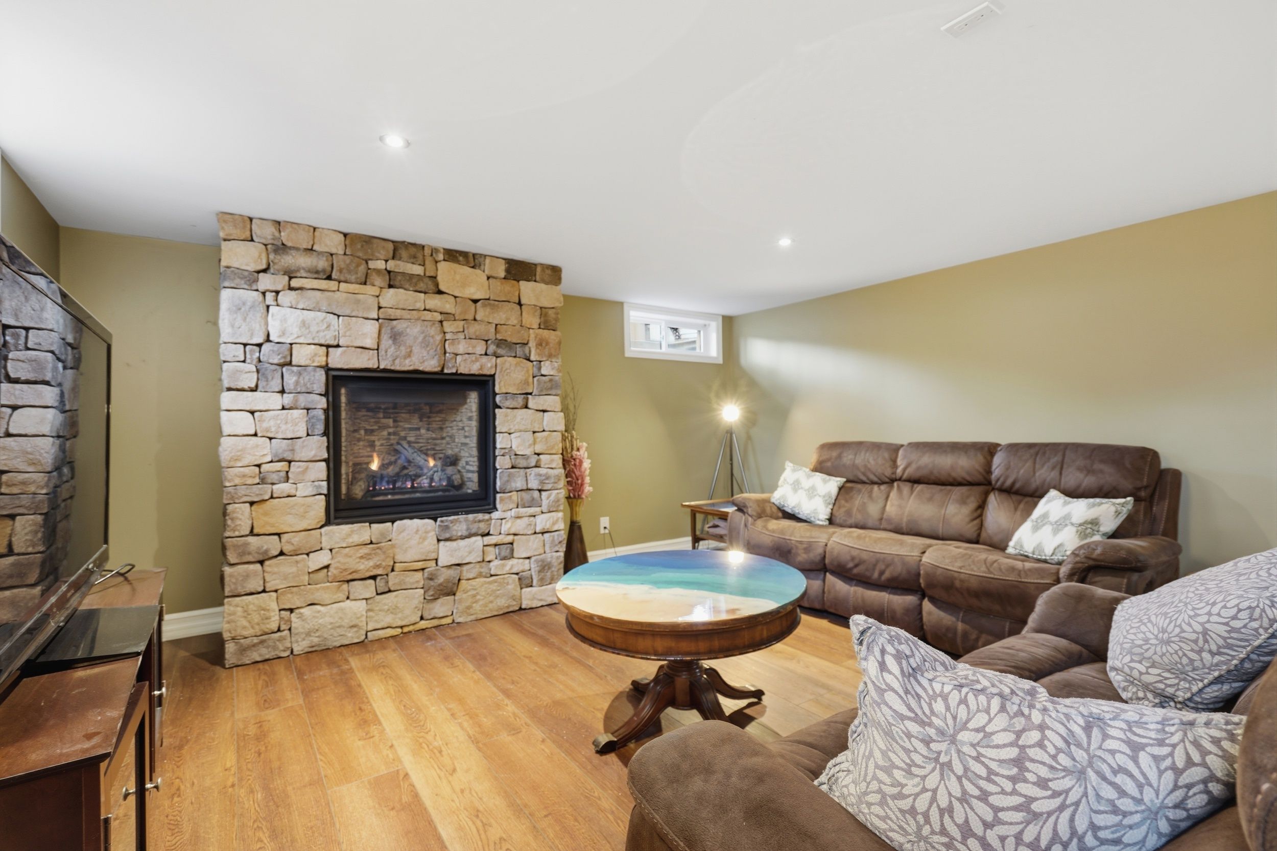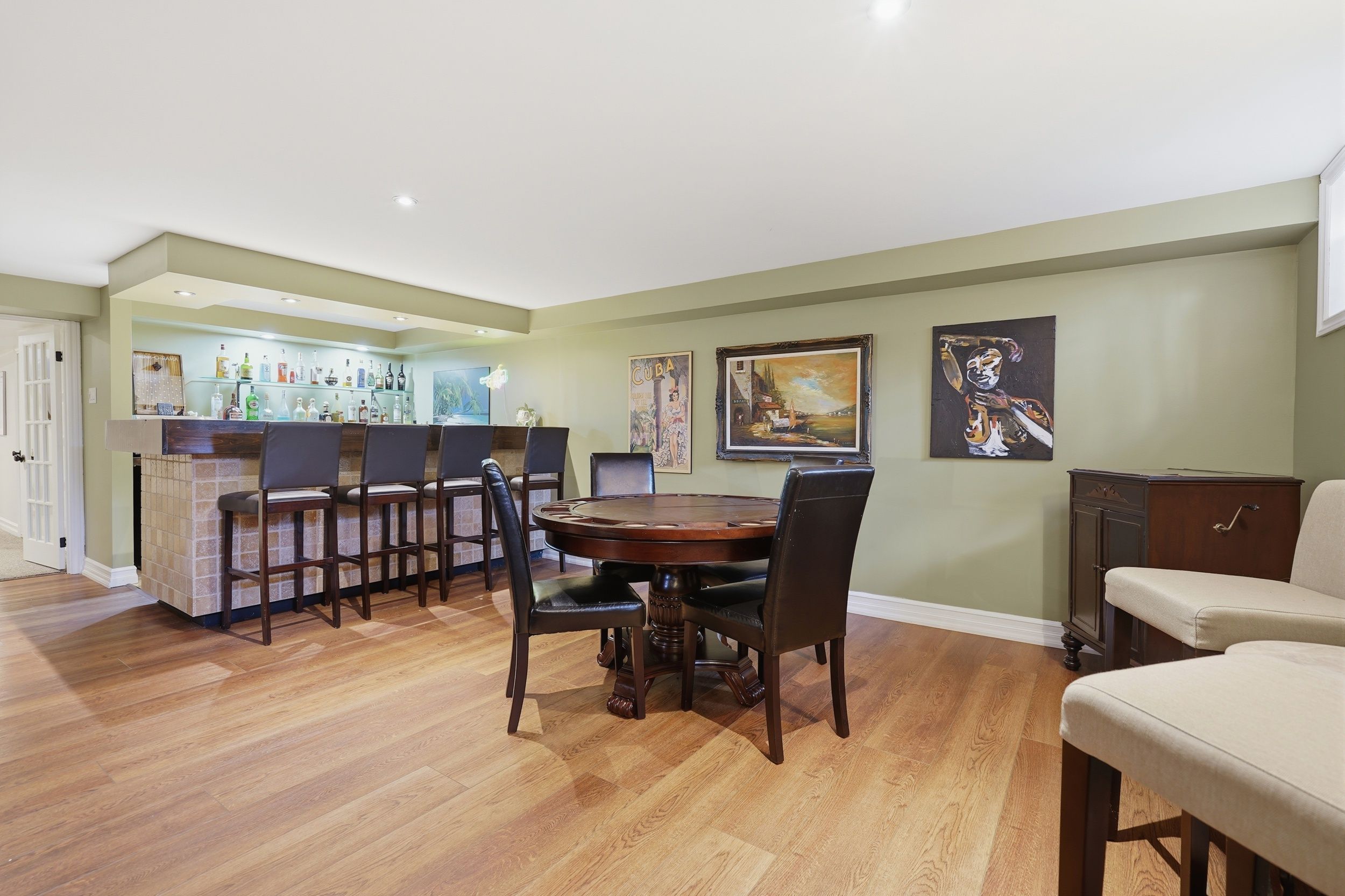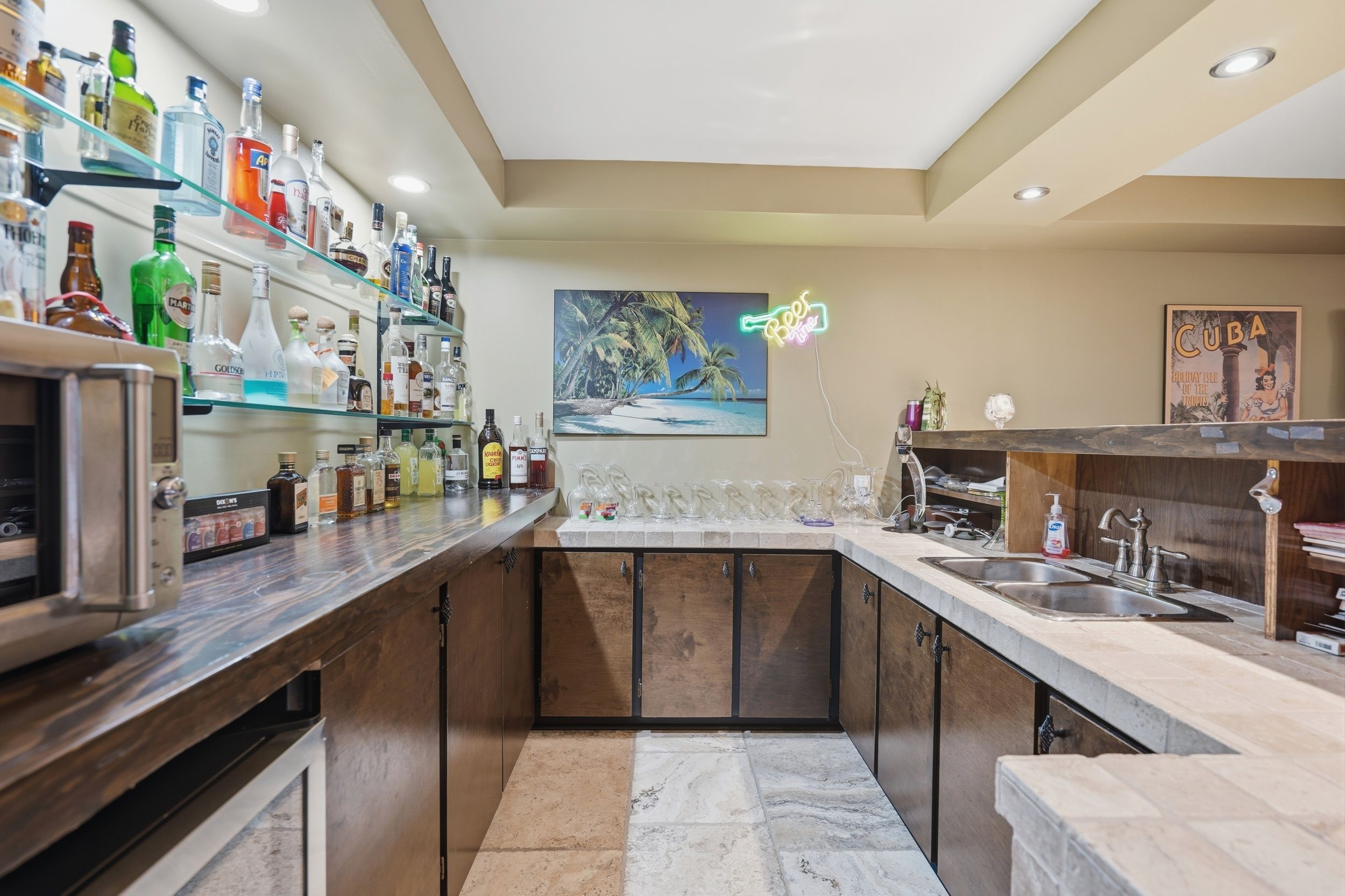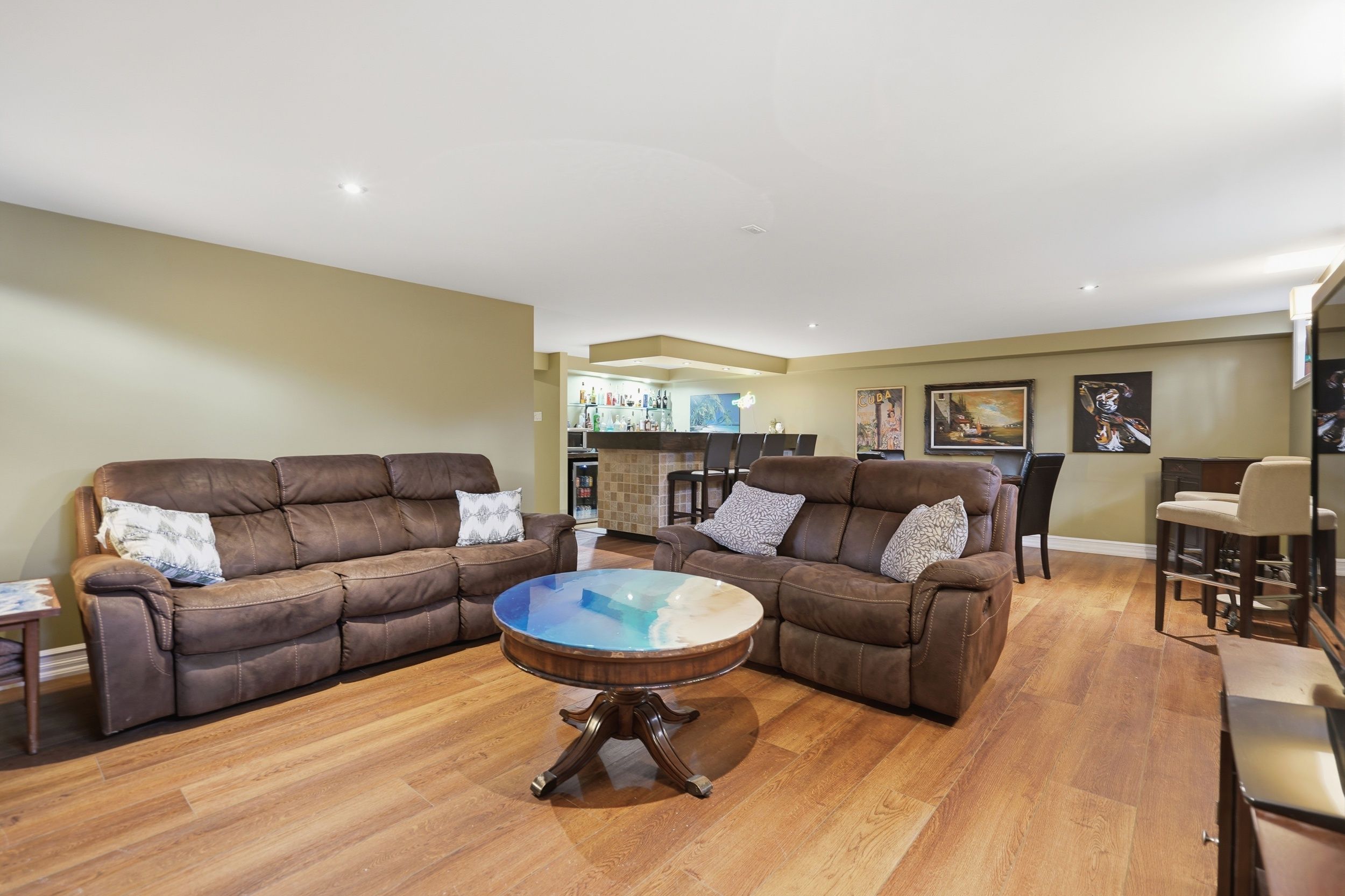 • Lower level features two large entertainment areas with wet bar.