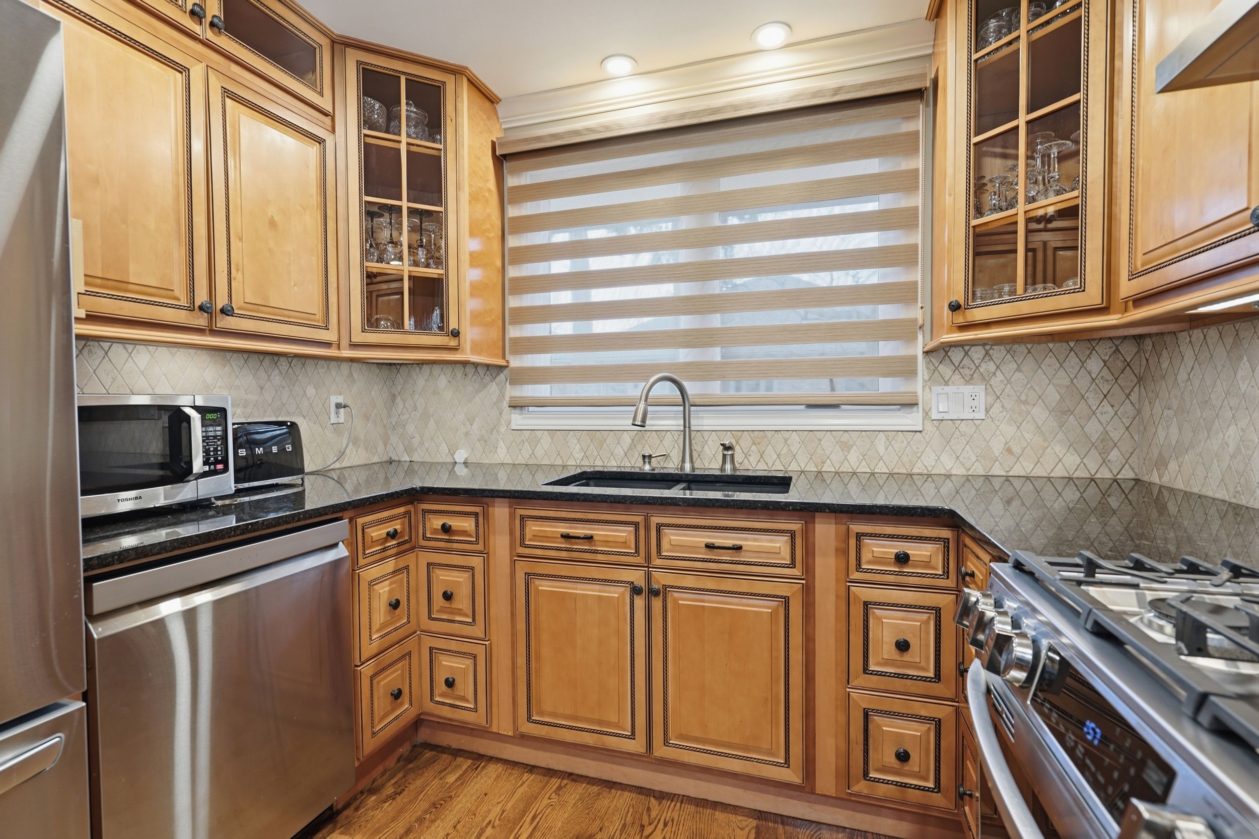 • Chef’s kitchen with upgraded appliances and a breakfast nook.
