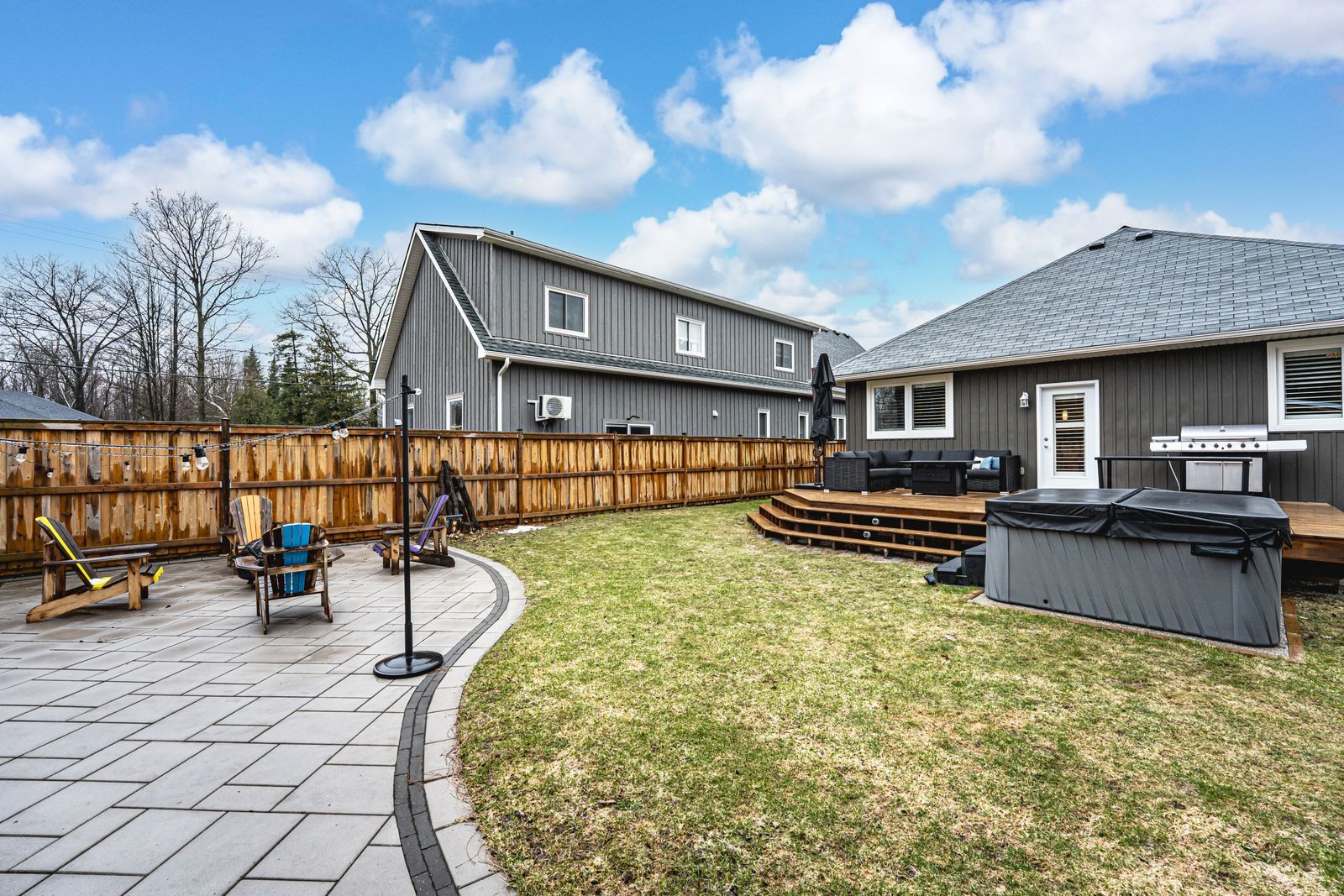 • Fenced backyard features a hot tub, deck, and patio for outdoor fun.