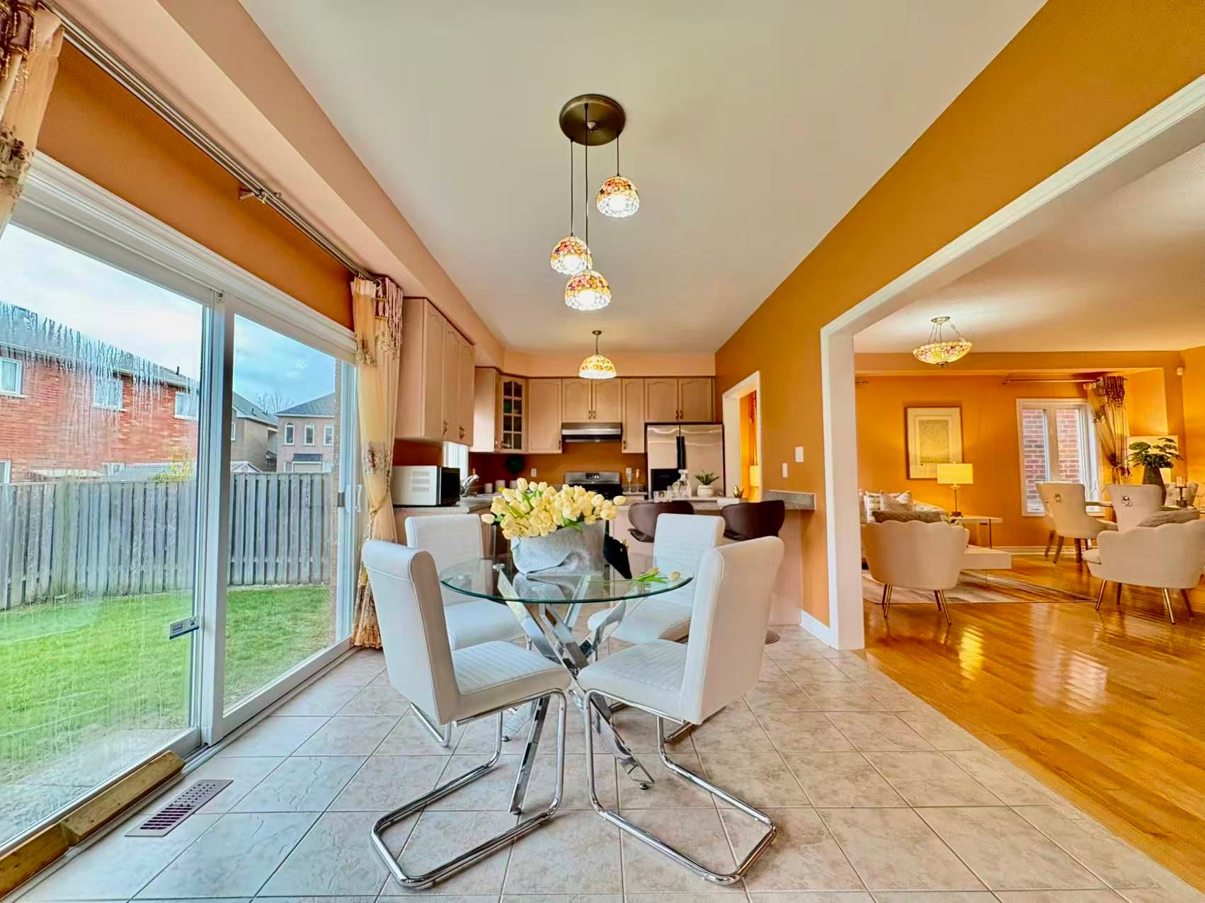 • Kitchen overlooks the backyard, perfect for cooking and entertaining.