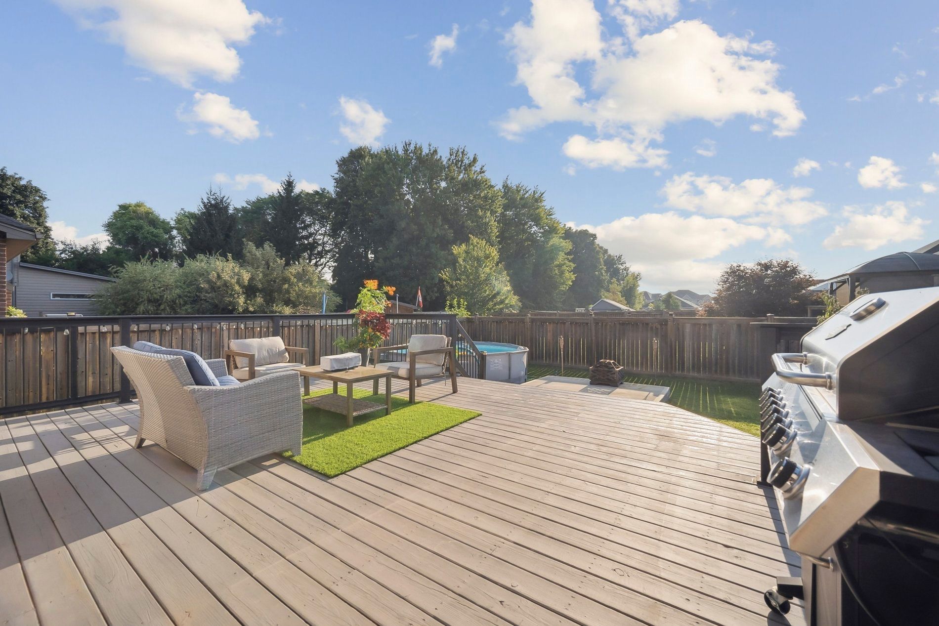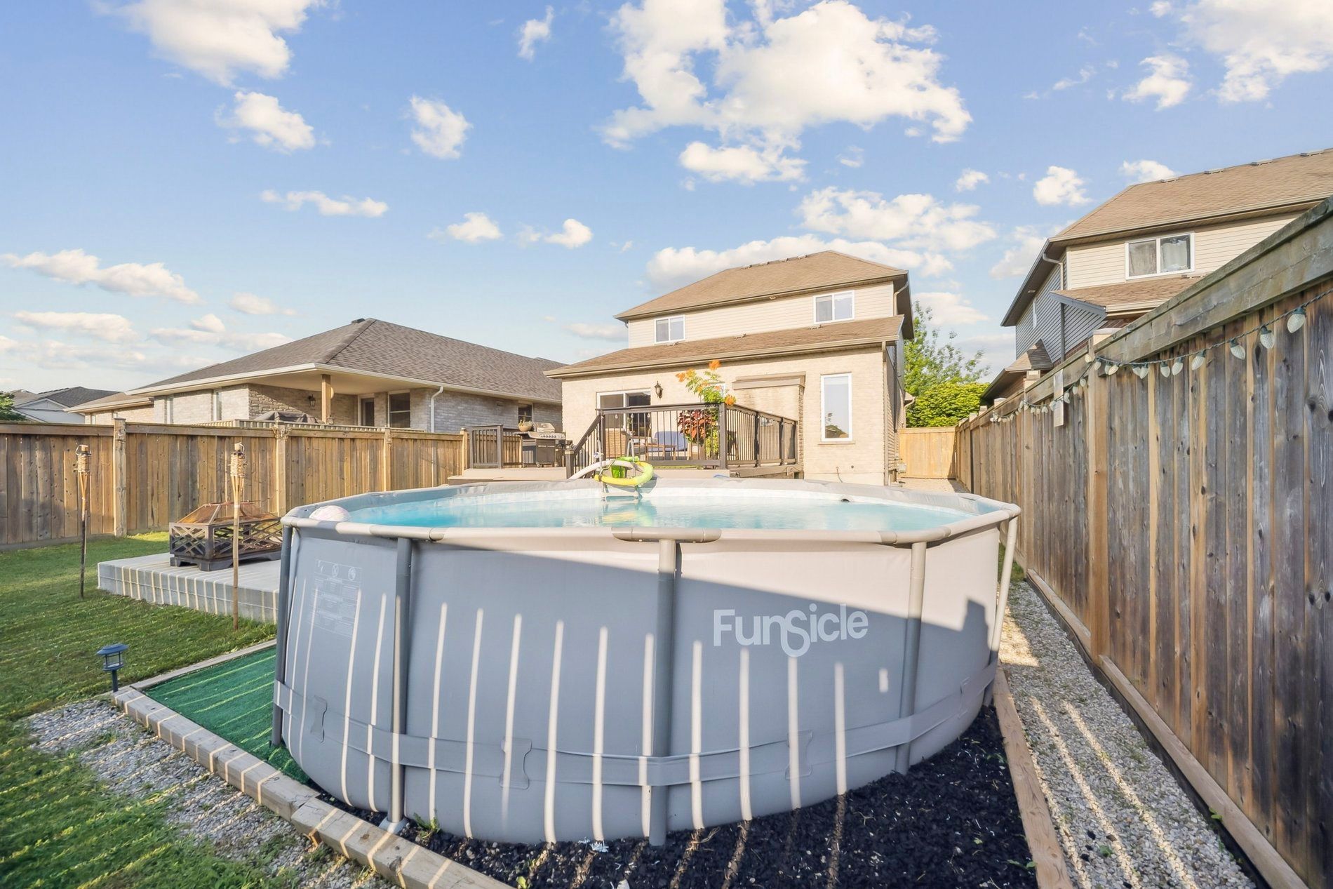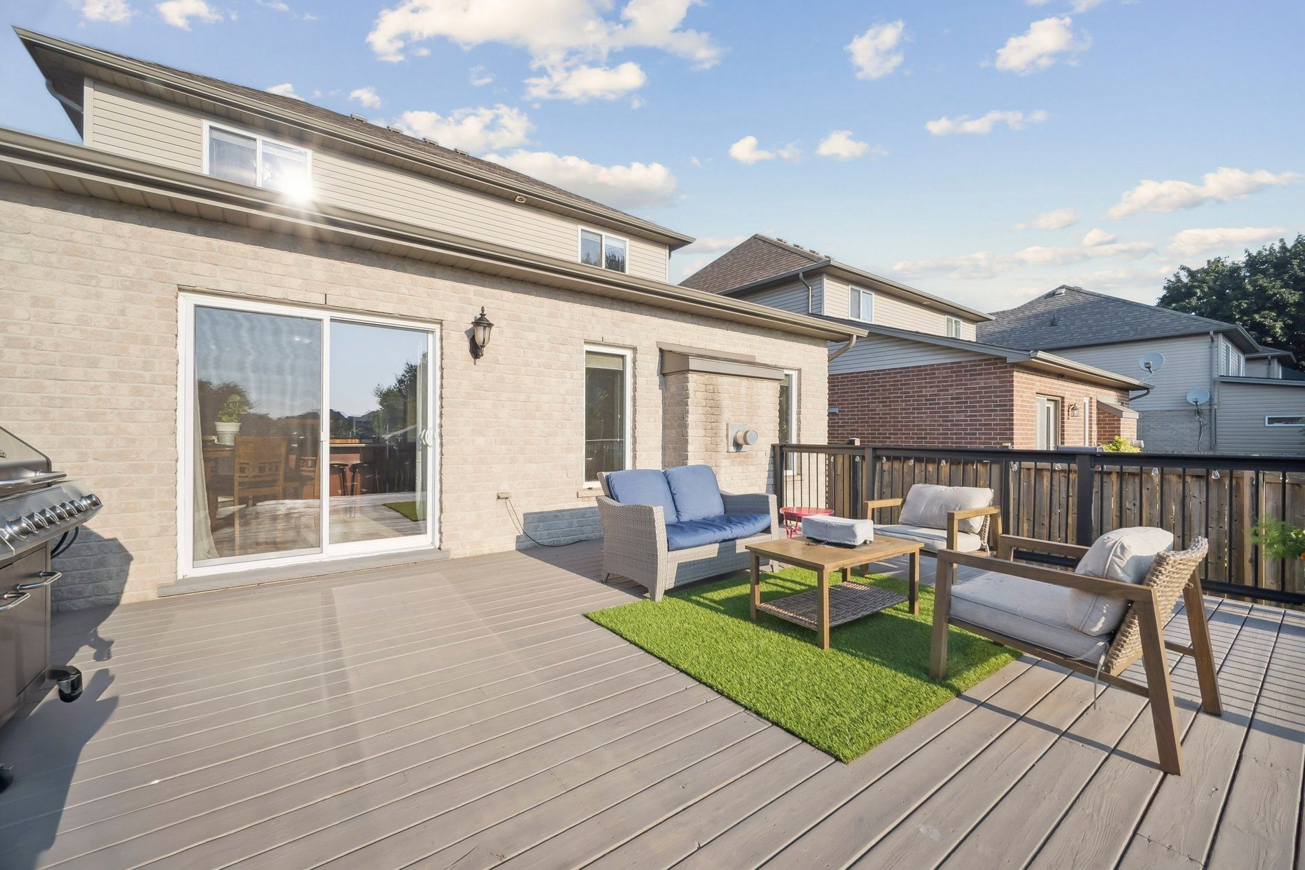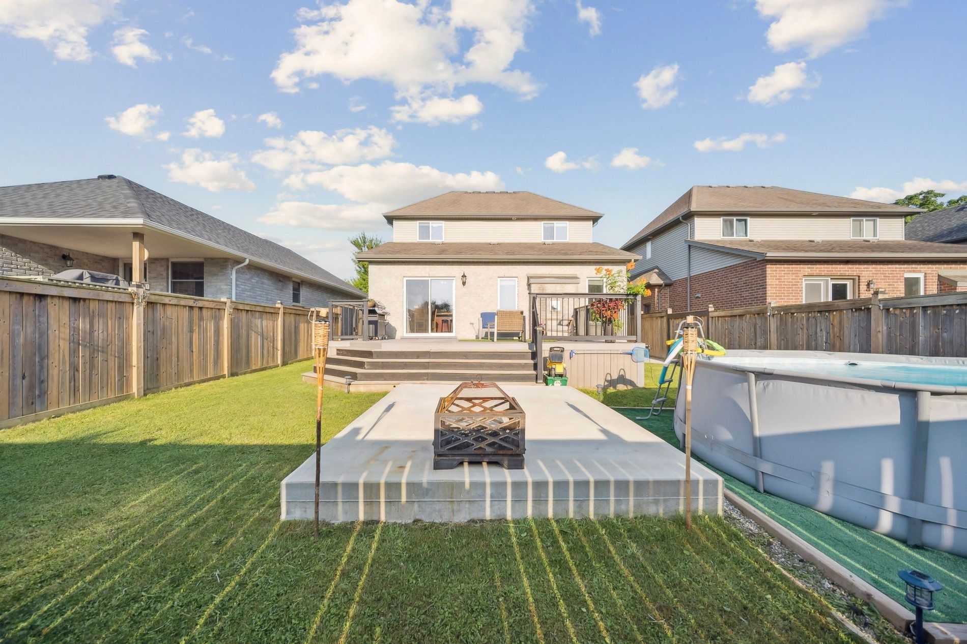 Welcome to 9 peach tree boulevard, the ideal home for a growing family. This stunning 2-storey detached offers 3 bedrooms and 3 bathrooms, perfectly situated within walking distance of mitchell hepburn public school in st. Thomas. From the moment you step inside, you'll be greeted by a spacious foyer that sets the tone for the rest of the home. The inviting living room boasts a gas fireplace and soaring vaulted ceilings, creating a bright and open atmosphere. The open-concept kitchen is designed for both cooking and entertaining, featuring a breakfast bar and sliding doors from the dining area that lead to a beautiful 23. 7 x 21 ft pressure-treated wooden deck, perfect for outdoor gatherings. Upstairs, you'll find a convenient laundry closet, a generous primary bedroom with a private ensuite, and an expansive walk-in closet. Two additional bedrooms complete the second floor, offering plenty of space for family or guests. The double-car garage is equipped with a man-door and an automatic garage door opener for added convenience, while the impressive double stamped concrete driveway enhances the homes curb appeal