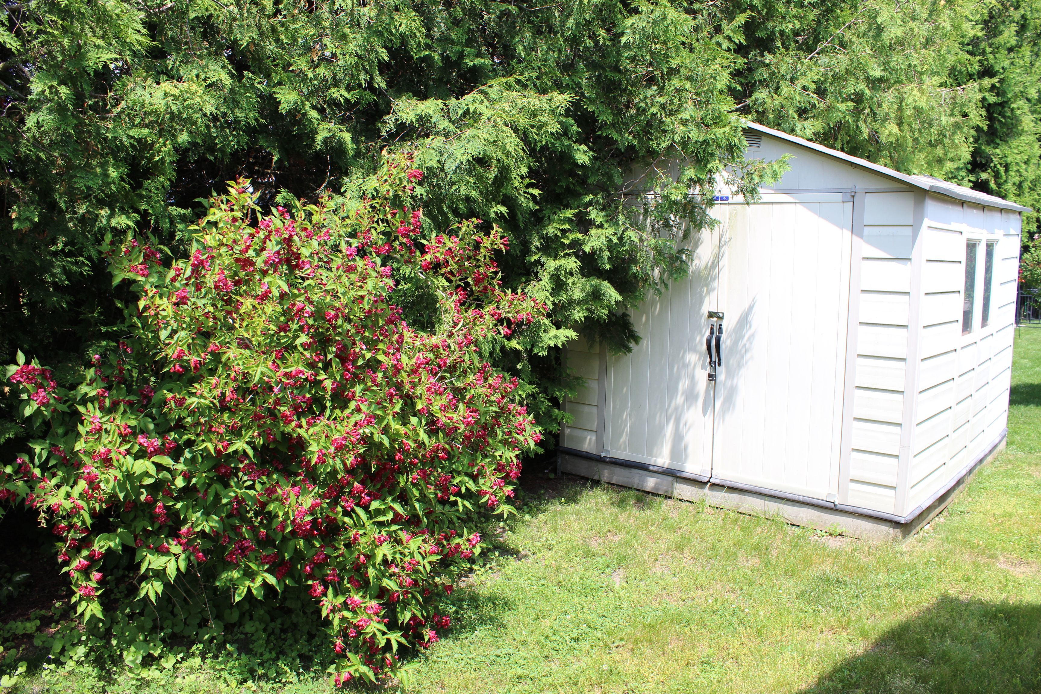 • Private backyard setting backing onto trees, perfect for relaxation and entertaining.