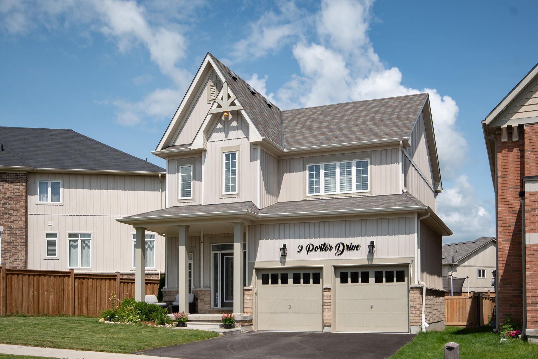 Stunning family home on premium 56 feet front lot in sought-after west orangevillewelcome to 9 porter drive, nestled in one of orangeville's most desirableneighbourhoods. This beautifully maintained, 2017-built detached home sits on apremium lot and offers the perfect blend of modern upgrades, comfort, and futurepotential-ideal for growing families. Step inside to a bright and inviting entryway filled with natural light. The mainlevel features 9-foot ceilings, elegant hardwood flooring, and a thoughtfullydesigned open-concept layout. The spacious living and dining area is perfect forentertaining, complete with a cozy upgraded gas fireplace and stylish finishesthroughout. The kitchen truly is the heart of the home, showcasing granite countertops, upgradedwhite cabinetry, a premium backsplash, stainless steel appliances, and a customisland. Enjoy seamless indoor-outdoor living with a walkout to the backyard-offeringplenty of space for summer bbqs and even the potential for a pool. Additional main floor highlights include california shutters, pot lights, premiumlight fixtures, garage access, and a convenient laundry area. Upstairs, you'll find three generously sized bedrooms, including a luxurious primarysuite with a spa-like ensuite featuring a custom glass shower and soaker tub. Themain bathroom offers a double vanity-perfect for busy families. The unfinished basement includes a bathroom rough-in and offers incredible potentialfor customization, with the possibility of a future side entrance. Highlighted features :premium 56 feet front lot in a family-friendly neighbourhoodhardwood flooring & california shutters . Custom hardwood staircase with iron picketspot lights on main & 2nd floorcentral air conditioning & furnace ( owned )water softener & filtration system ( owned )upgraded front door with custom address letteringgarage door openerpotential for side entrance to basement.