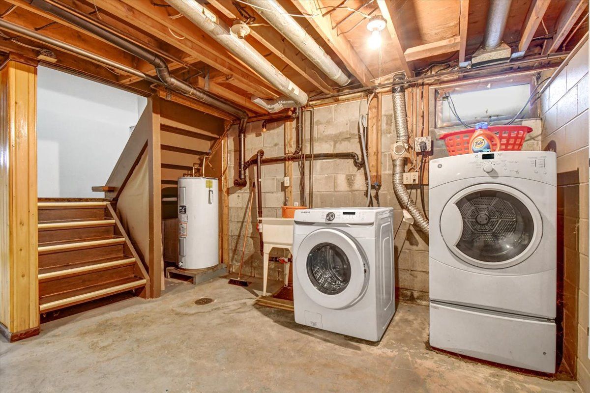 • Detached two-car garage and unfinished basement for future development options.