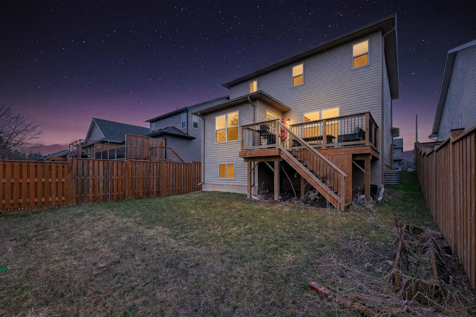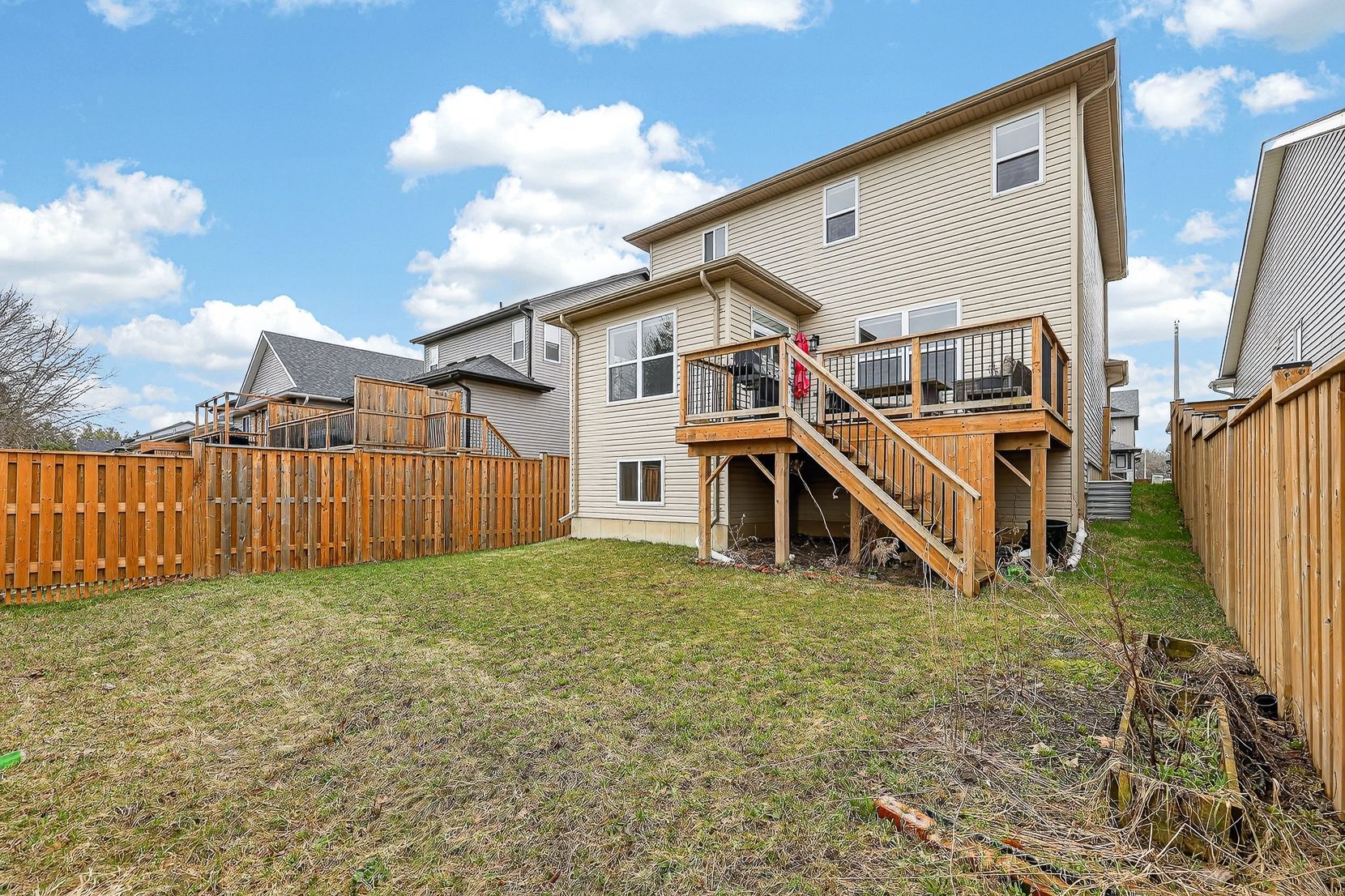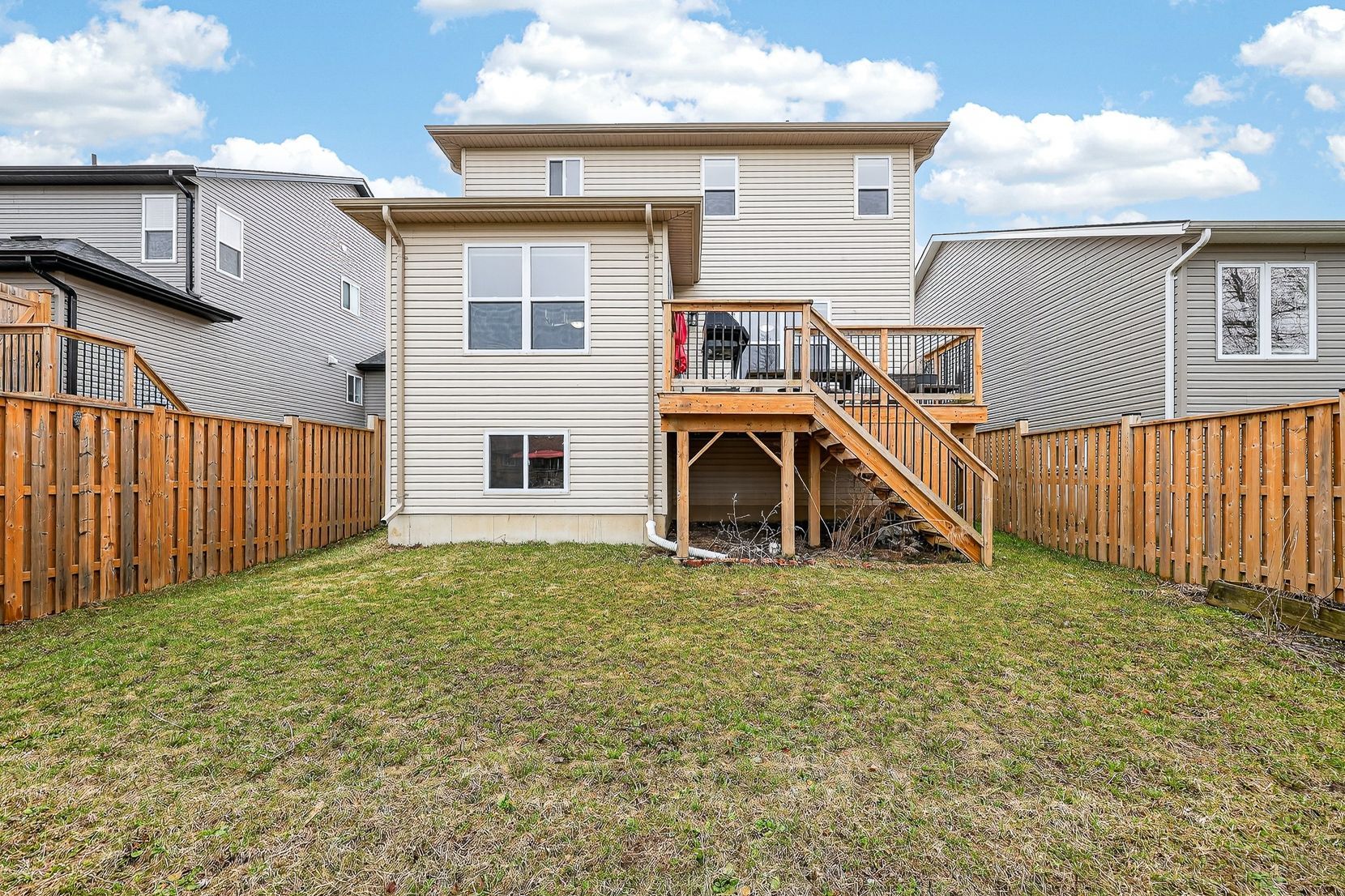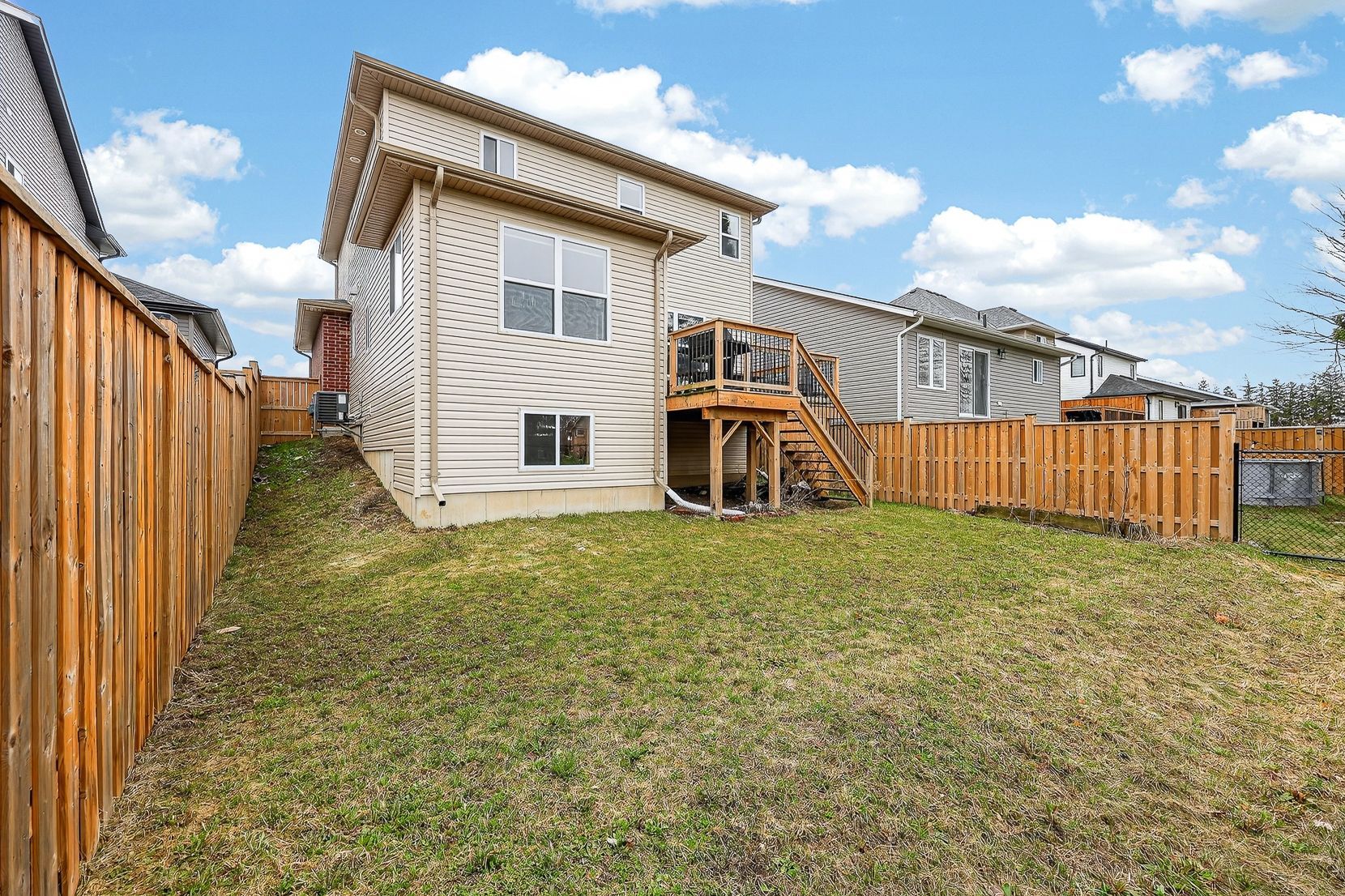 Welcome to 9 reeves rd-an exceptional, 5-year-new two-storey home offering refined living in a highly sought-after location with effortless access to major highways, schools, shopping, and parks. A charming covered front porch sets the tone-perfect for enjoying quiet morning coffee in a welcoming neighbourhood setting. Step inside to a thoughtfully designed main level, where style meets function. A convenient coat closet and elegant powder room lead into a stunning open-concept living space, flooded with natural light through expansive windows adorned with custom blinds. The spacious living room seamlessly connects to a beautifully appointed chef's kitchen, featuring abundant cabinetry, sleek quartz countertops, a statement island with breakfast bar, and premium stainless steel appliances, including a gas range. The sophisticated dining area overlooks the backyard and offers a seamless walkout through sliding glass doors to a private deck-ideal for elevated indoor-outdoor entertaining. Upstairs, the home continues to impress with a bright and airy layout. The luxurious primary retreat features a ensuite with double vanity and an expansive walk-in closet. Two additional generously sized bedrooms, each with double closets, provide comfort and versatility. A well-appointed main bath and a spacious upper-level laundry room add everyday convenience. The unspoiled basement offers endless potential, complete with large windows and a bathroom rough-in-ready to be customized to suit your lifestyle. Outdoors, enjoy a fully fenced backyard with ample space for children, pets, and hosting in a private setting. This is a rare opportunity to own a stylish, move-in-ready home that perfectly blends modern elegance with everyday comfort.