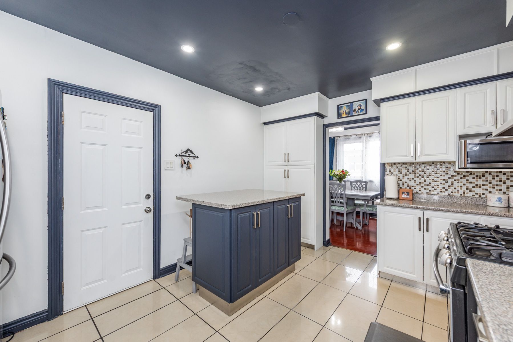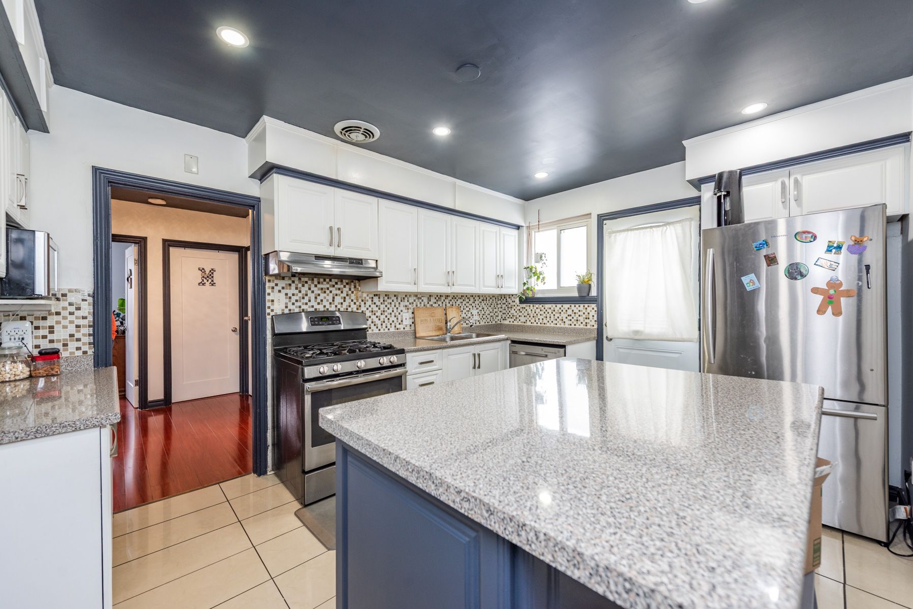 • Upgraded modern kitchen with stainless steel appliances and a center island.