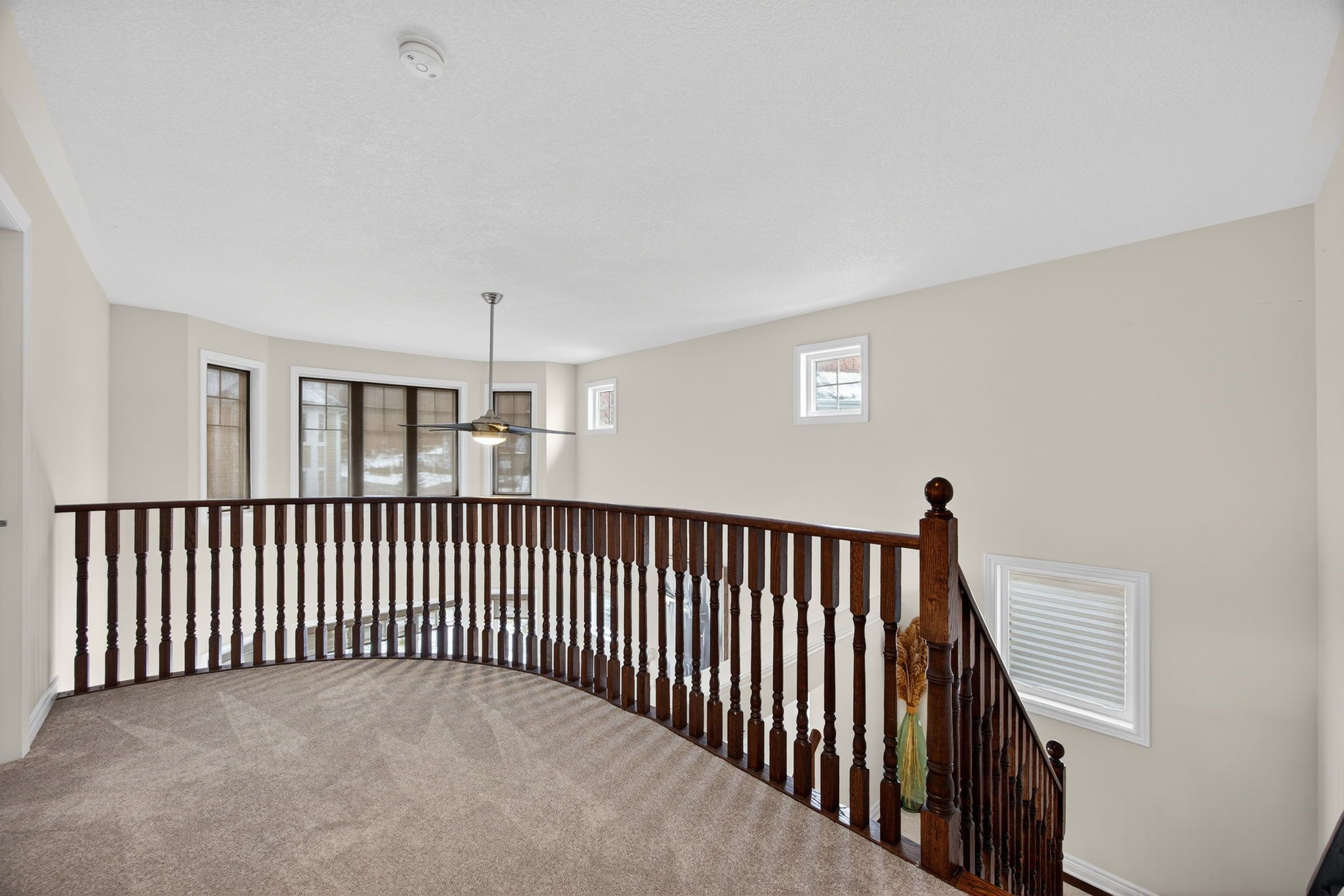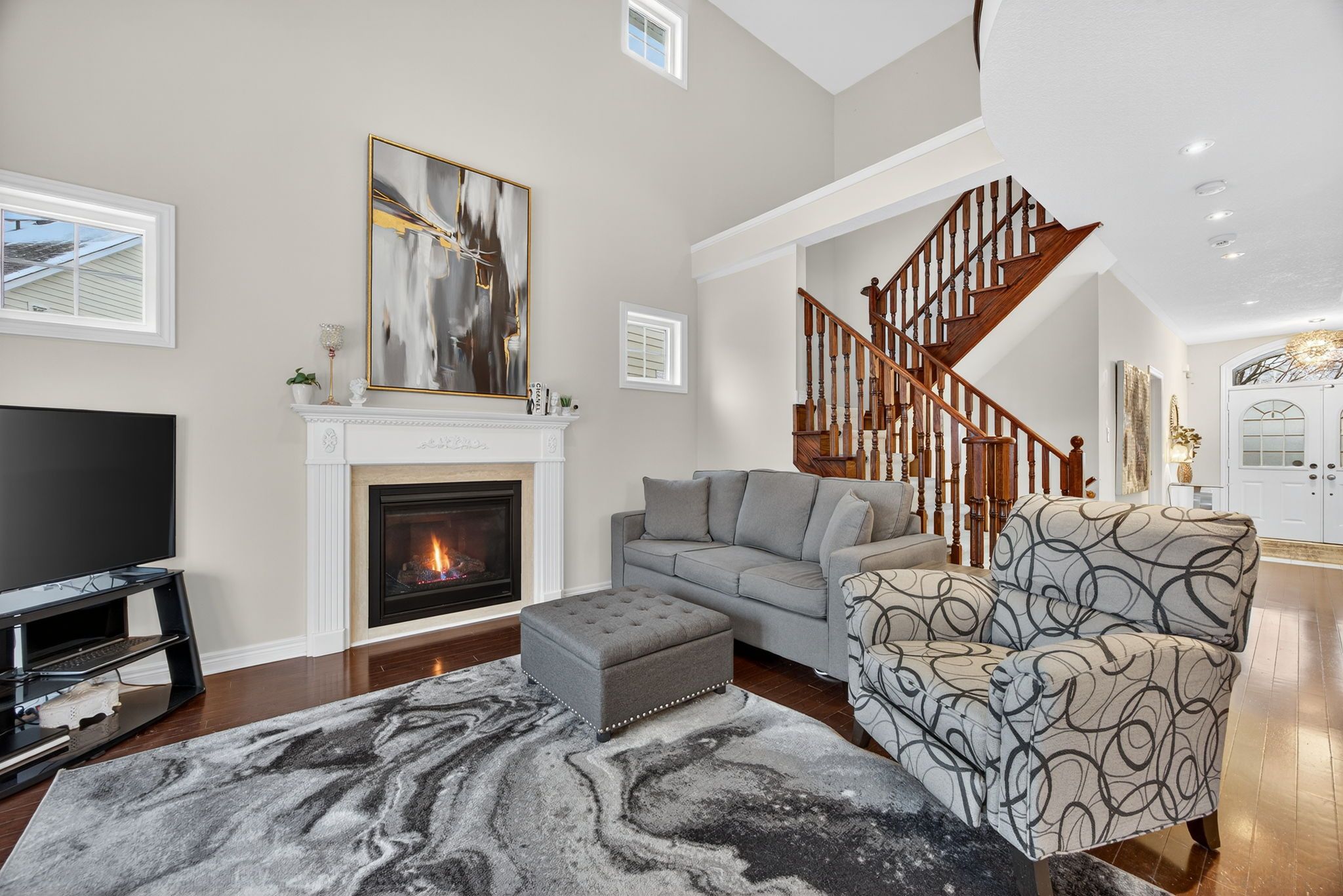 Discover the charm of this sought-after enclave of cape cod-style homes nestled along the scenic shores of georgian bay in midland. This stunning residence features an open-concept living space with a soaring 20' vaulted ceiling in the great room. The main floor showcases walnut flooring in main living area, and an elegant primary suite complete with private bathroom. The bright main living area is perfect for entertaining and opens to the kitchen, which boasts timeless white cabinetry, stainless steel appliances, and stone countertops. Upstairs, the loft level offers two spacious bedrooms and a 4-piece bath-ideal for family or guests. Step outside to beautifully landscaped grounds with updated fencing and vibrant gardens that enhance the home's curb appeal. The unspoiled basement provides endless potential for a recreation room, home gym, or additional living space. Located just steps from the rotary trans canada waterfront trail system, offering over 17 km of paved walking and biking trails. Experience relaxed luxury at its finest-welcome home to tiffin by the bay!