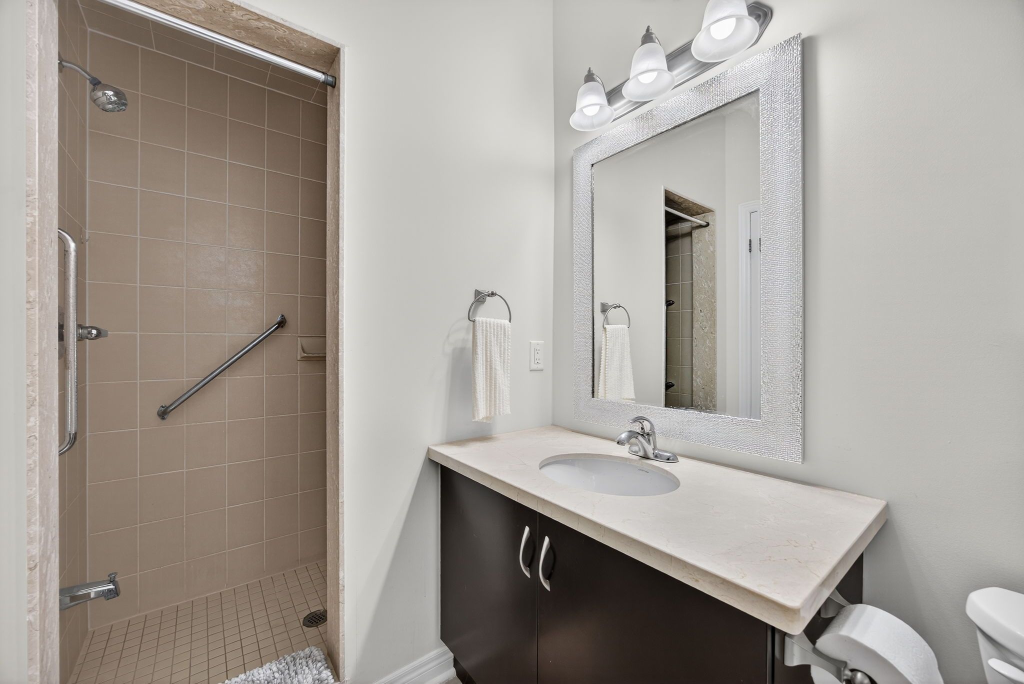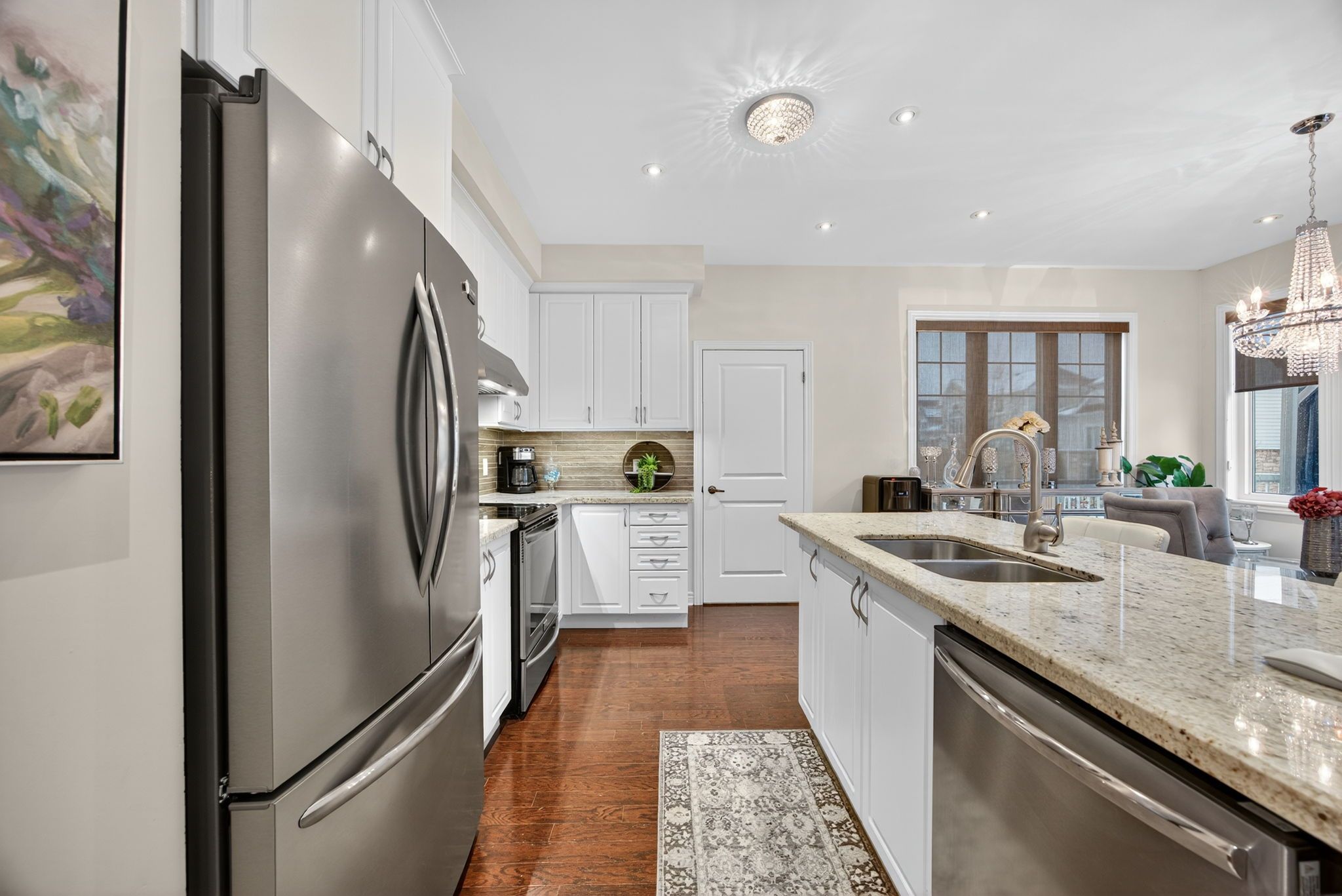 • Bright kitchen with stainless steel appliances and stone countertops for easy entertaining.