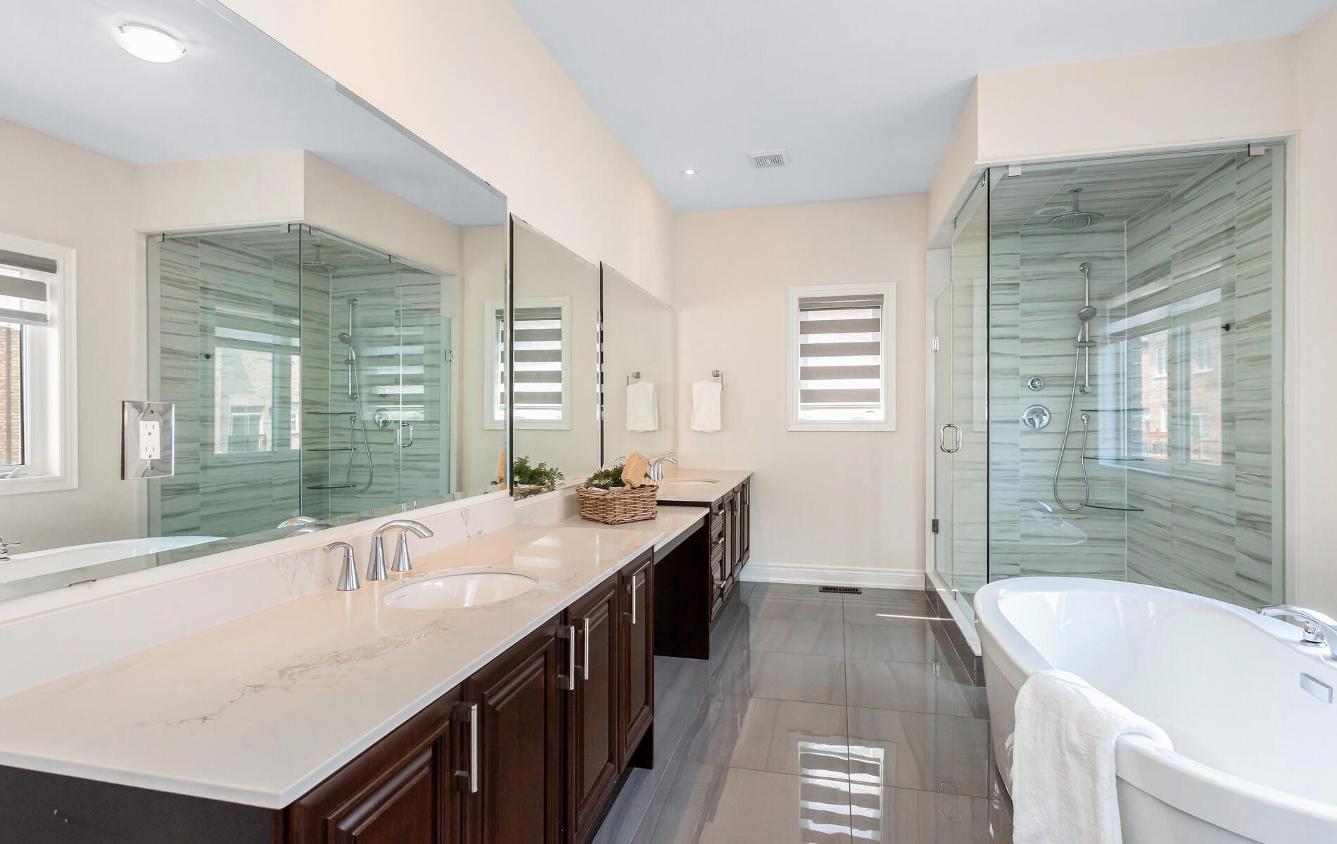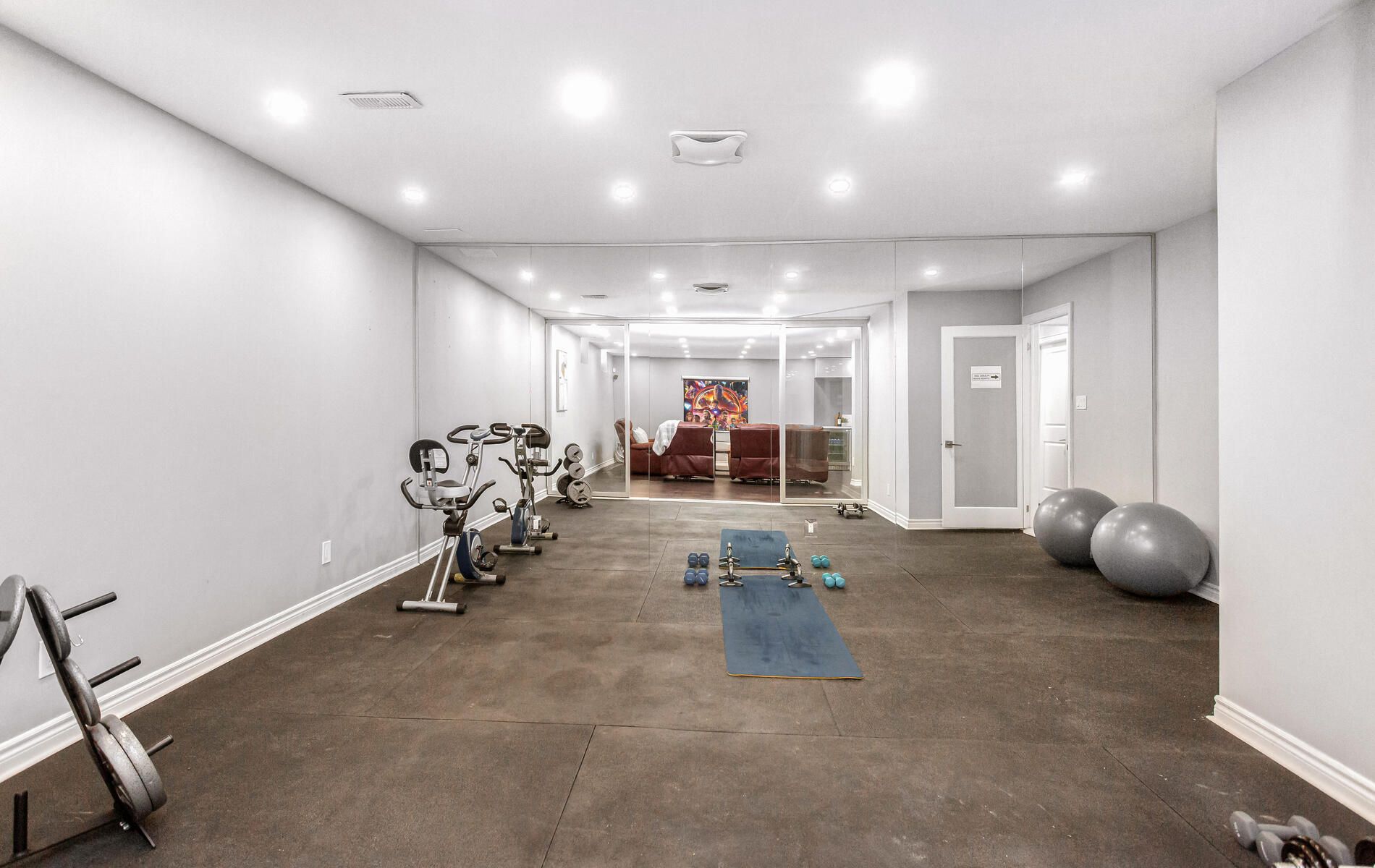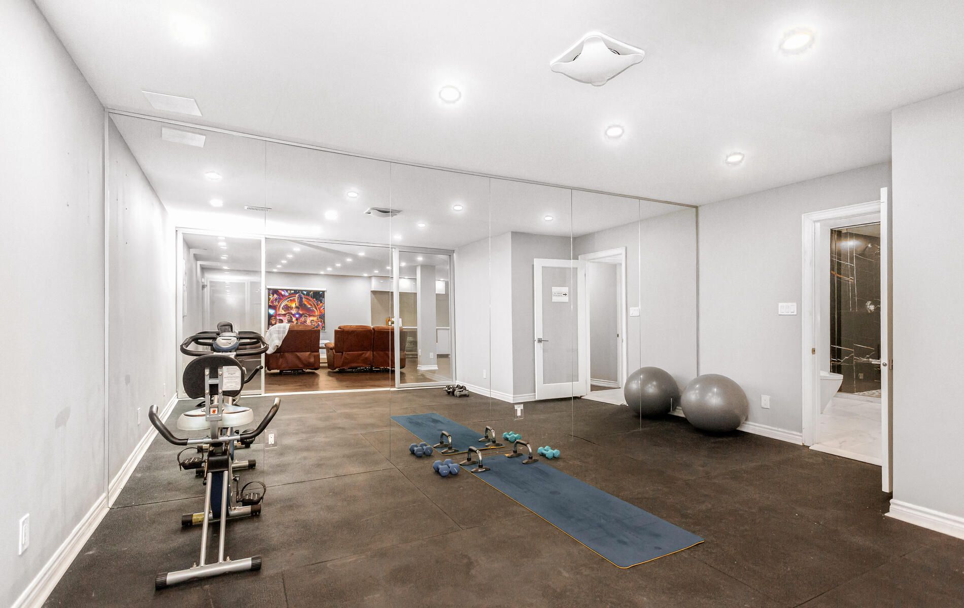 • Finished basement features heated floors and a steam room.