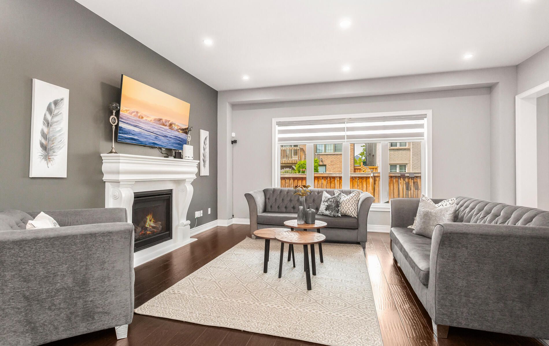 Welcome to 9 rolling acres dr... A landmark residence that redefines luxury living with over 6,000 sq ft of impeccably curated space designed for those who expect nothing but the extraordinary. This carpet-free masterpiece showcases 10' ceilings on the main level, 9' ceilings above, smooth finishes throughout, and expansive windows that flood the home with natural light. The grand primary retreat is a private sanctuary featuring dramatic coffered ceilings, two oversized walk-in closets, and a spa-inspired 5pc ensuite crafted for true relaxation. Thoughtfully upgraded throughout, the home offers zebra blinds, exterior pot lights, a full central vacuum system, and a comprehensive wired and wireless security system for seamless comfort and peace of mind. Exceptional curb appeal is highlighted by an extended interlocked driveway, artificial turf, lush hydrangeas, and a sleek glass enclosed porch, while anchored by a stunning 18' x 12' sunroom ideal for year-round entertaining. A versatile main-floor in-law suite with full washroom enhances multi-generational flexibility. Inside, wide plank dark oak hardwood, designer chandeliers and a cozy fireplace complement the chef-inspired kitchen featuring sub-zero and wolf appliances, garburator, trash compactor, upgraded backsplash, ro system, and power-operated zebra blinds. Upstairs offers five spacious bedrooms, including three private ensuites and a jack & jill layout, plus a serene front-facing balcony. The finished basement elevates the experience with heated floors, a steam room with rain shower and body jets, smart toilet, $12k kinetico softener, kitchenaid appliances, dual silhouette beverage coolers, wine room, mirrored den/gym, 200-amp panel with pony panel, and ev charger plug point. A rare offering where scale, sophistication, and modern luxury converge.